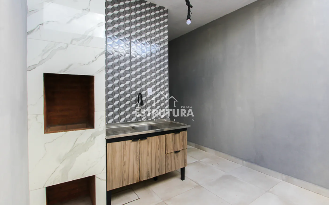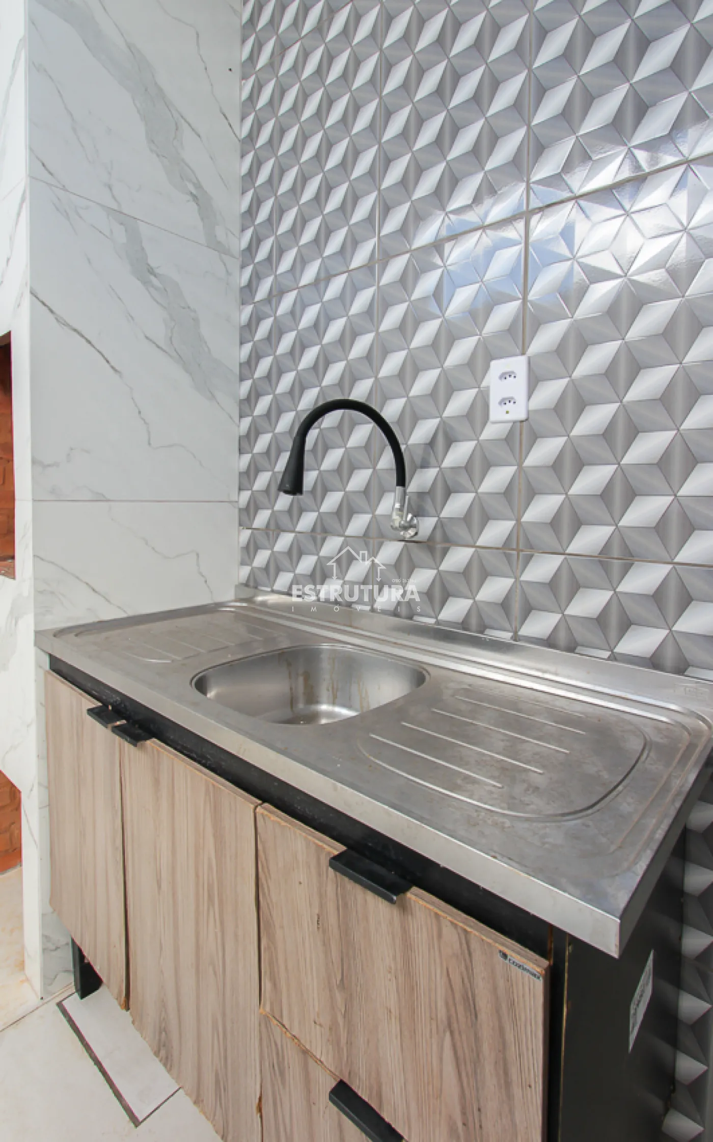 Vende-se imóvel novo, portão eletrônico, contendo garagem para 02 veículos, sala, cozinha, banheiro, 02 dormitórios sendo 01 suíte, área de luz, e aos fundos, churrasqueira e lavanderia