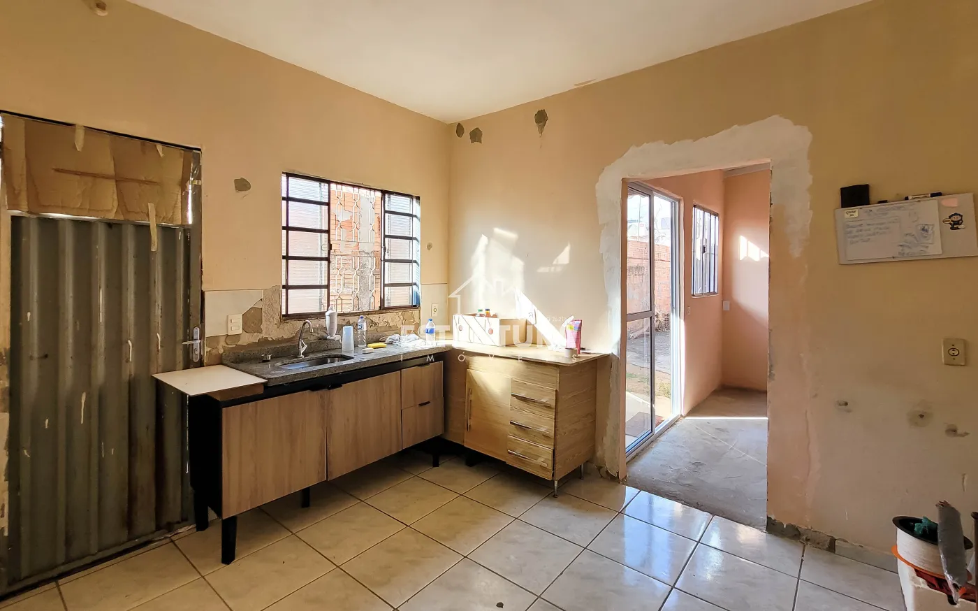 Casa com Garagem para 2 carros coberto e descoberto, com P.E. pequena Sala, 1 quarto, cozinha, banheiro e lavanderia.