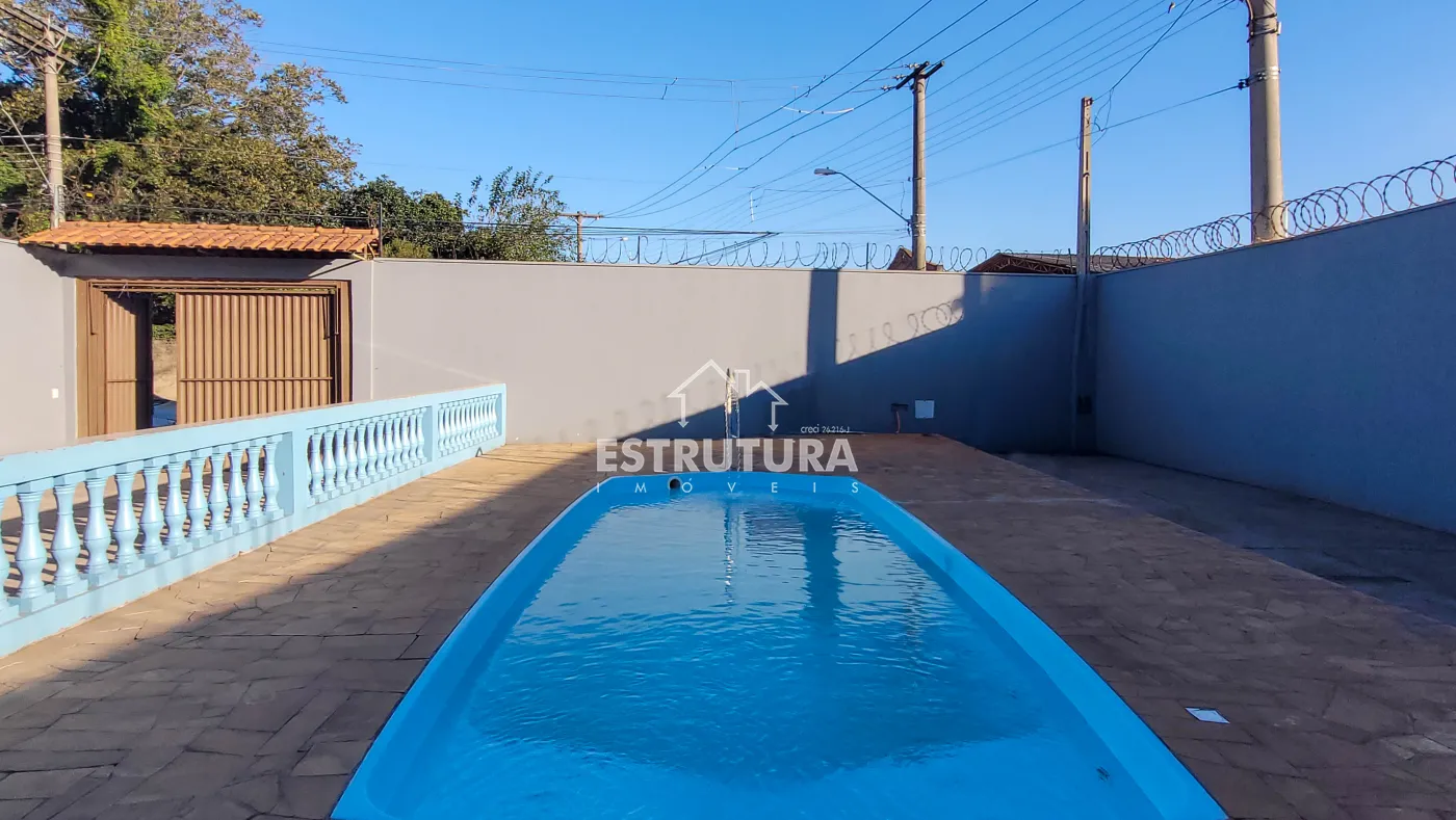 Imóvel que pode ser moradia ou chácara para festas. Garagem coberta para 1 carro e 3 descoberta, 2 dormitórios, sala, cozinha, banheiro social, amplo salão com área gourmet 2 banheiros externos, quarto para ferramentas, e piscina de 21 mil litros