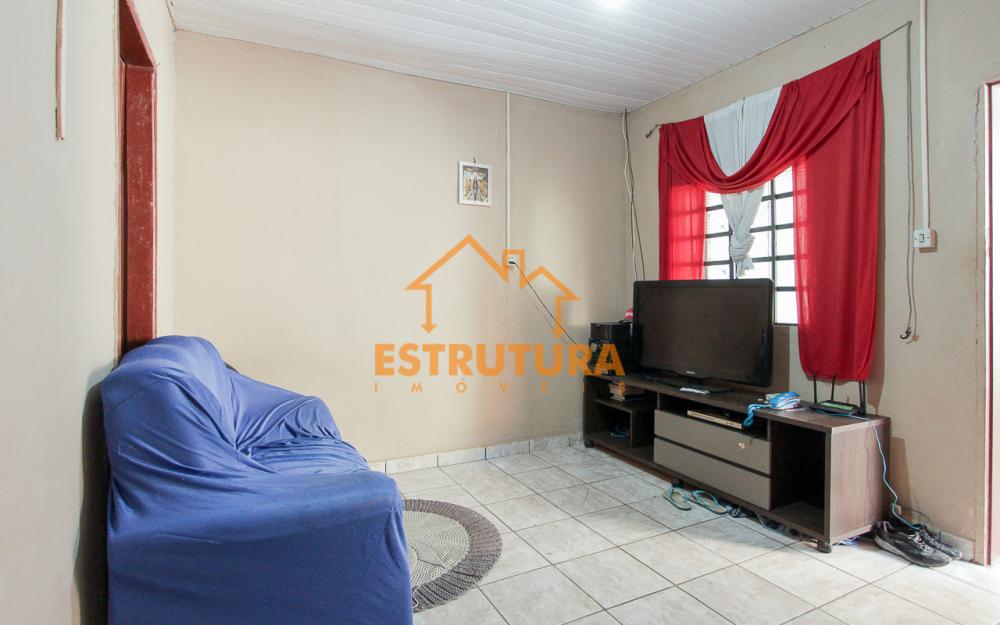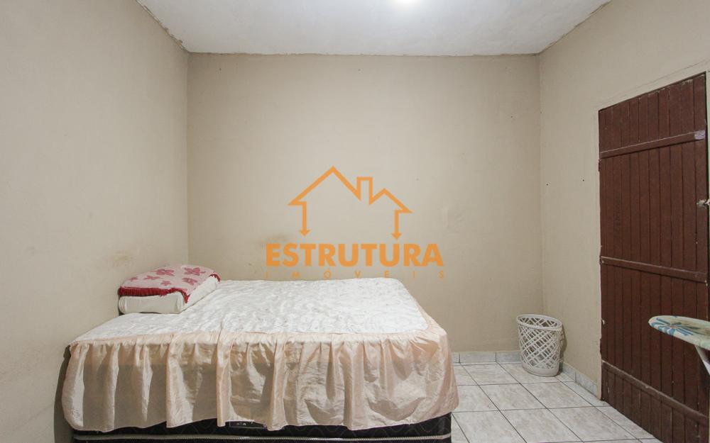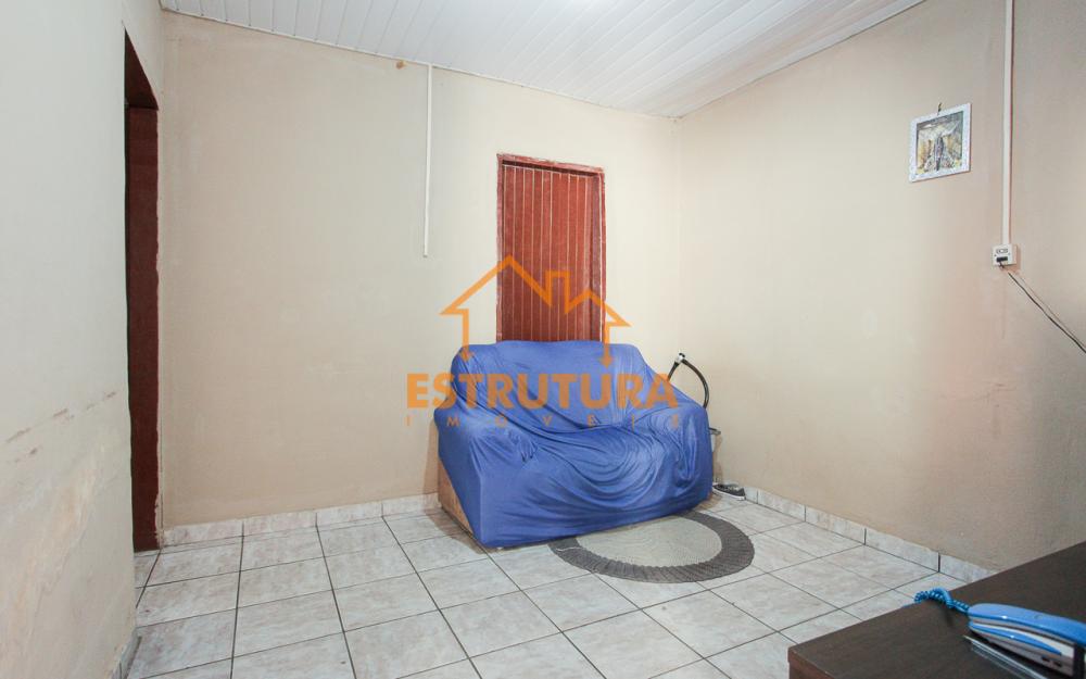 Casa contendo garagem coberta para 1 carro, 2 dormitórios e banheiro social.