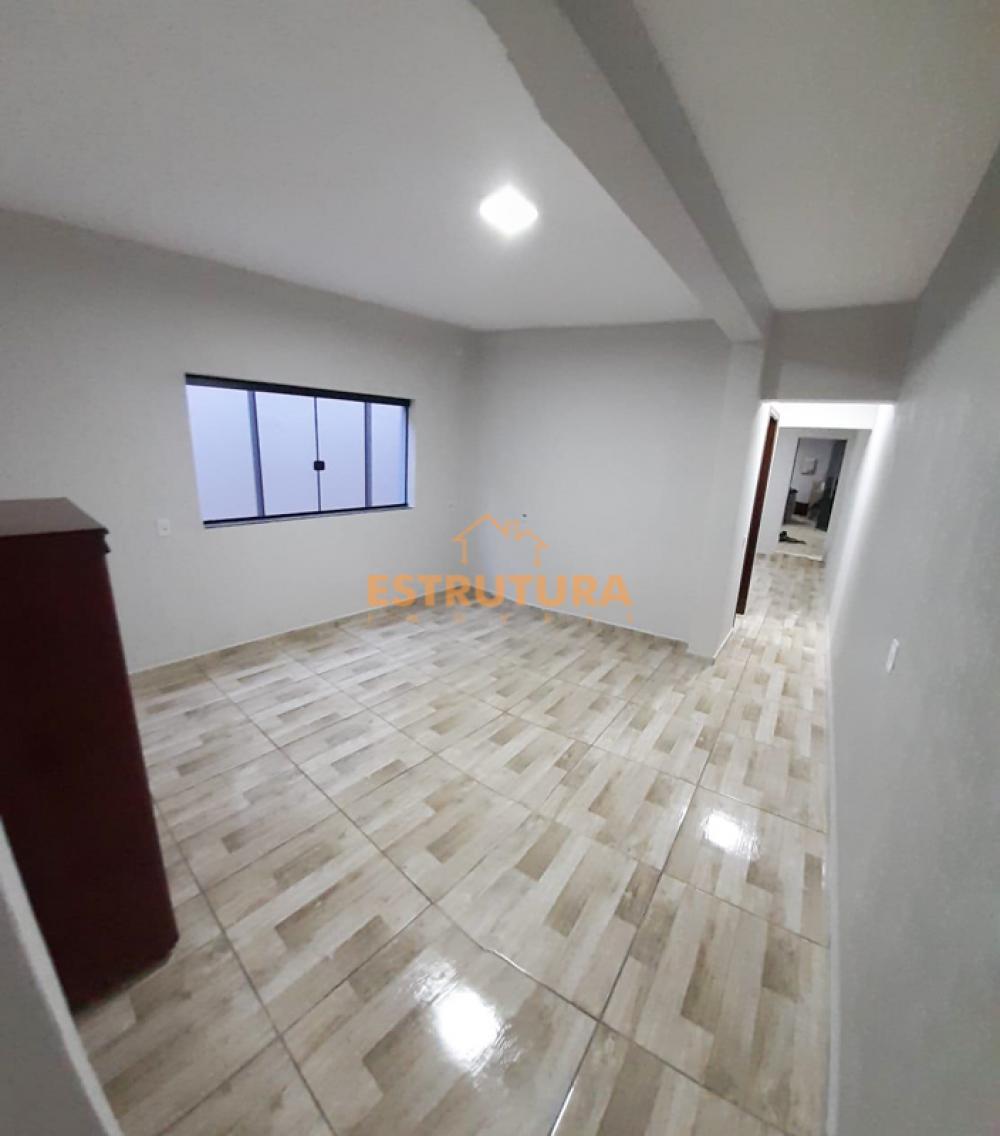Casa 2 - entrada individual com corredor, sala, 1 dormitório, banheiro, cozinha com gabinetes e gesso no teto, área de serviço ampla.