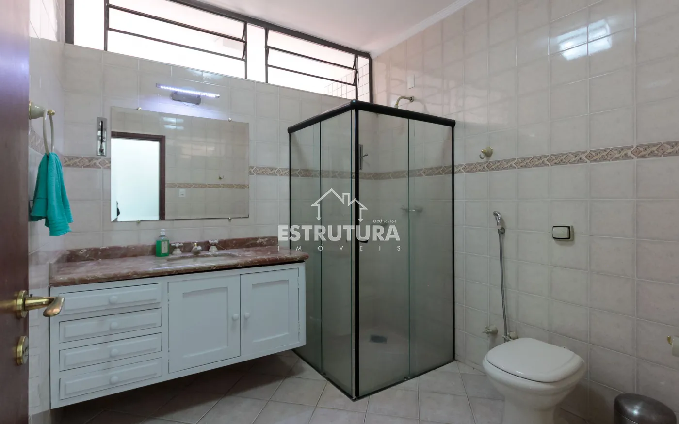 Banheiro social bem equipado;