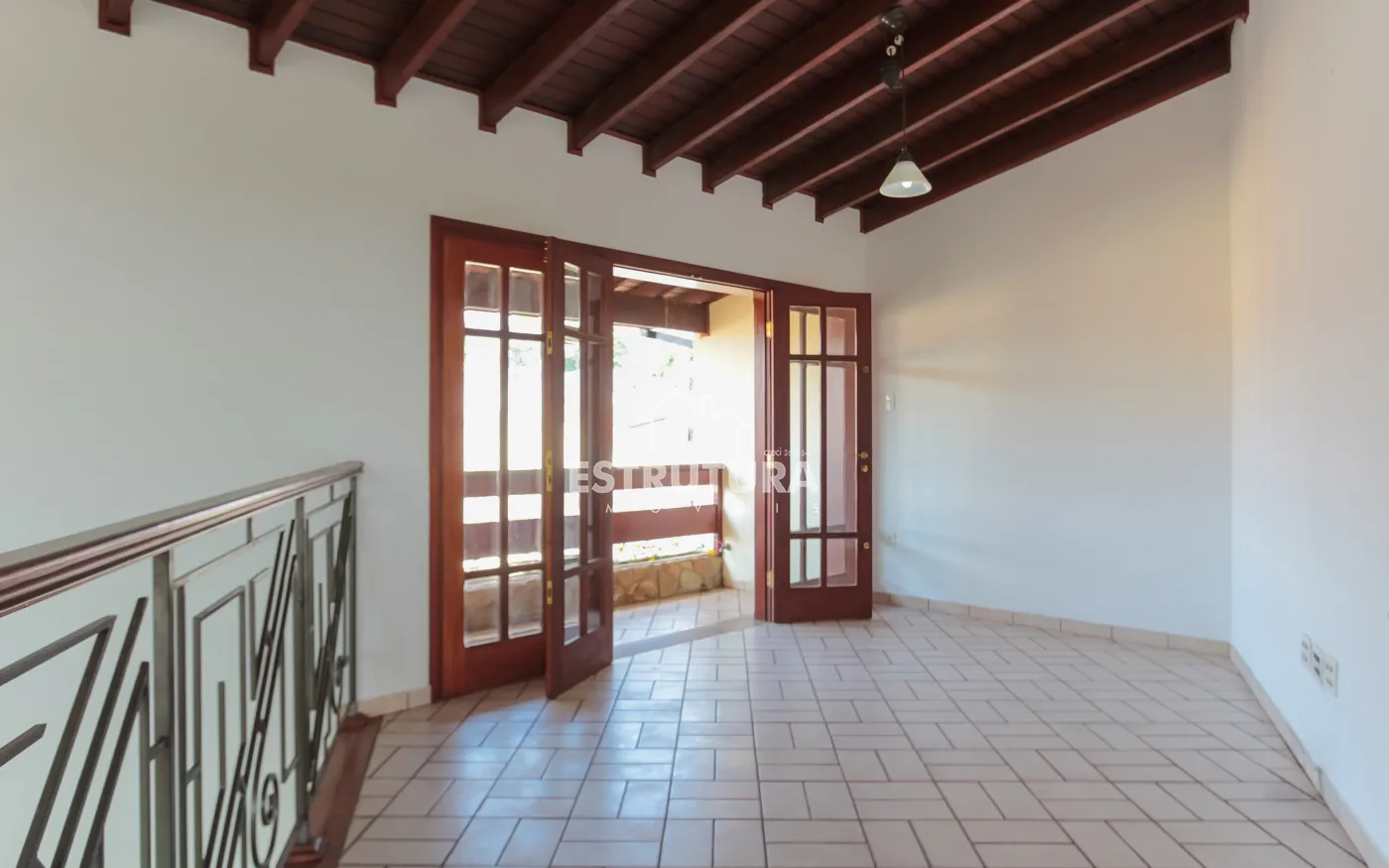 Sala de TV climatizada e aconchegante com uma varanda;