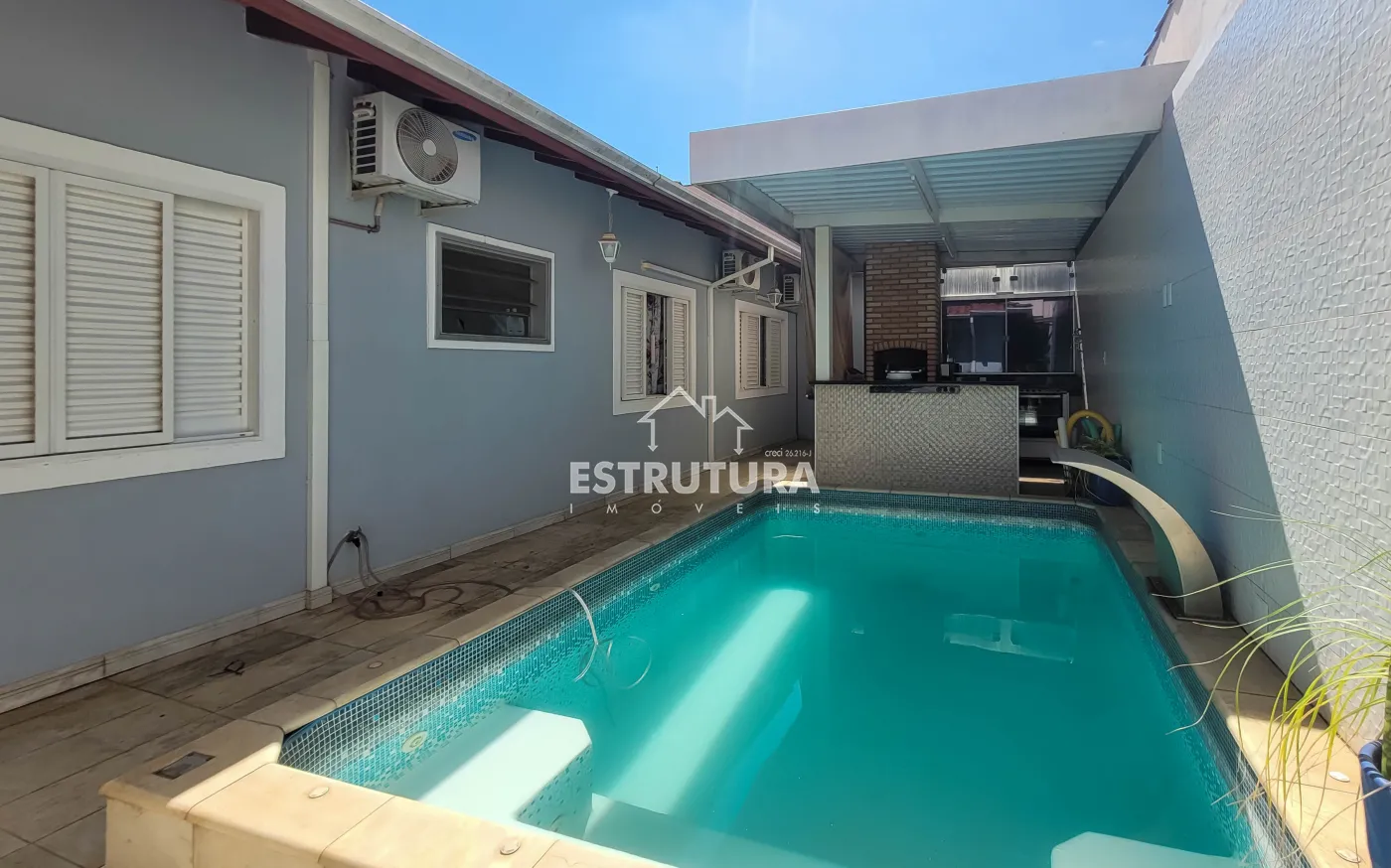 Aos fundos, área gourmet com planejados, churrasqueira e piscina, 01 banheiro, lavanderia espaçosa e um quintal