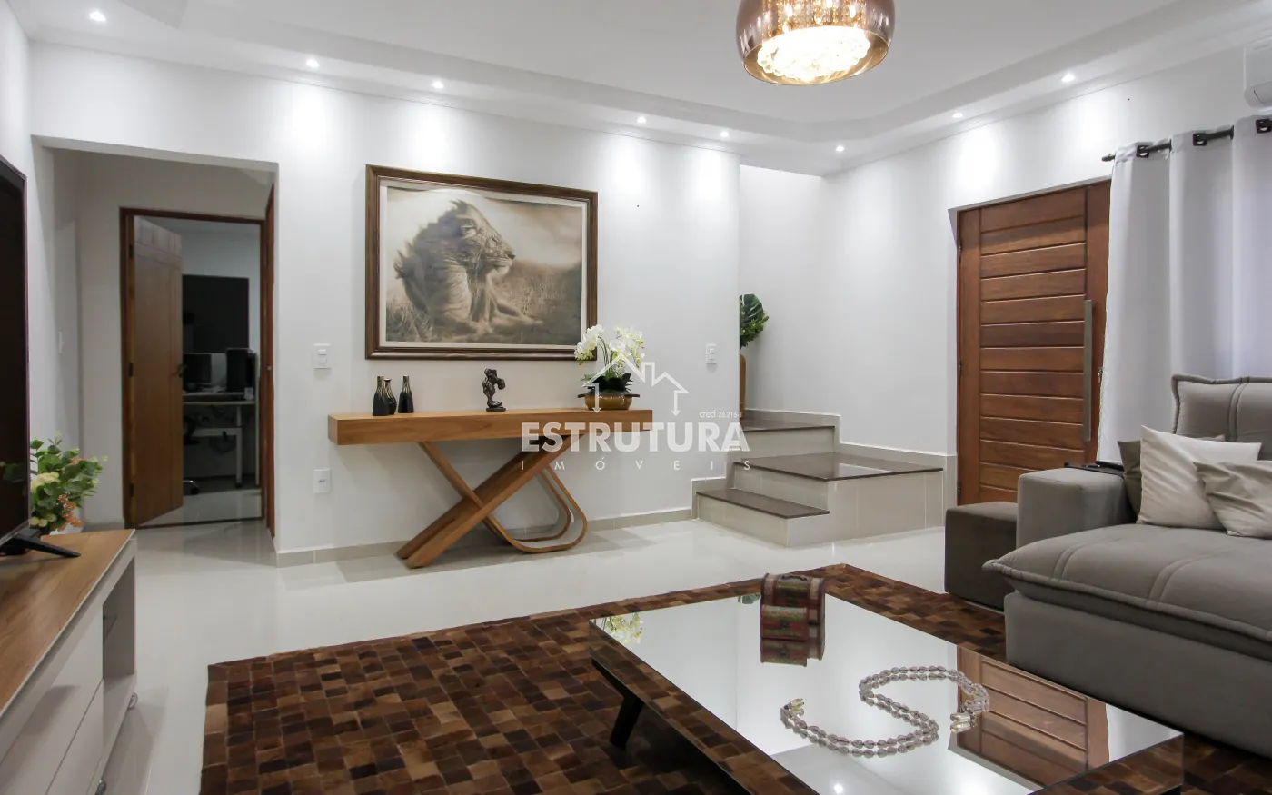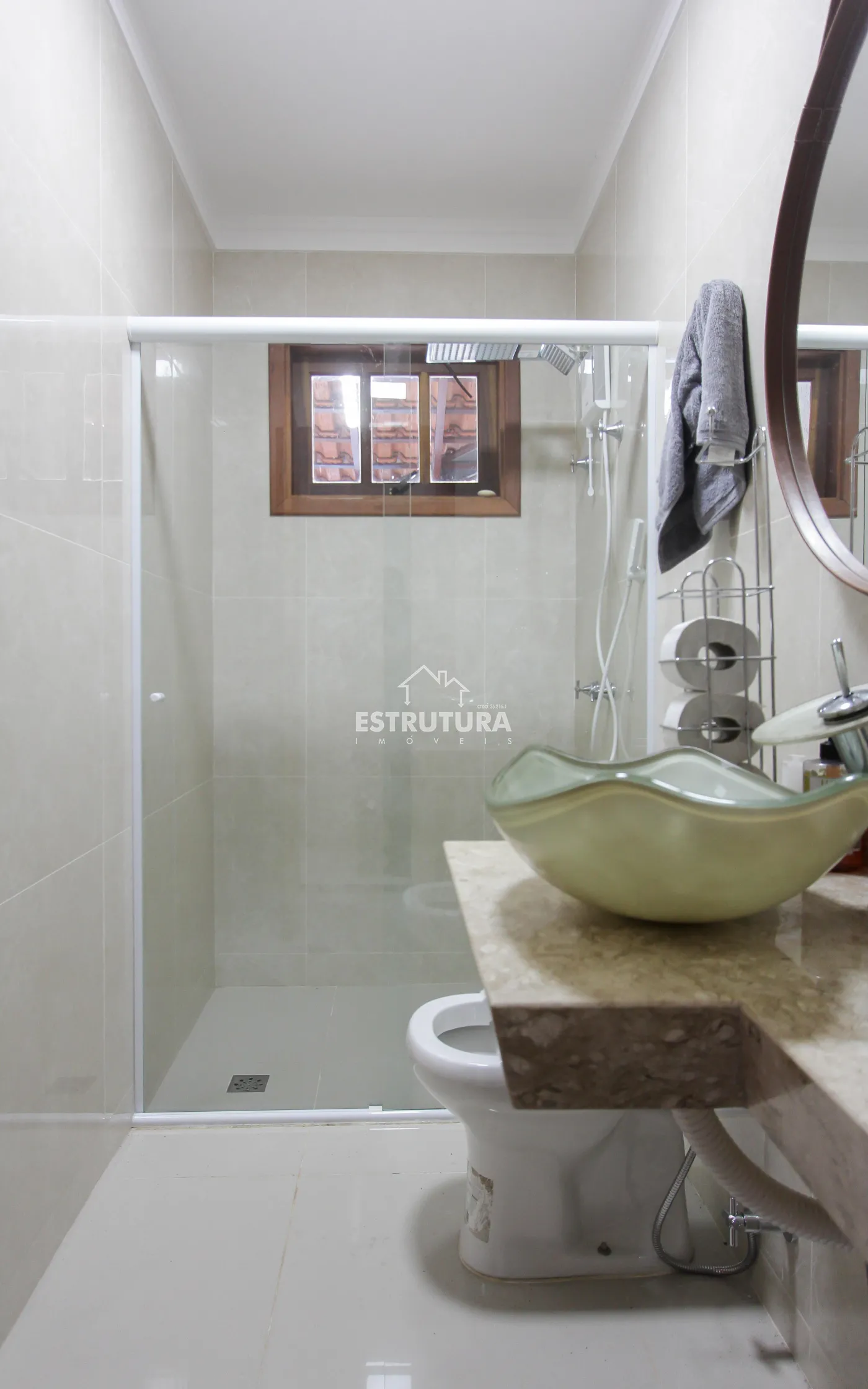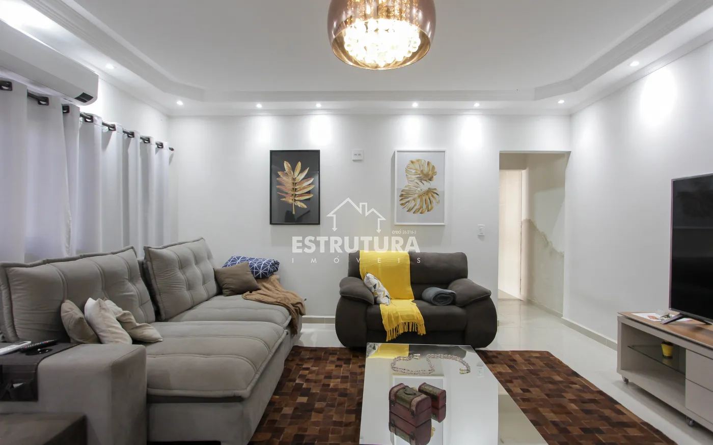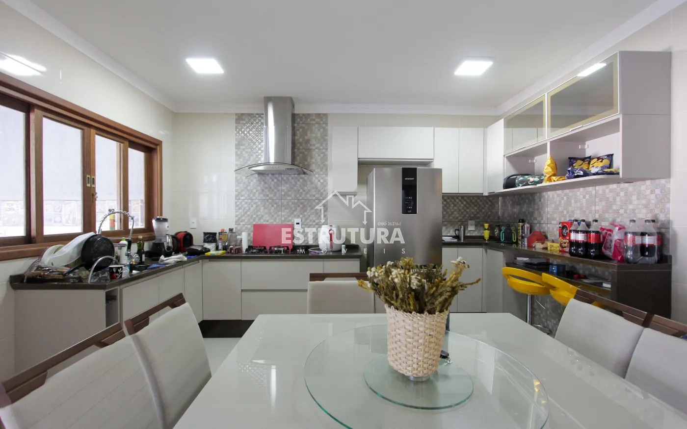 Lindo sobrado contendo 3 quartos, sendo 2 suítes, uma delas com closet, sala, cozinha, lavanderia, 1 banheiro social e área gourmet completa, com piscona, churrasqueira, sauna e depósito. Além de uma garagem para 6 carros.