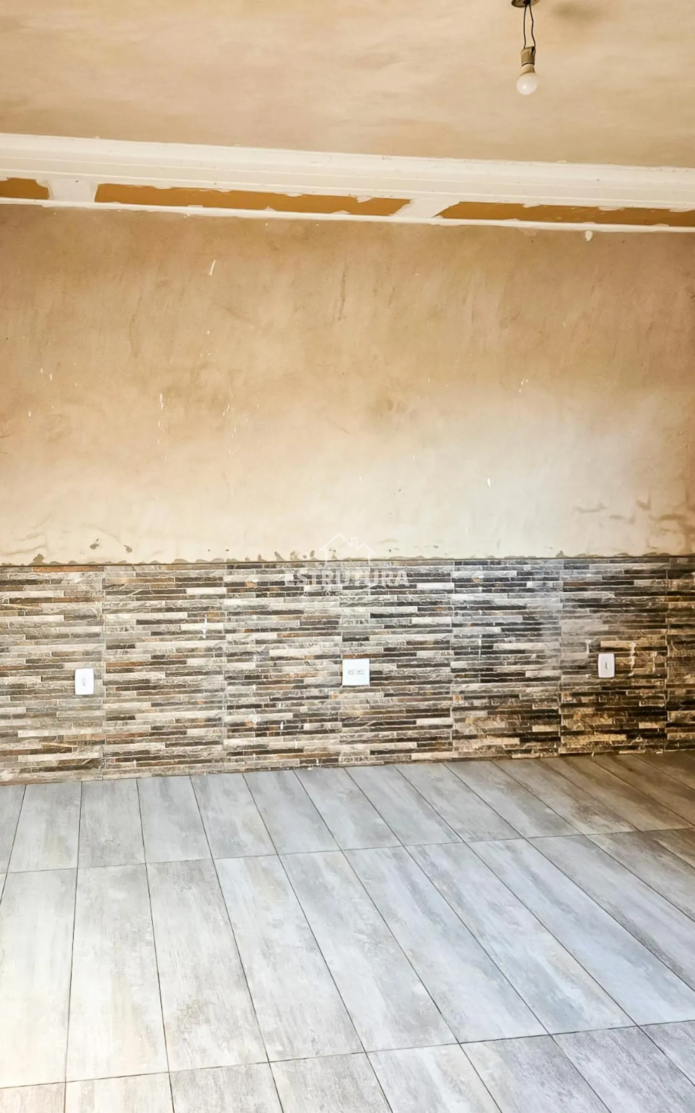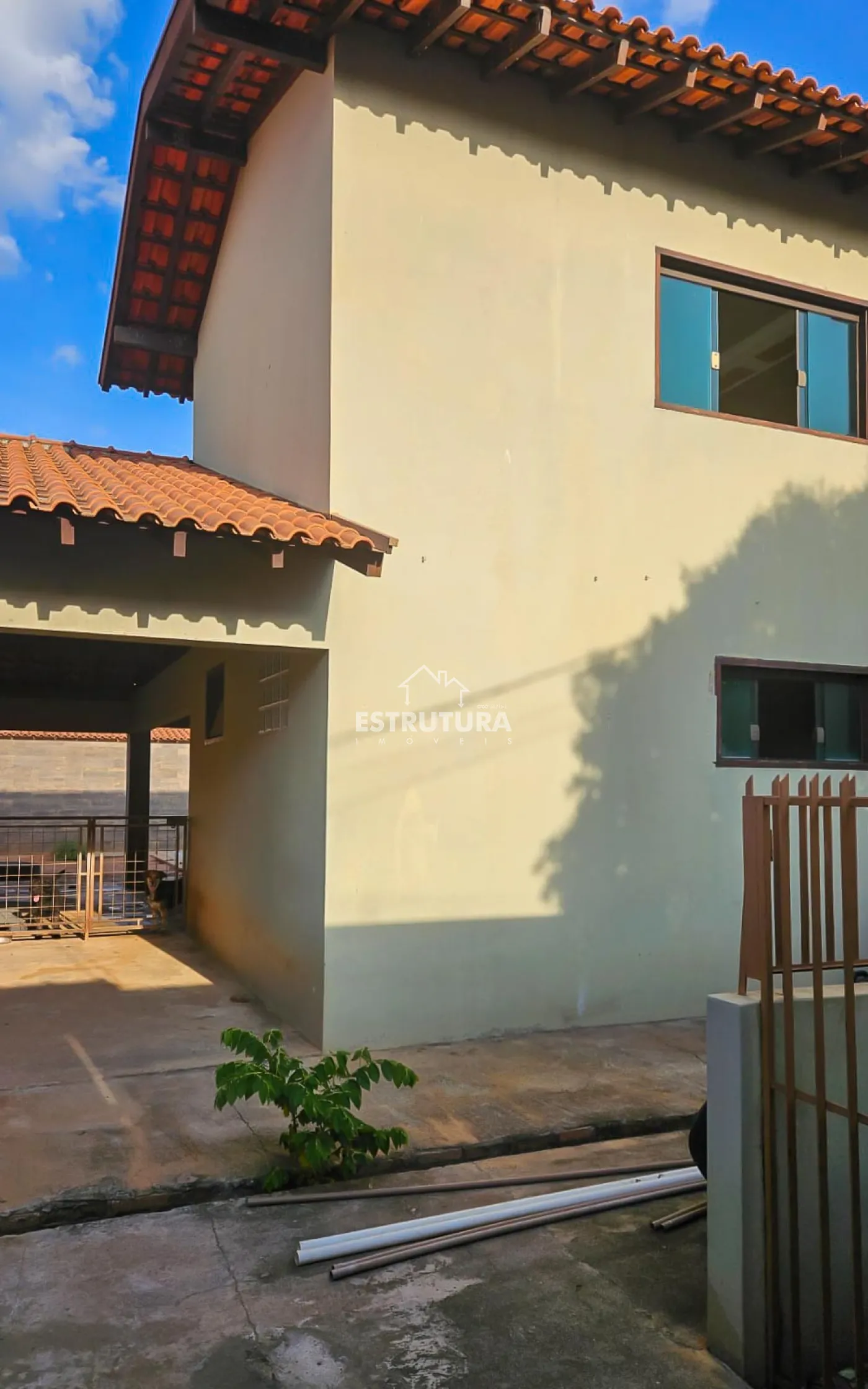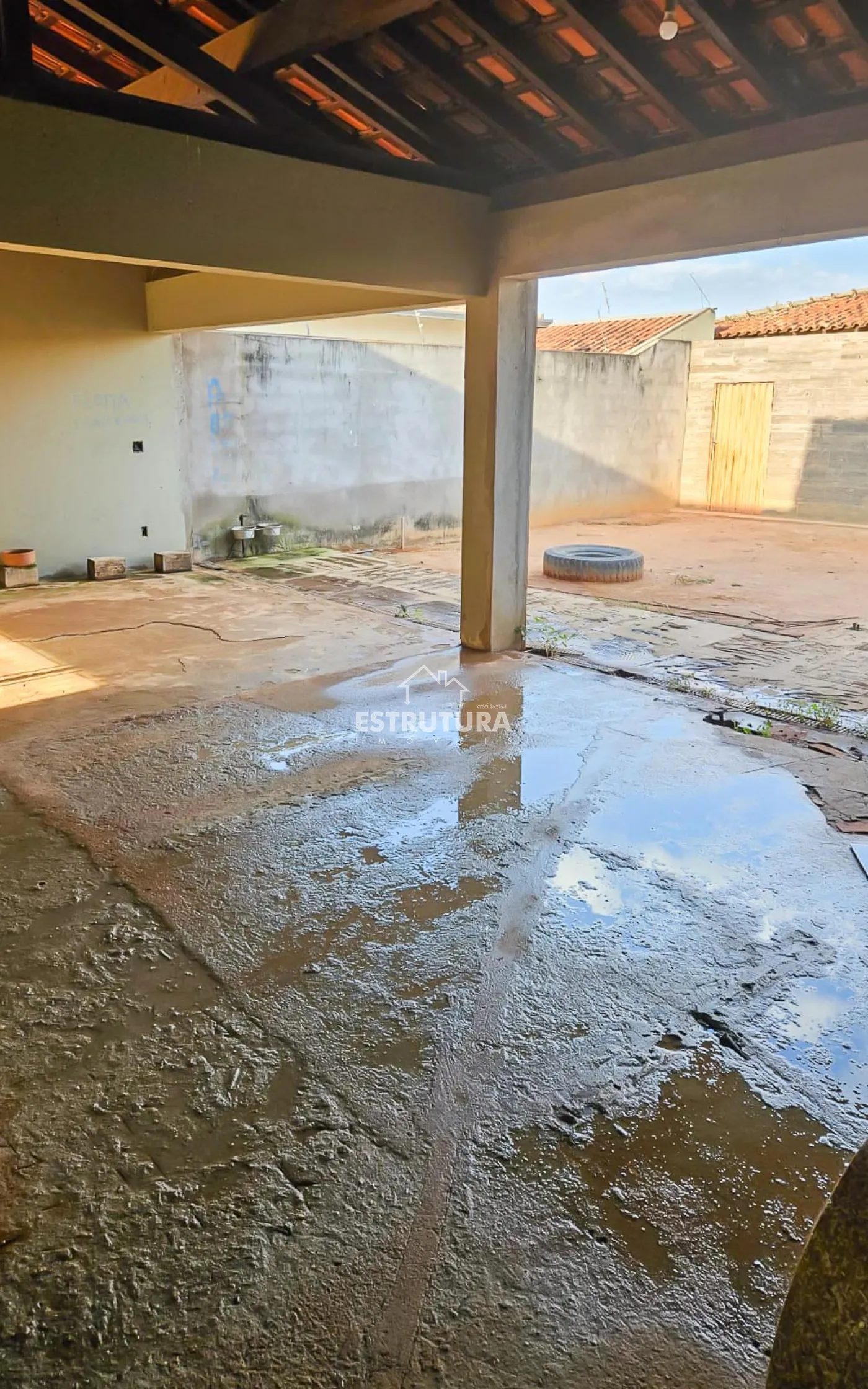 Casa em fase de construção, sobrado. Na parte superior, 1 quarto com suíte; na parte inferior, cozinha e mais um cômodo. Possui piscina com cascata, casa de máquina, ducha, quintal com canil e garagem para vários carros.