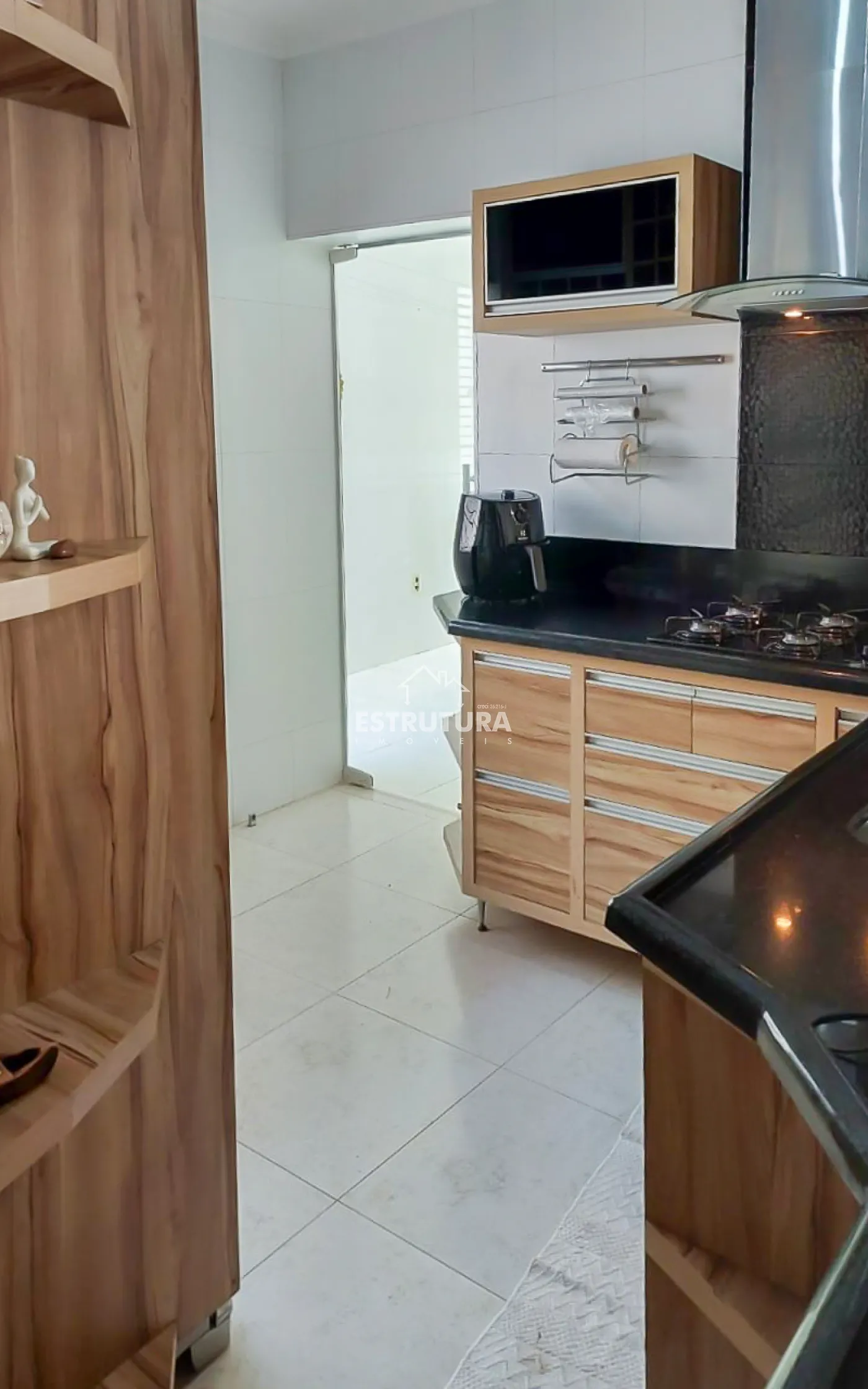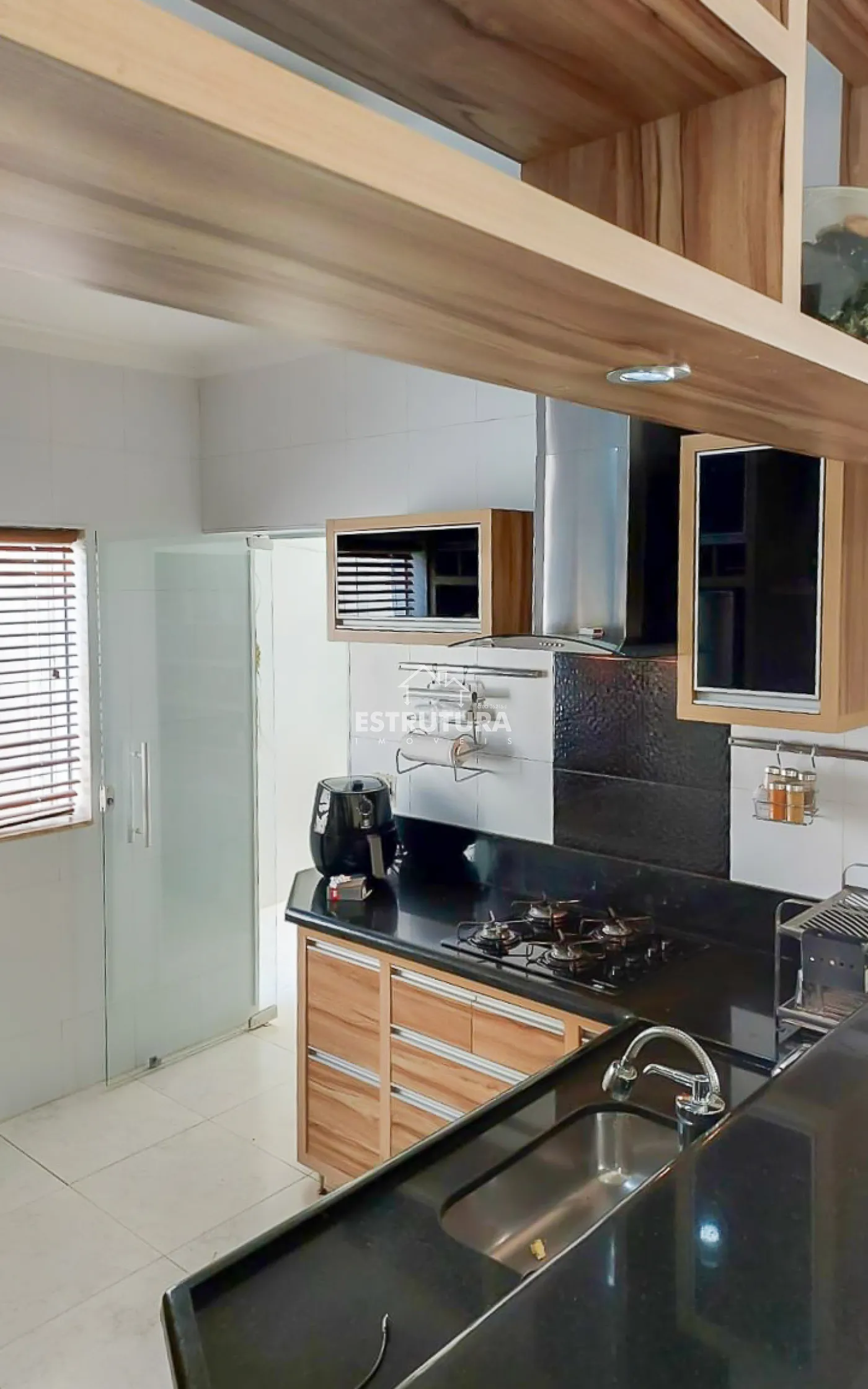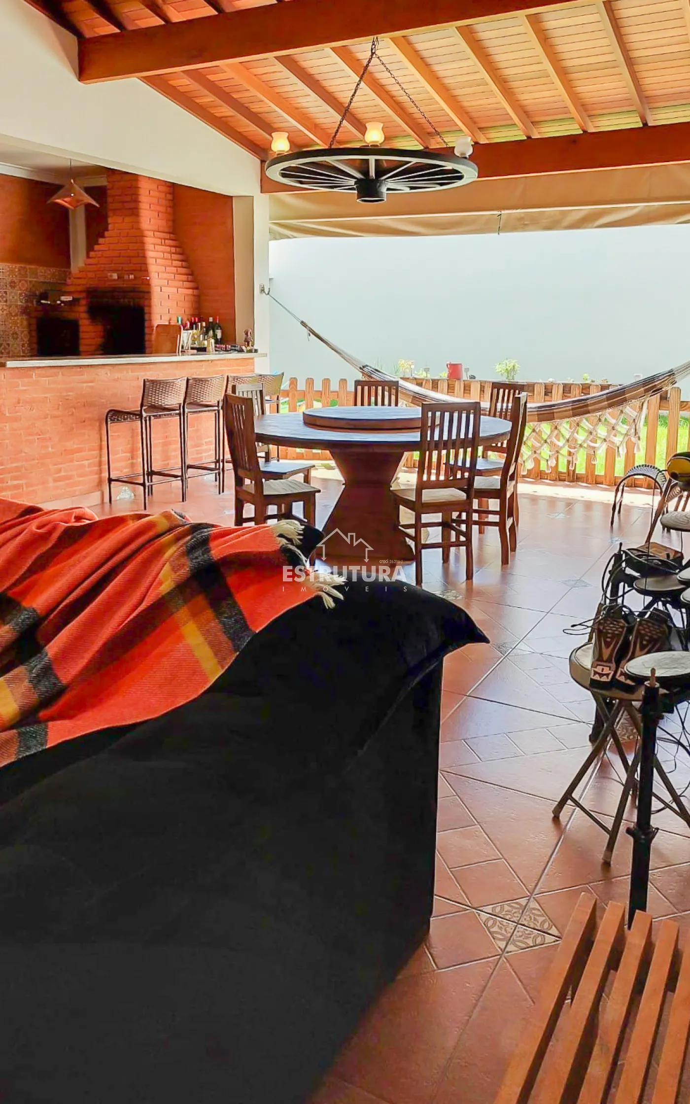Residência, com fino acabamento e excelente localização. Pavimento inferior - Sala de TV, lavabo, sala de jantar, cozinha repleta de armários, lavanderia fechada, espaço gourmet com fogão a lenha, pequeno quintal, sala externa terrea com 1 banheiro social e outra sala superior - WC social, dormitório, suíte com armário, suíte máster com escritório, closet e WC com hidro dupla. Garagem para 2 veículos. Cerca elétrica. Ar condicionado.