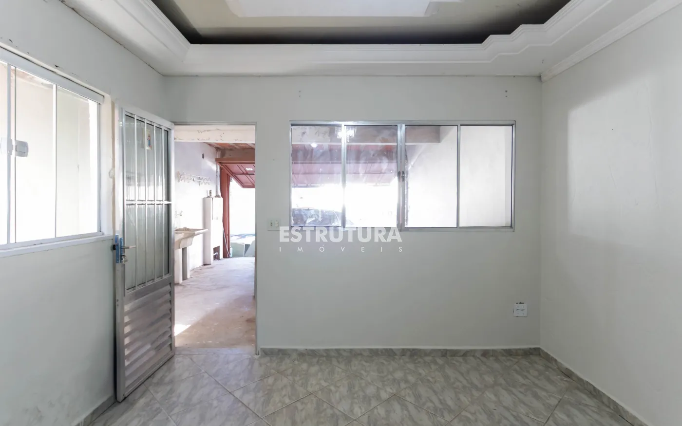 piso terreo, 1 dormitorio, sala, cozinha, banheiro social, lavanderia e garagem para 2 carros