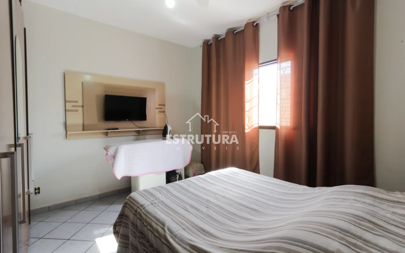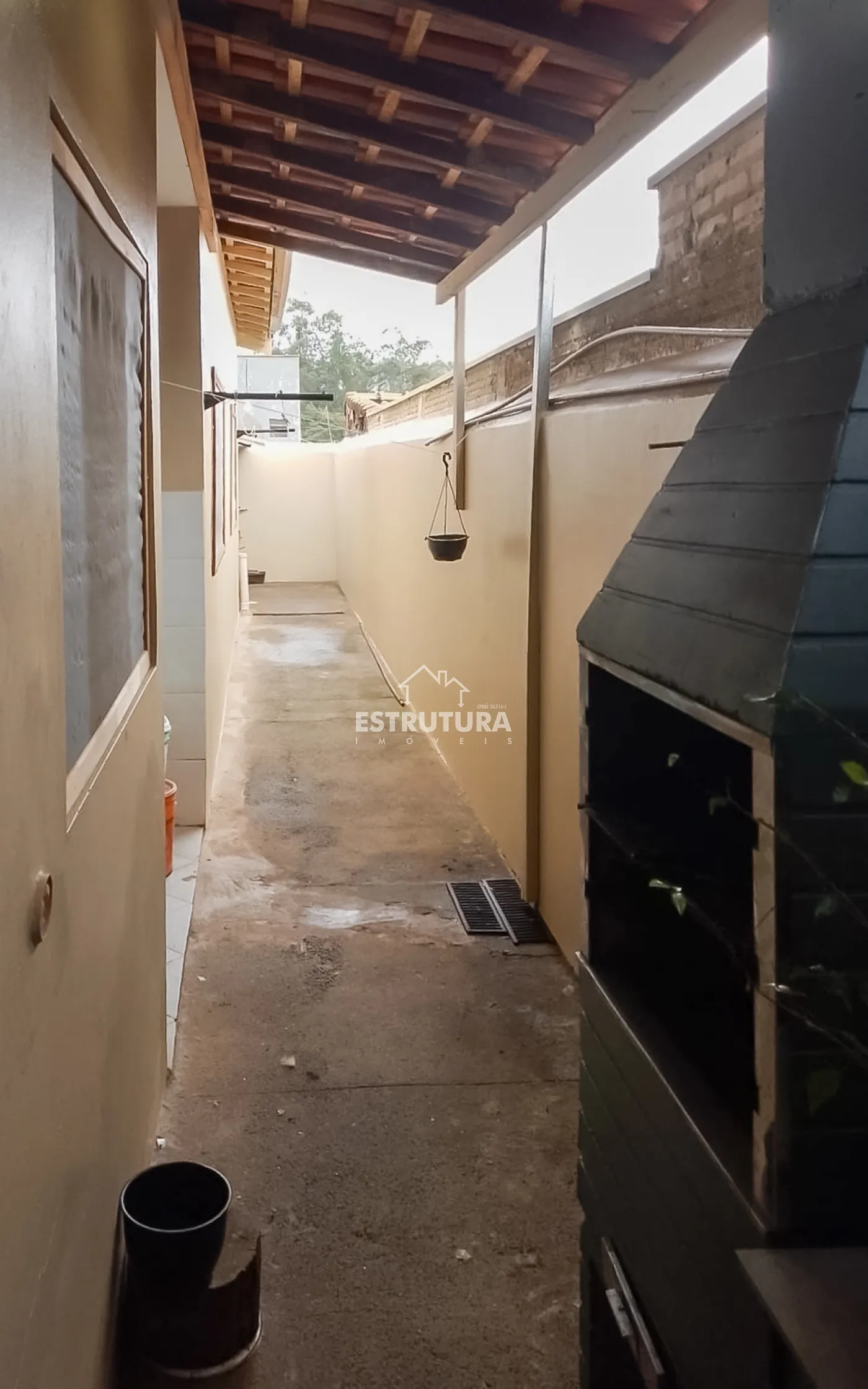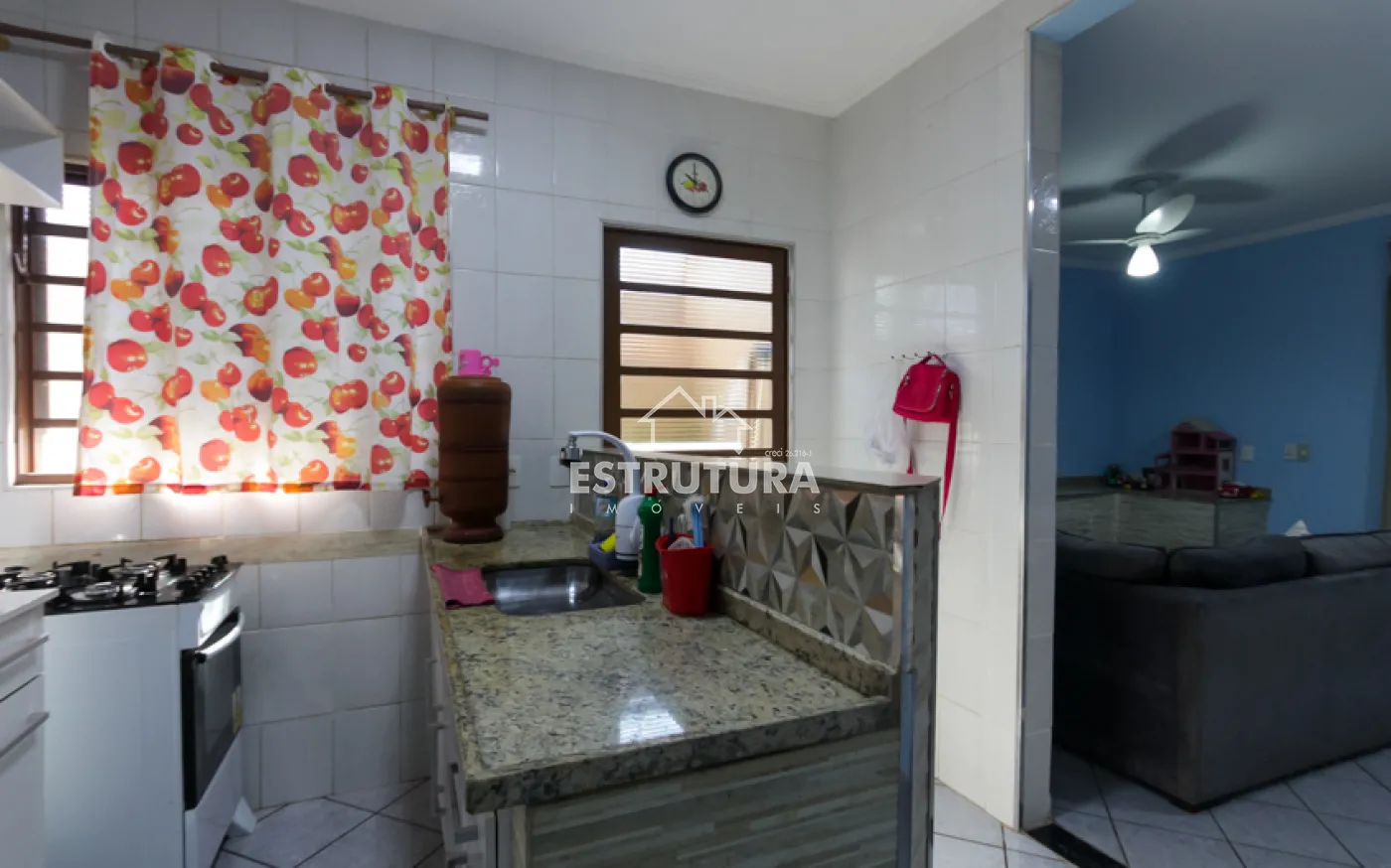 Sala de TV integrada à sala de jantar e cozinha, proporcionando integração com as pessoas no mesmo ambiente, 2 quartos, banheiro social, rancho lateral com churrasqueira, perfeito para momentos de lazer em família, encanamento pronto para ampliação, com possibilidade de transformar o último quarto em suíte.