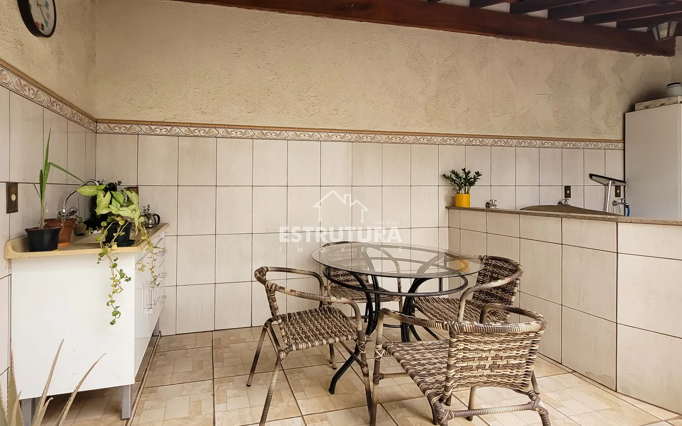 A casa é bem conservada e oferece conforto e praticidade: conta com 2 dormitórios, sala de estar, cozinha funcional, 2 banheiros (sendo um de serviço), área de serviço e 2 vagas de garagem cobertas e portão eletrônico.