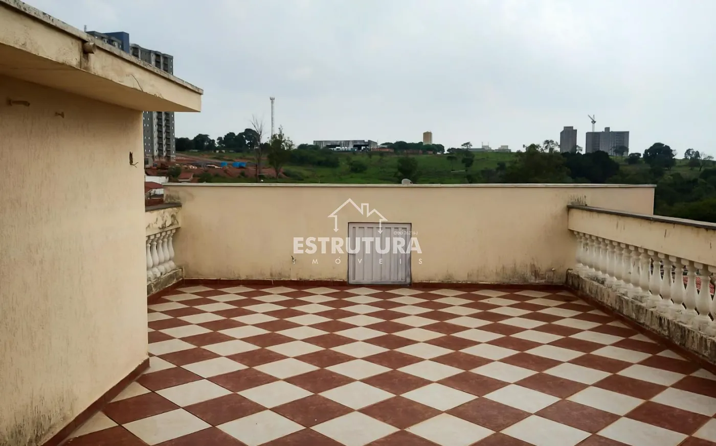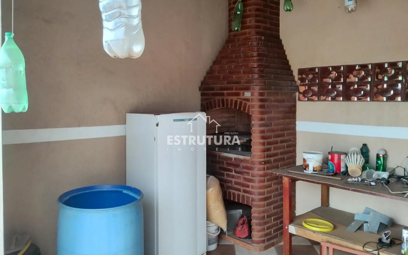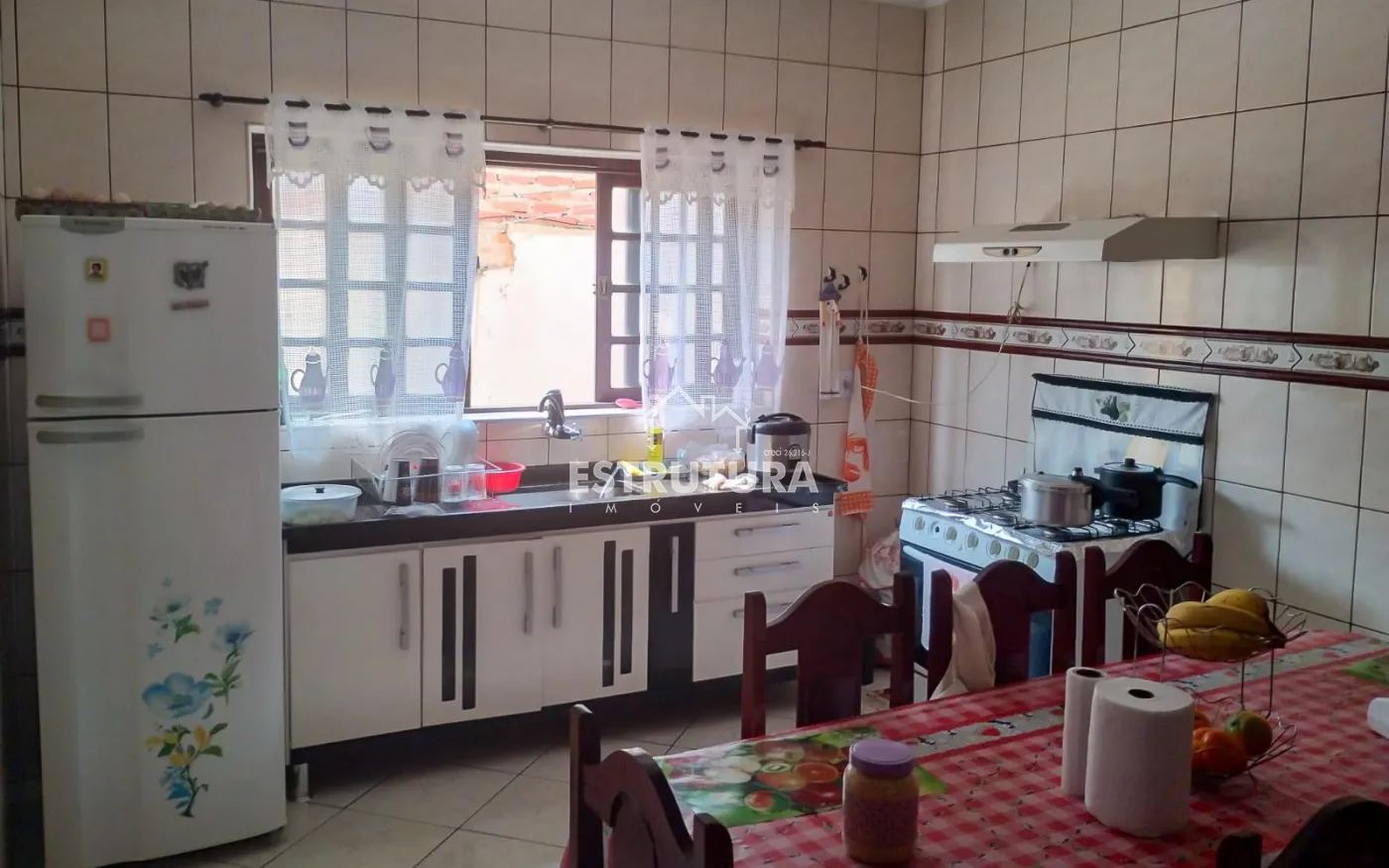 Aos fundos uma casa com entrada individual, 1 dormitório, sala, cozinha, banheiro social e varanda