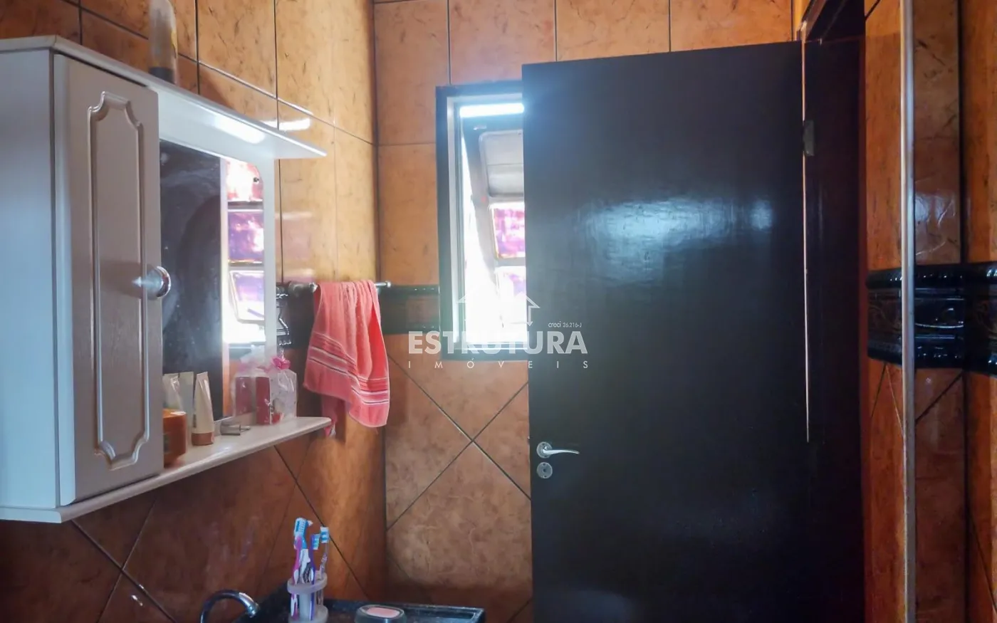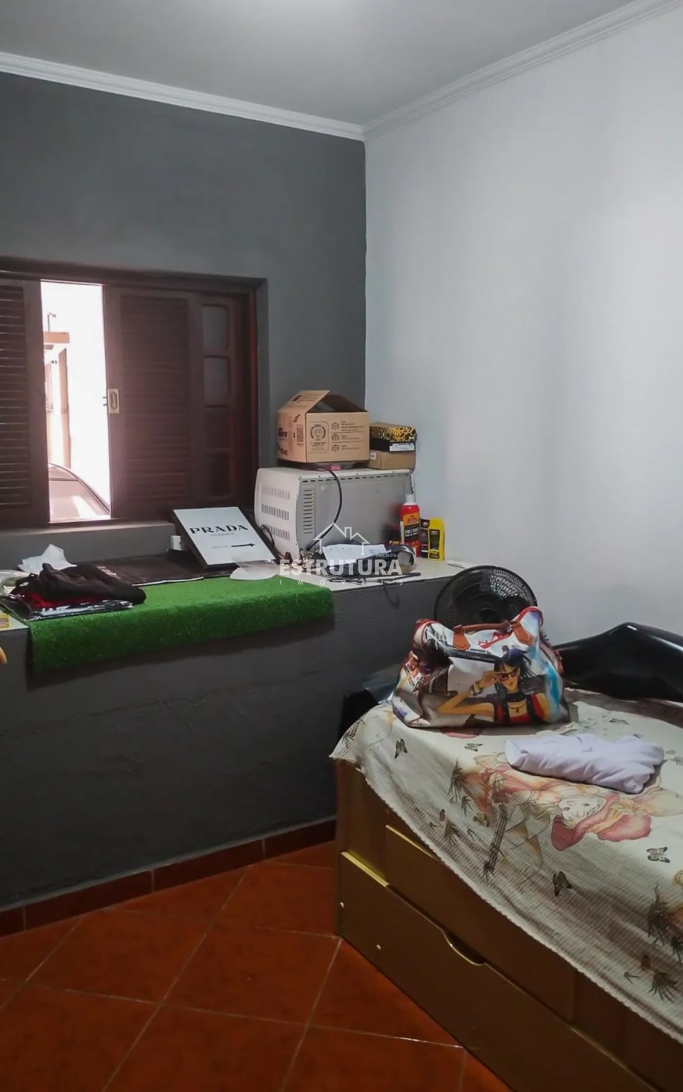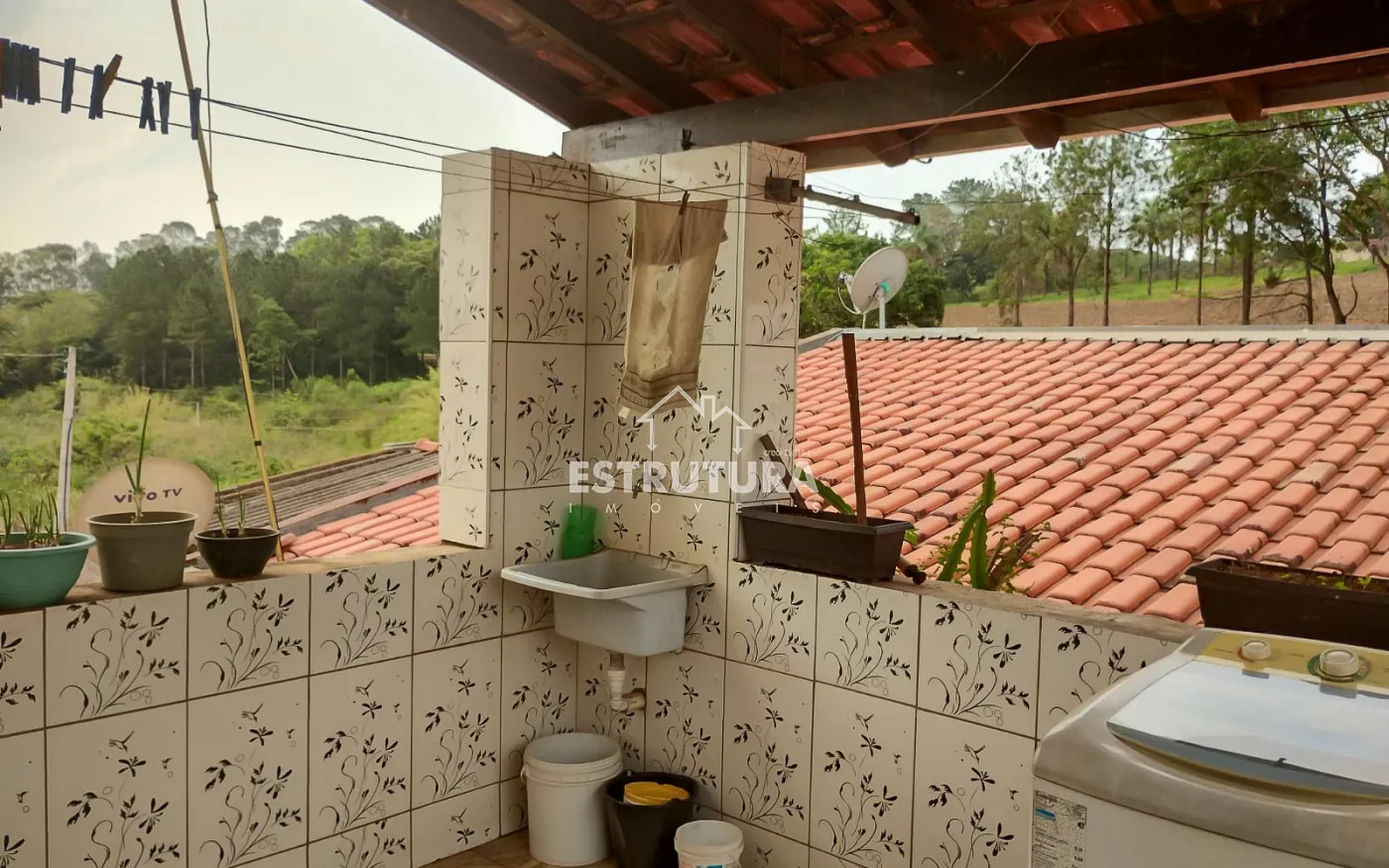 Aos fundos uma casa com entrada individual, 1 dormitório, sala, cozinha, banheiro social e varanda