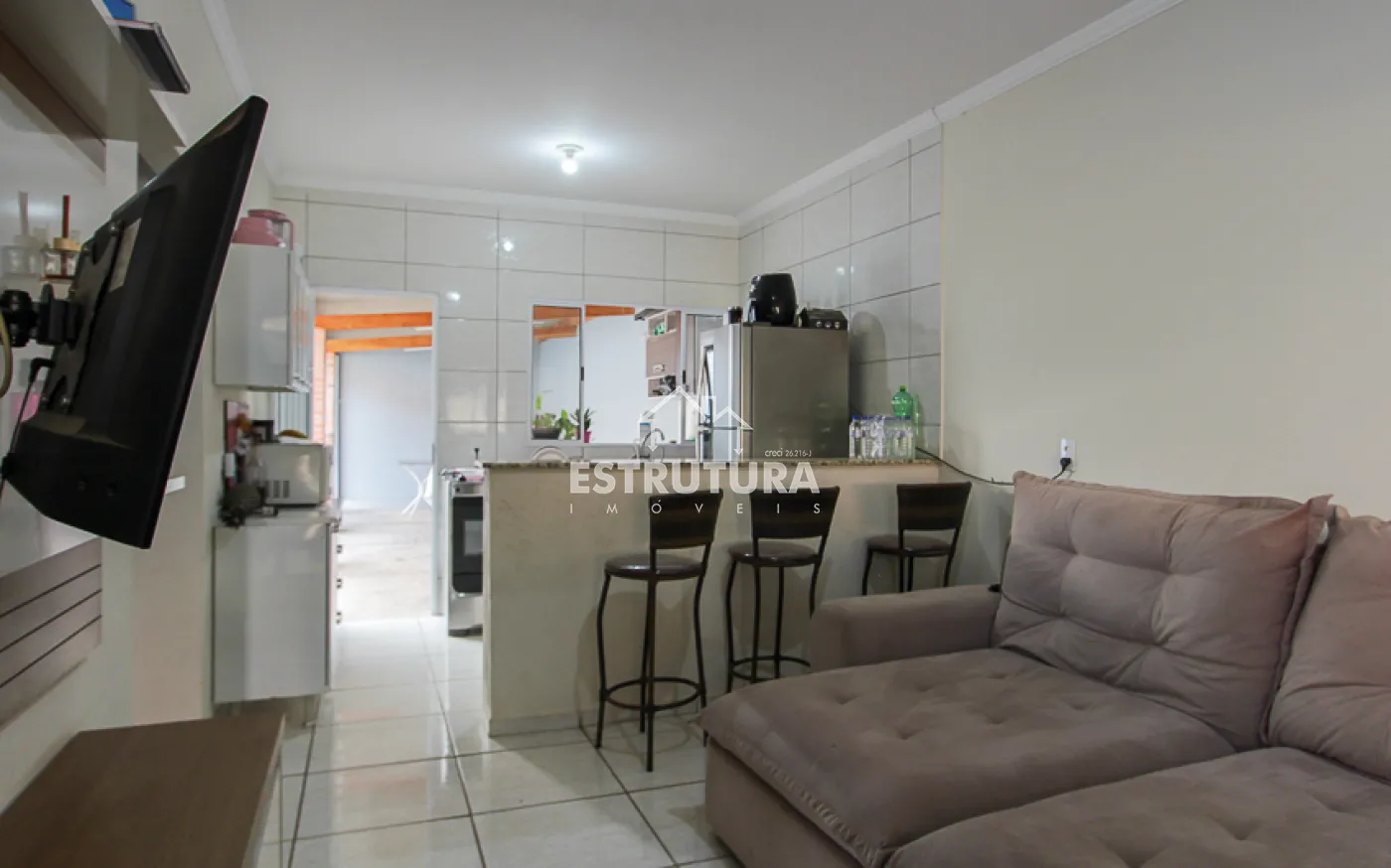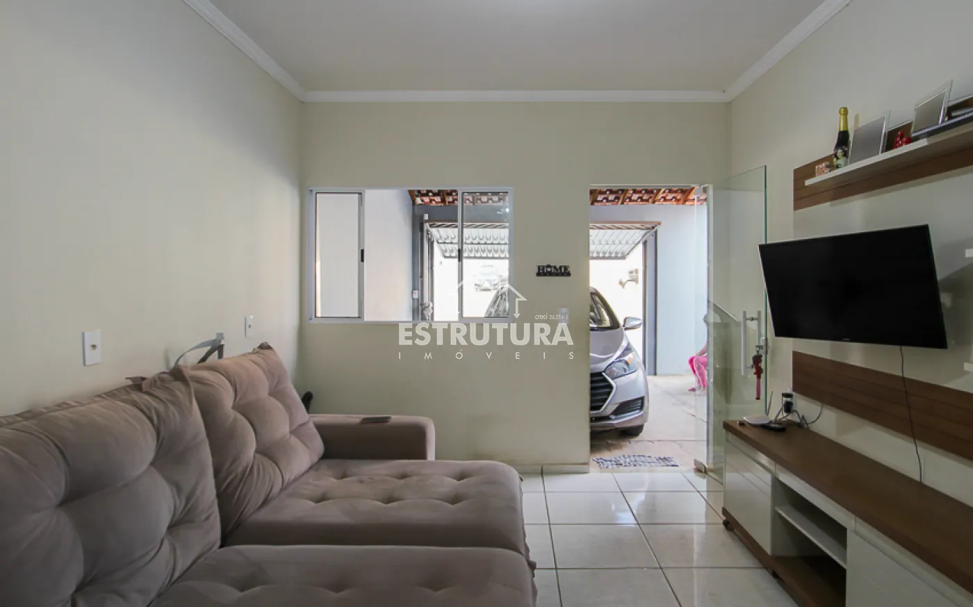 Casa residencial oferecendo garagem com capacidade para dois carros, uma sala ampla, cozinha com gabinete, um quarto espaçoso e um banheiro também com gabinete. O imóvel se completa com um quintal espaçoso e beneficia-se de uma localização de fácil acesso.