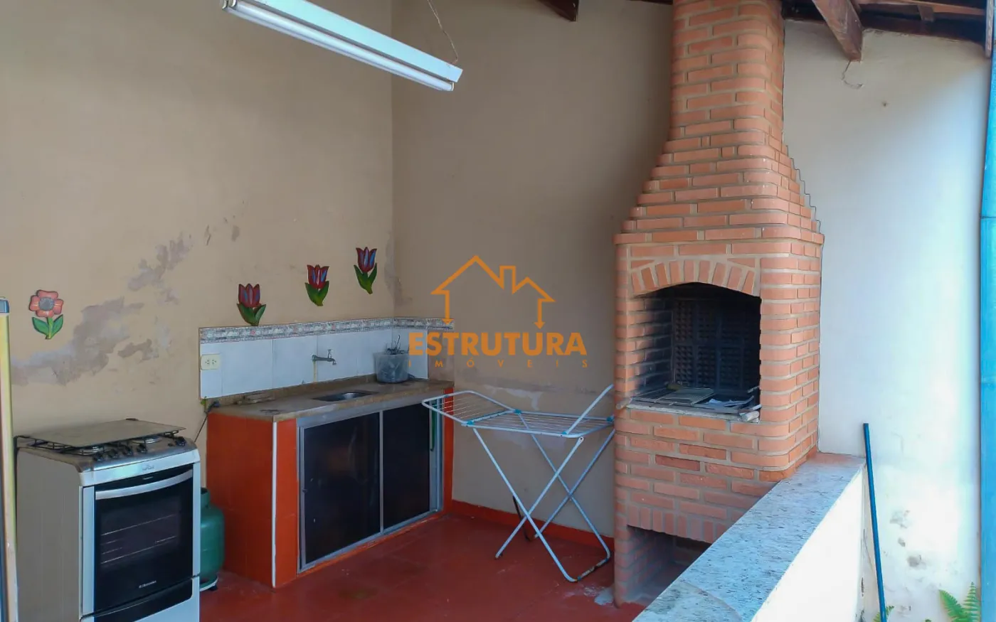 Fundos: área de lazer com churrasqueira, quarto, banheiro e quintal.