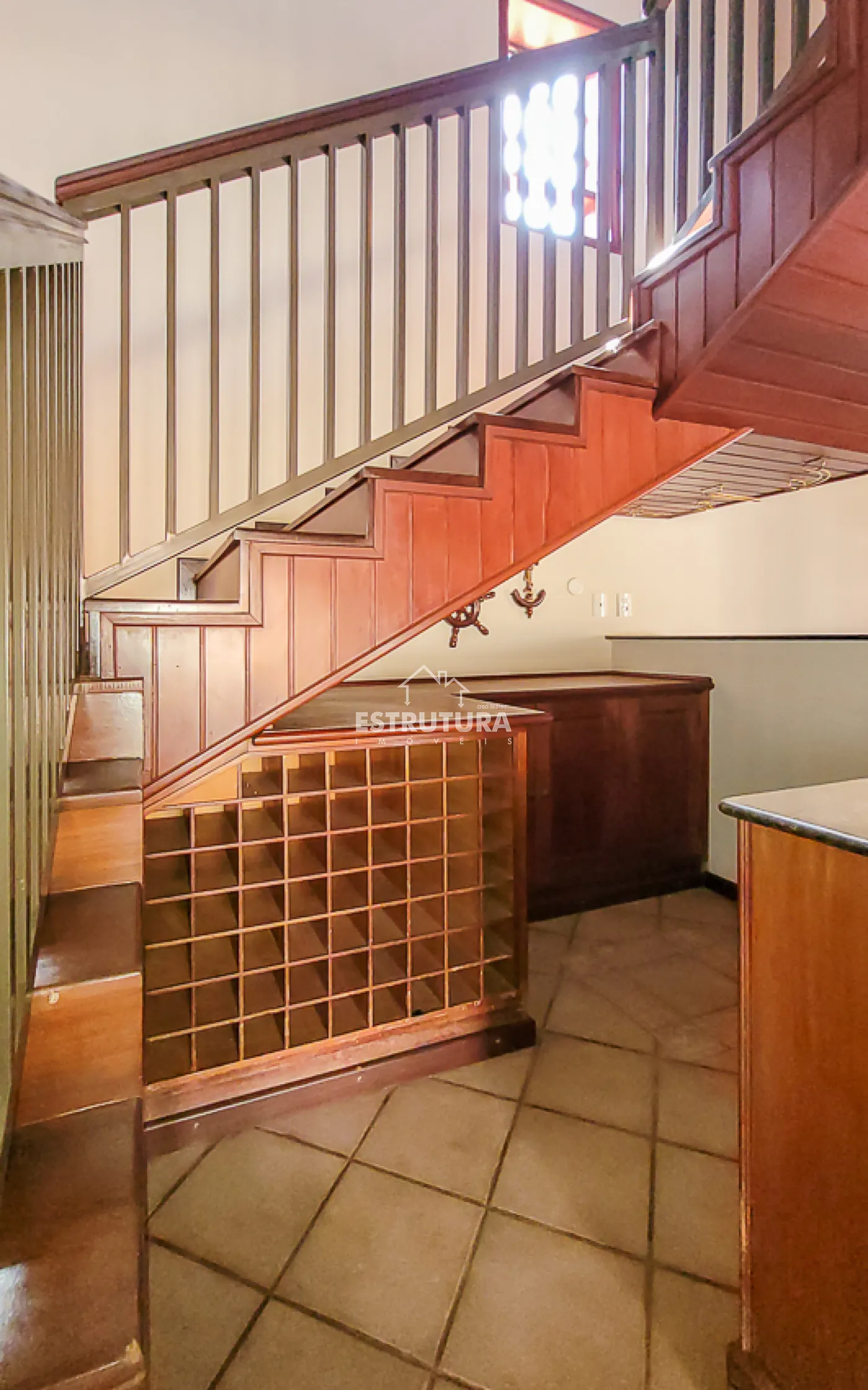 No piso térreo, dispõe de escritório, sala de estar com bar e adega, lavabo, sala de TV, cozinha planejada com armários, despensa, área de serviço, quintal reservado para lavanderia, área verde privativa e um cômodo com banheiro, ideal para dormitório de apoio ou segundo escritório.