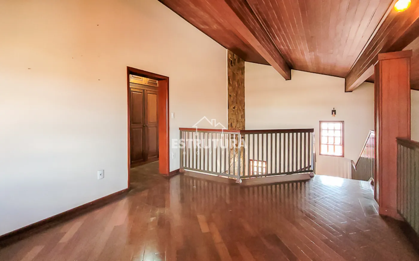 No piso superior, há hall com armários em madeira e 3 suítes com armários, sendo 1 suíte master com sacada privativa e closet.