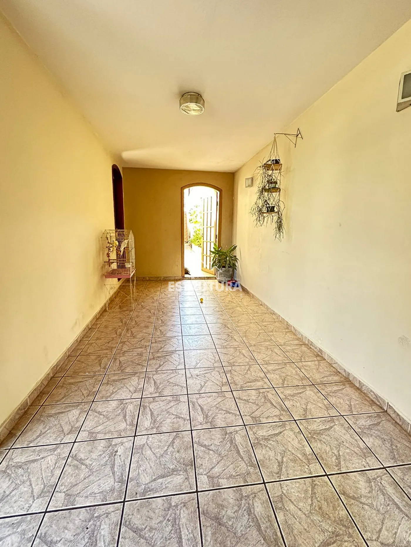 Casa com boa distribuição, contém sala ampla, cozinha e copa, 2 dormitórios (1 suíte) e corredores laterais.