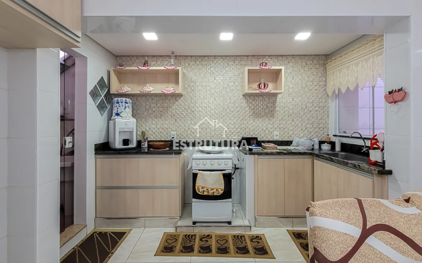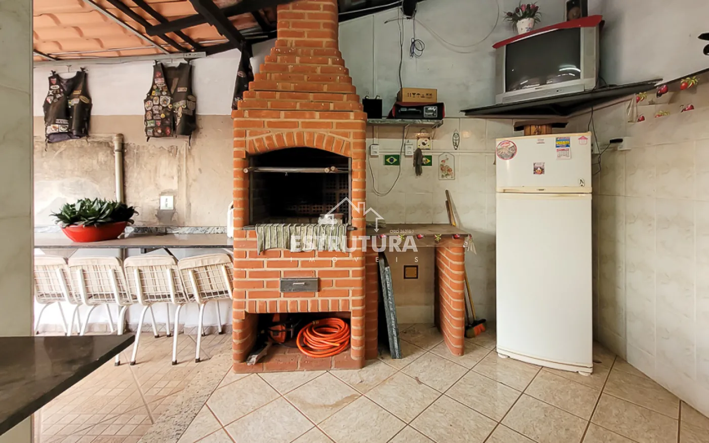 Em seu piso superior ficam as 02 suítes, área de serviço, terraço e espaço com churrasqueira.