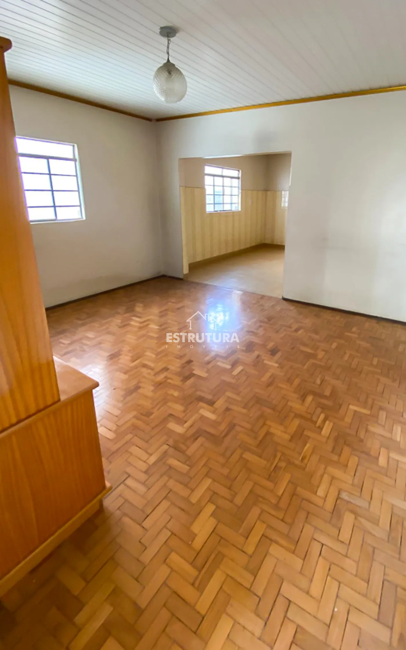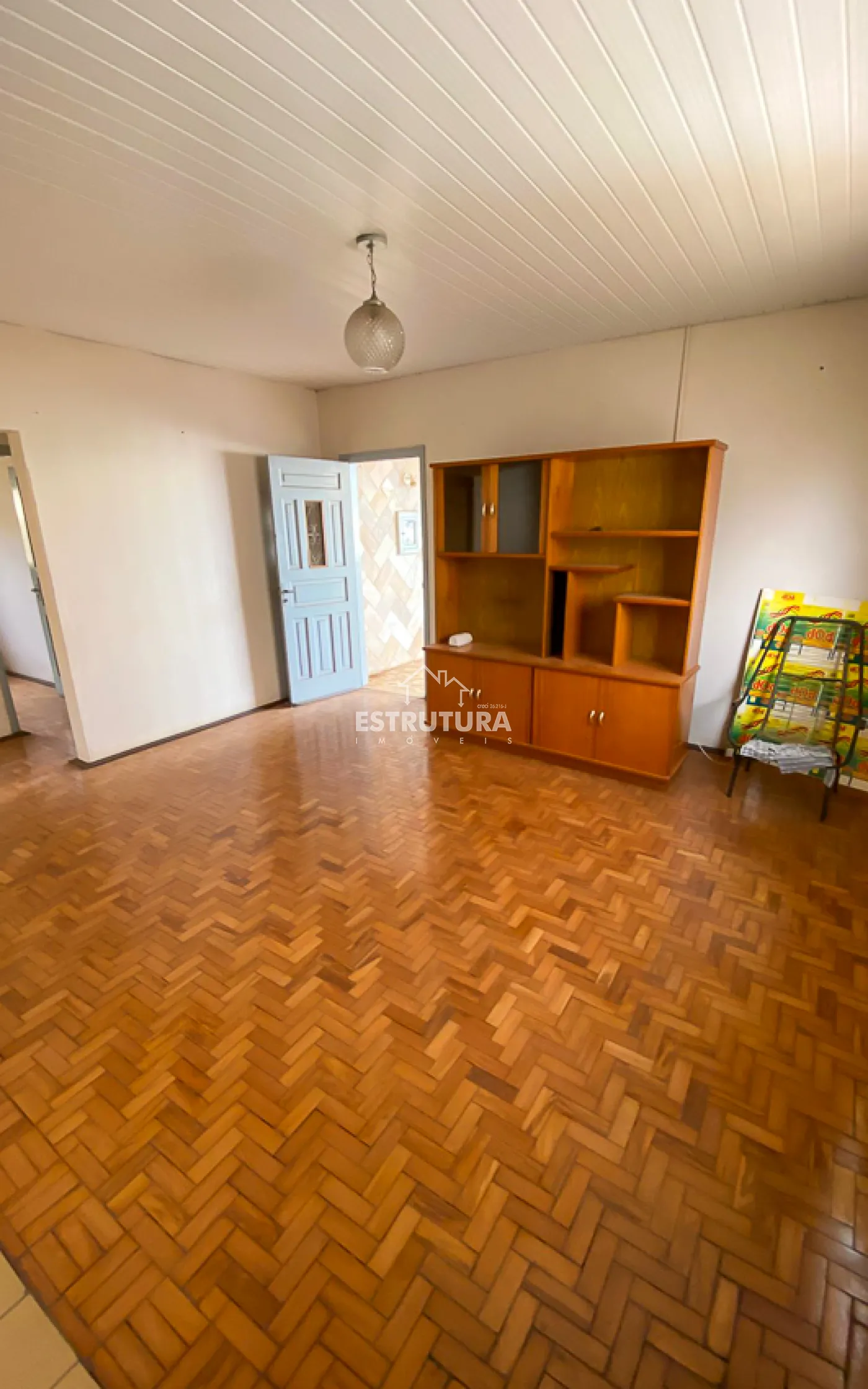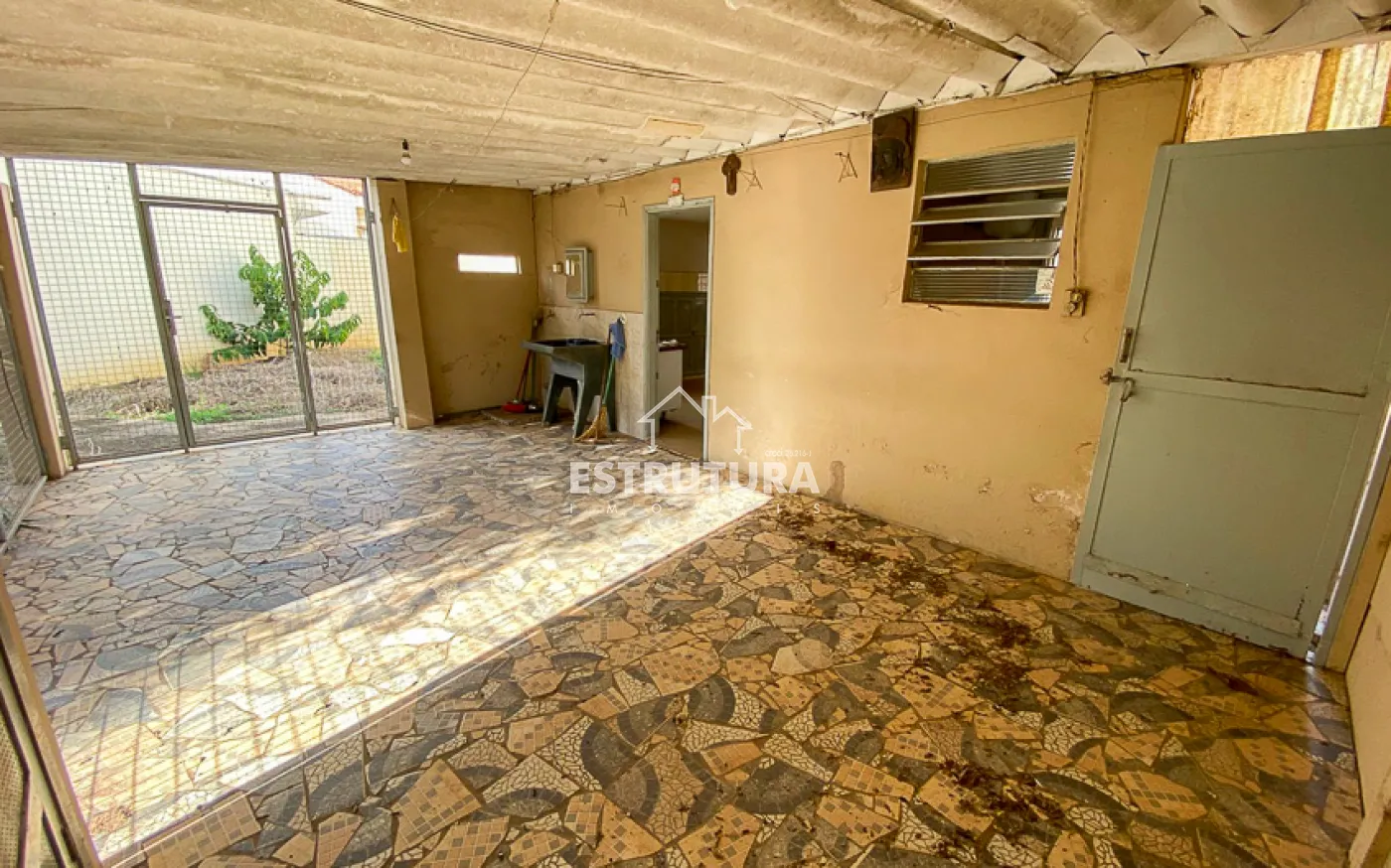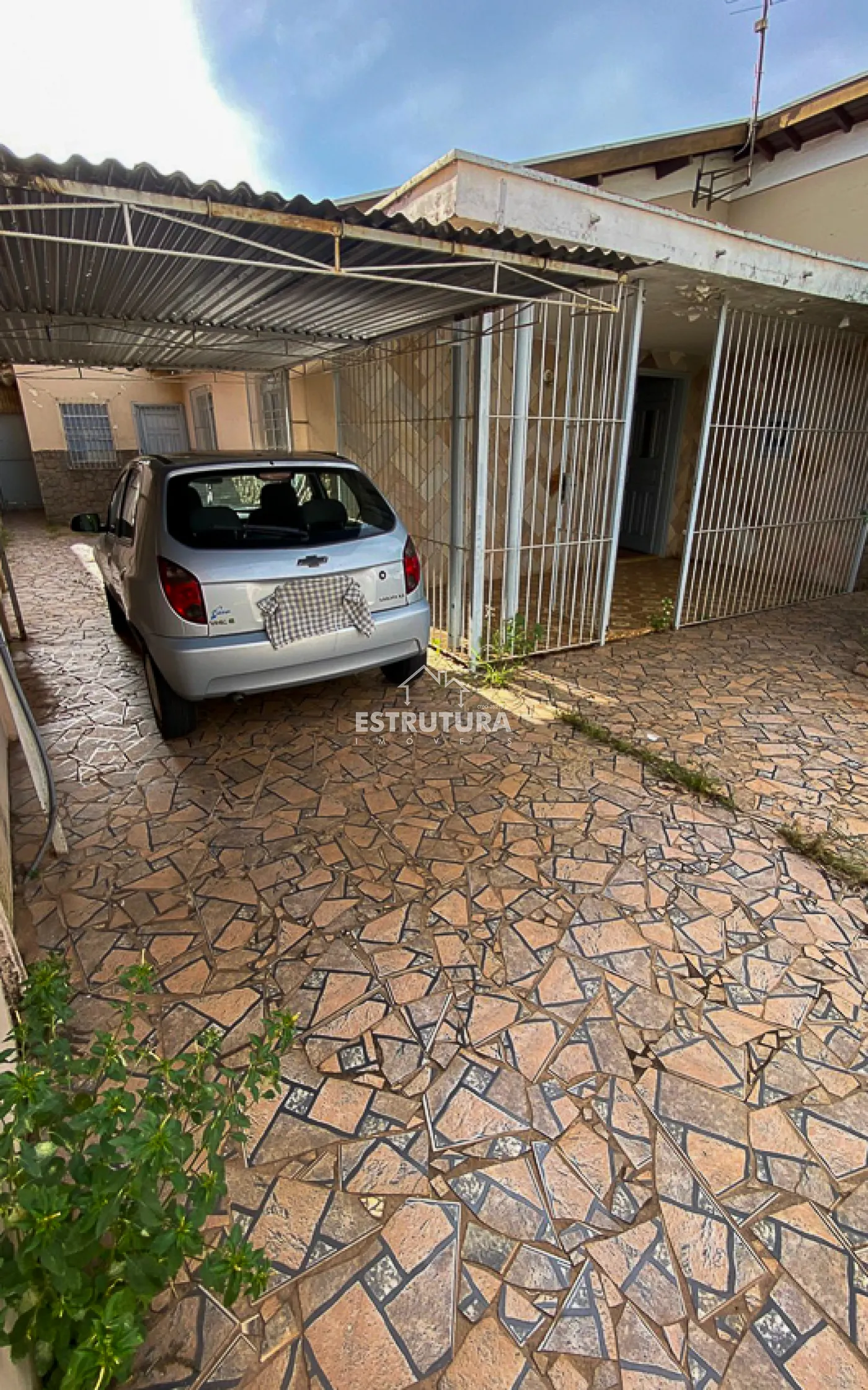 Imóvel residencial com 3 quartos, sala, copa, cozinha, 2 banheiros, lavanderia e pequeno rancho. O quintal é amplo, com pomar, e a garagem possui espaço para 3 carros, sendo uma vaga coberta.