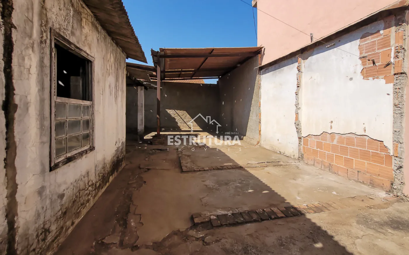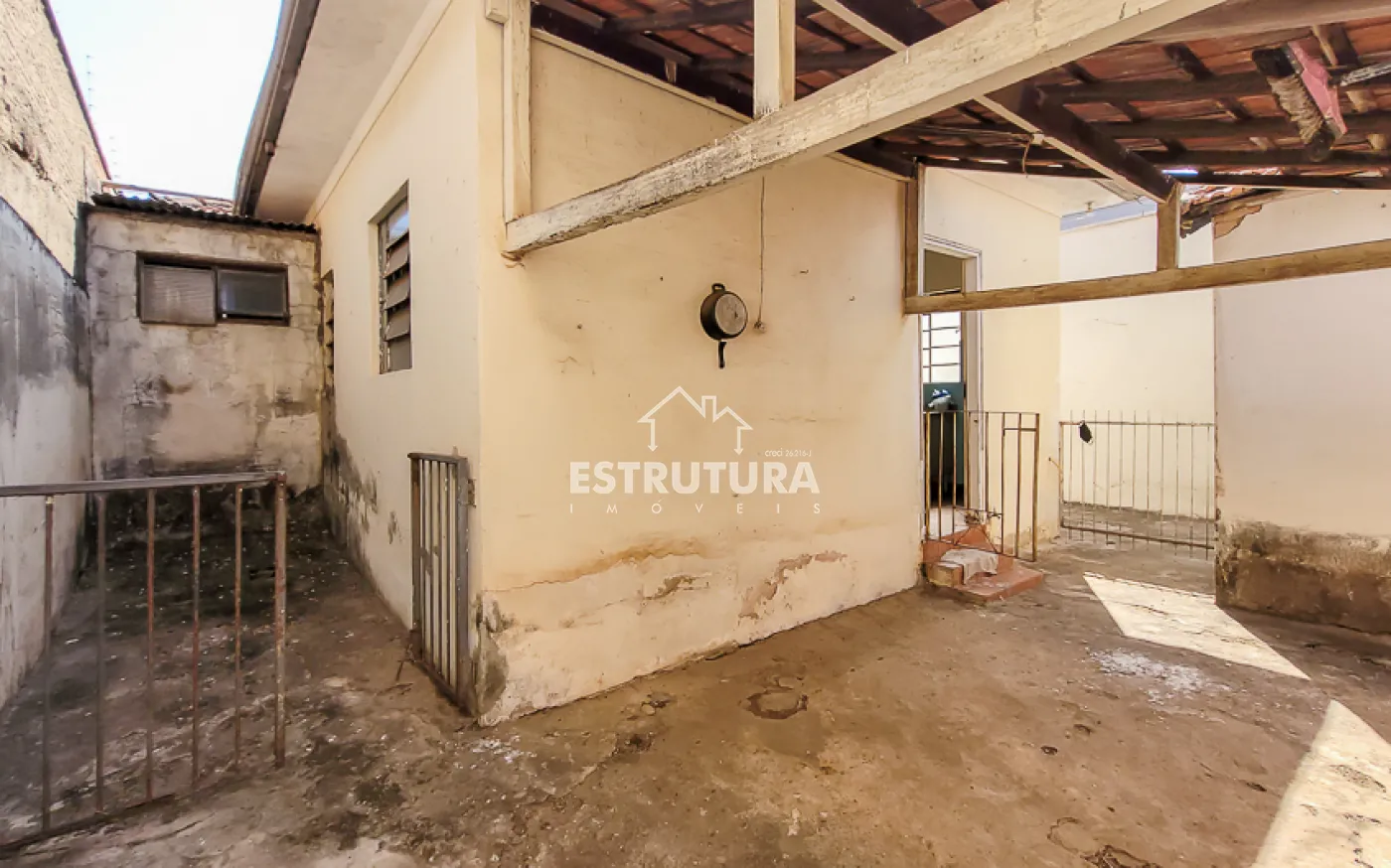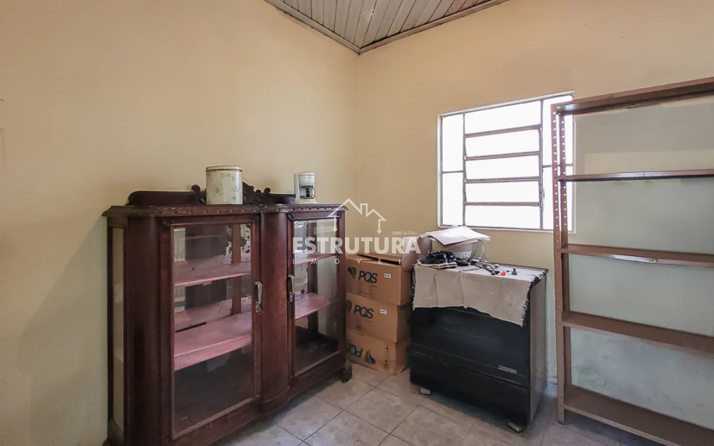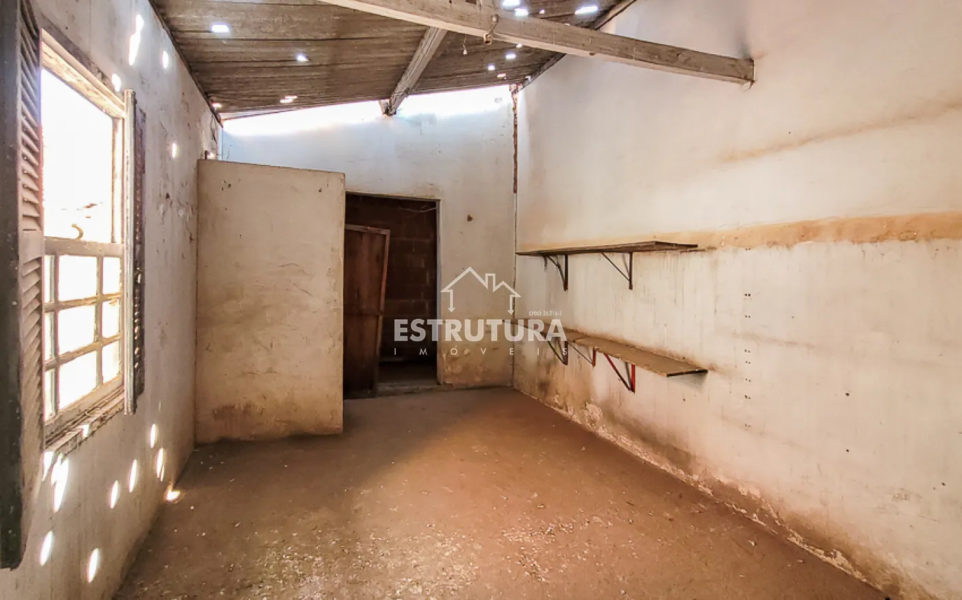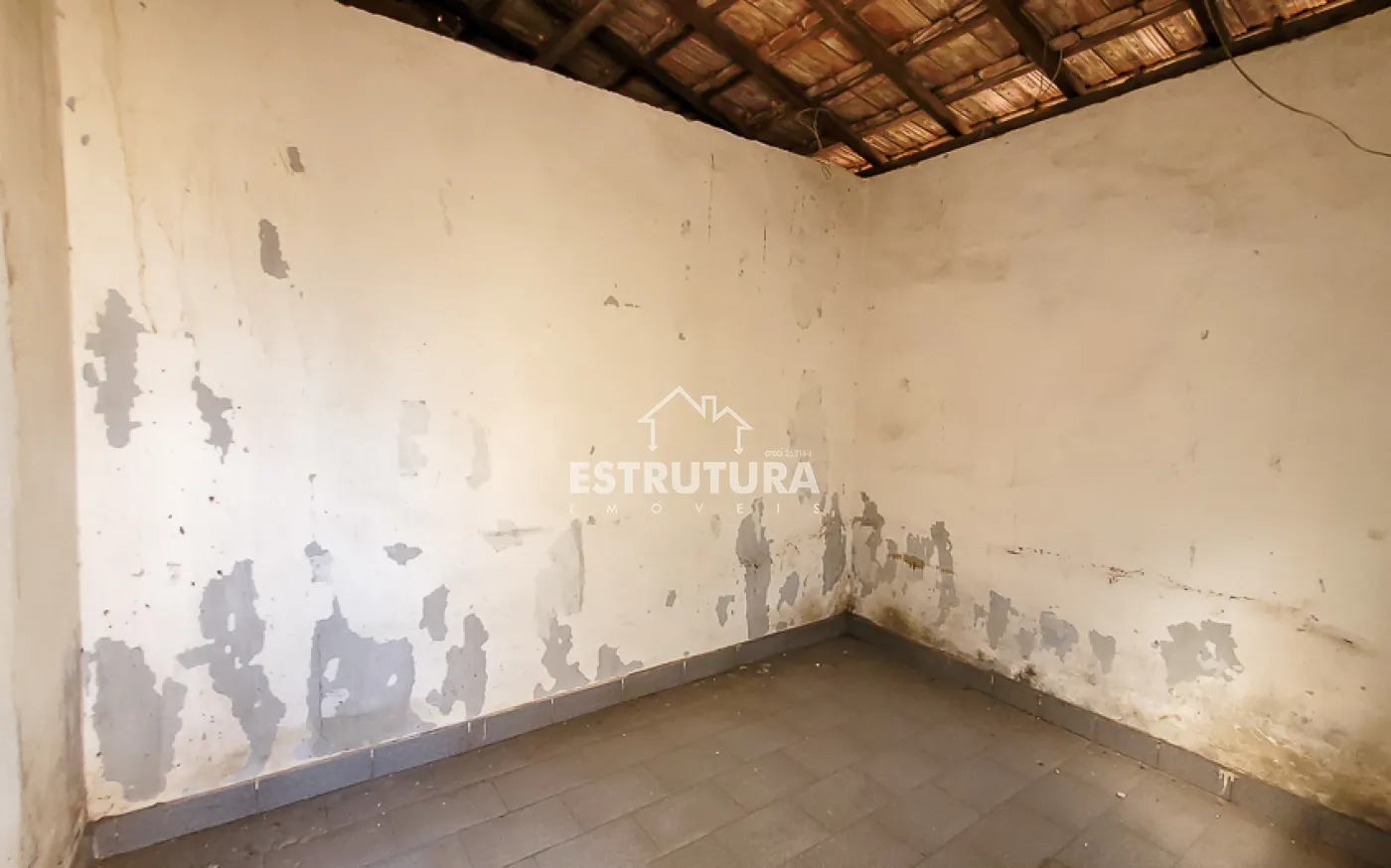 Garagem para 1 carro, sala, copa, cozinha, banheiro, quintal grande e um cômodo nos fundos.