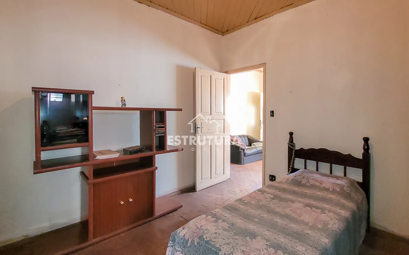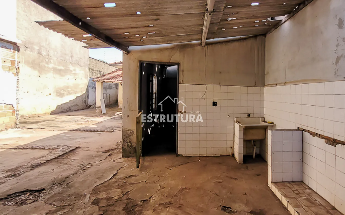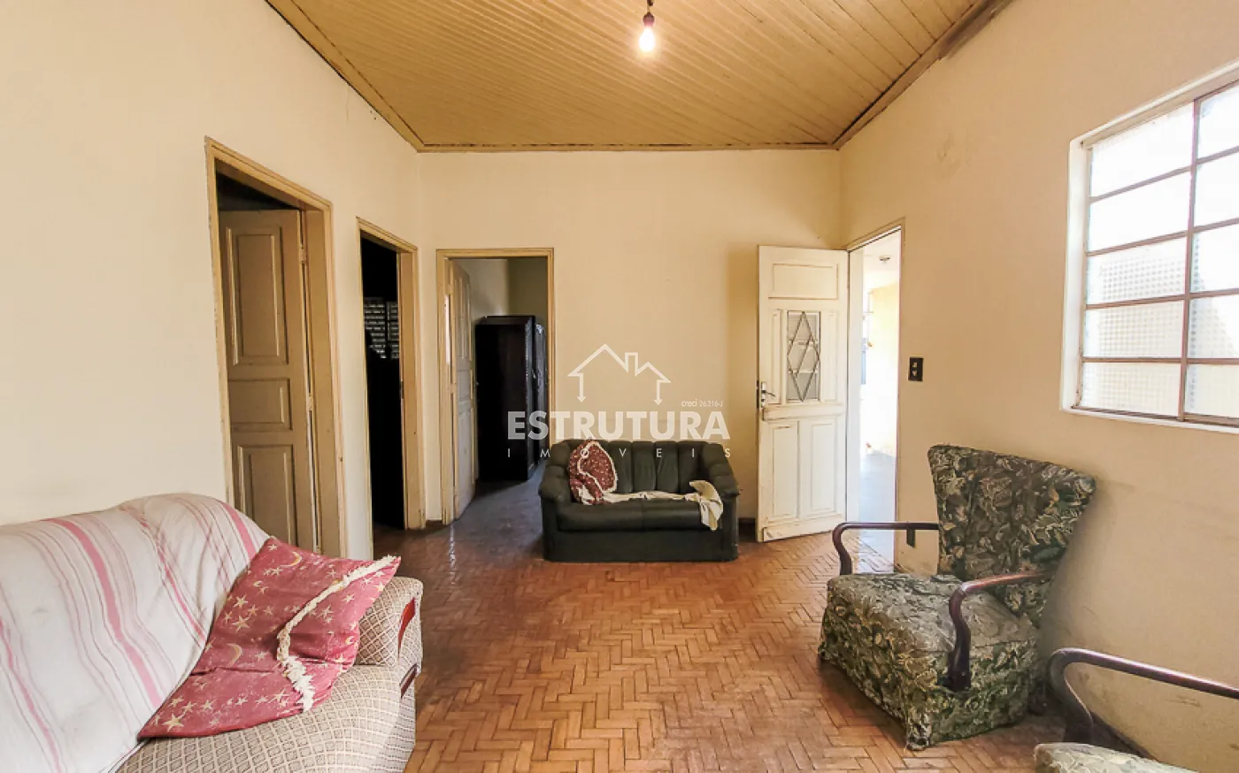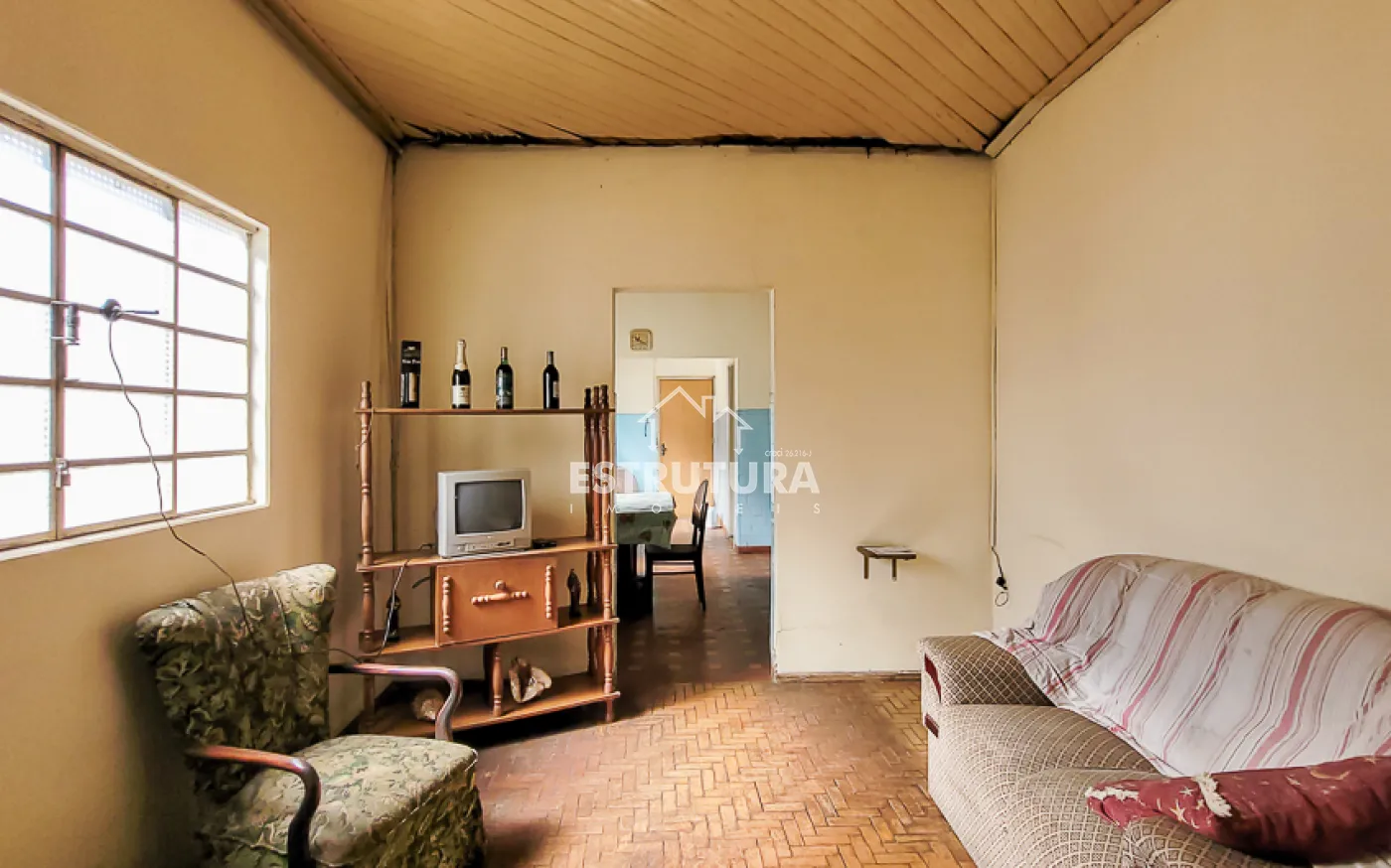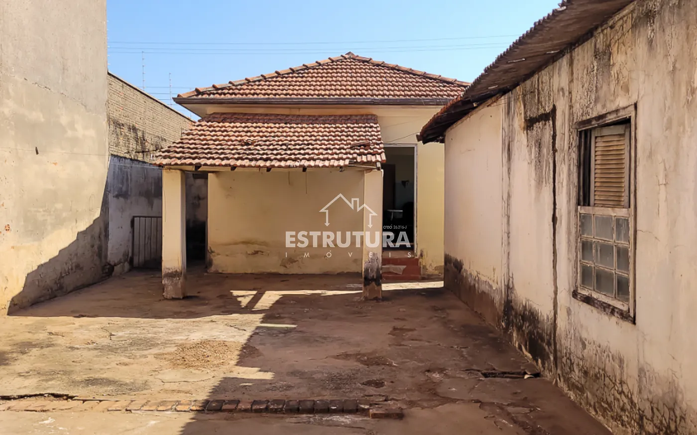 Garagem para 1 carro, sala, copa, cozinha, banheiro, quintal grande e um cômodo nos fundos.