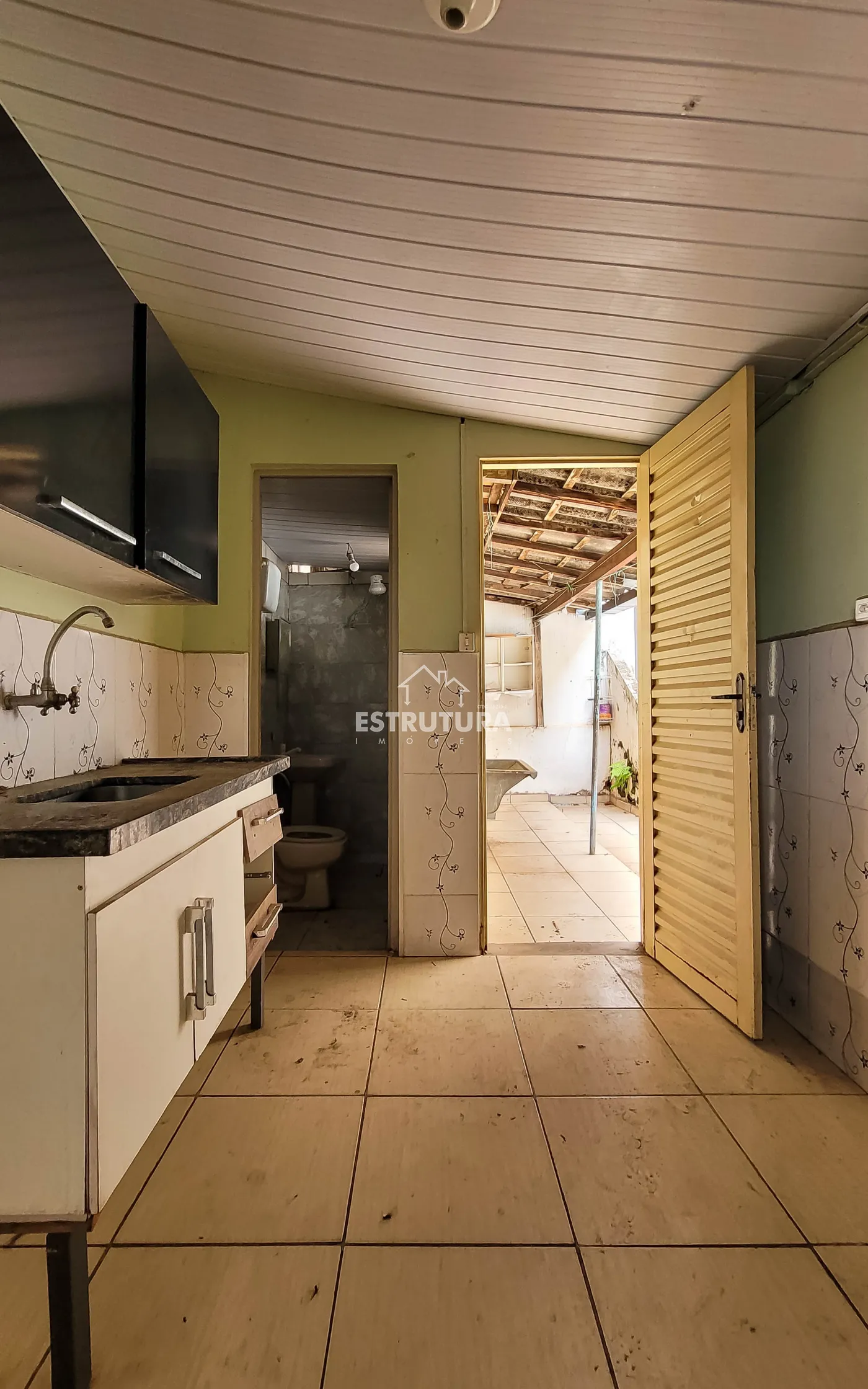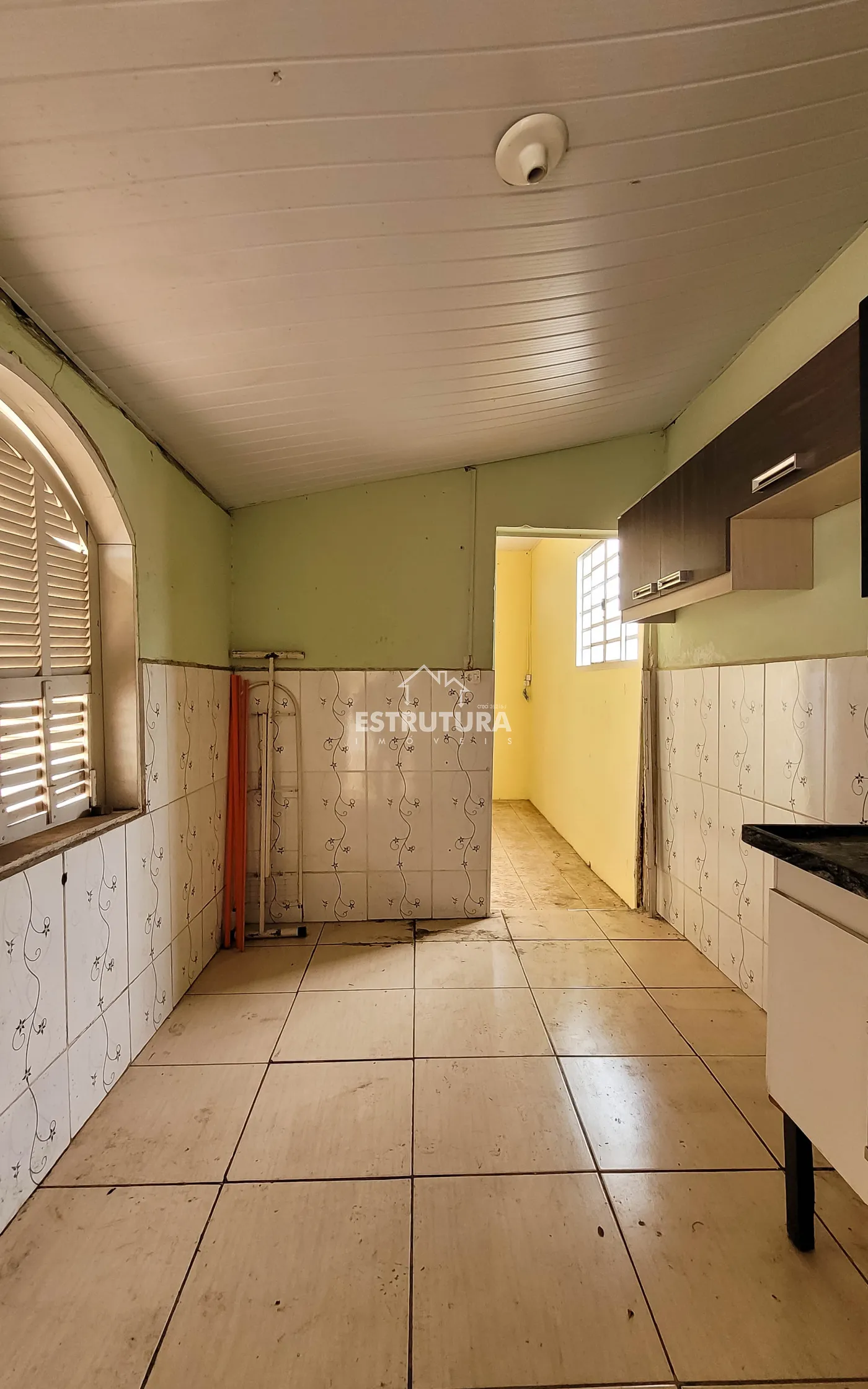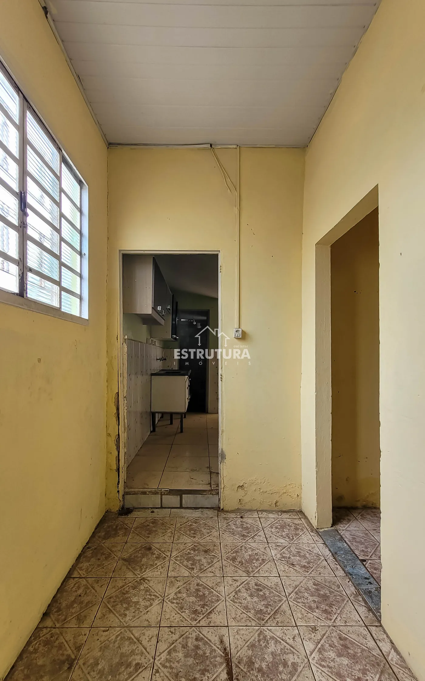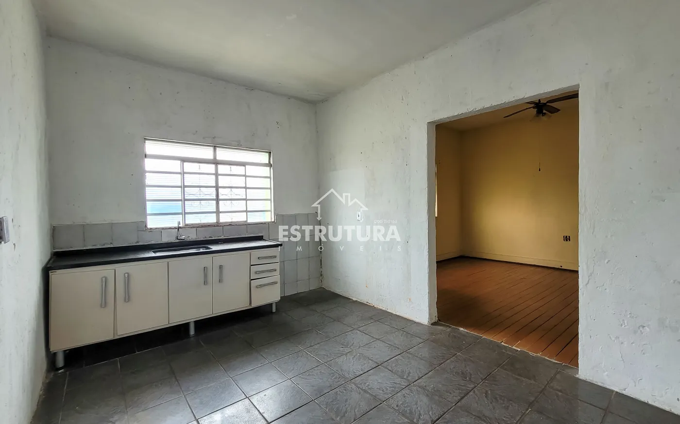Casa sem garagem, contendo 2 dormitórios, sala, cozinha, banheiro social e salão comercial.