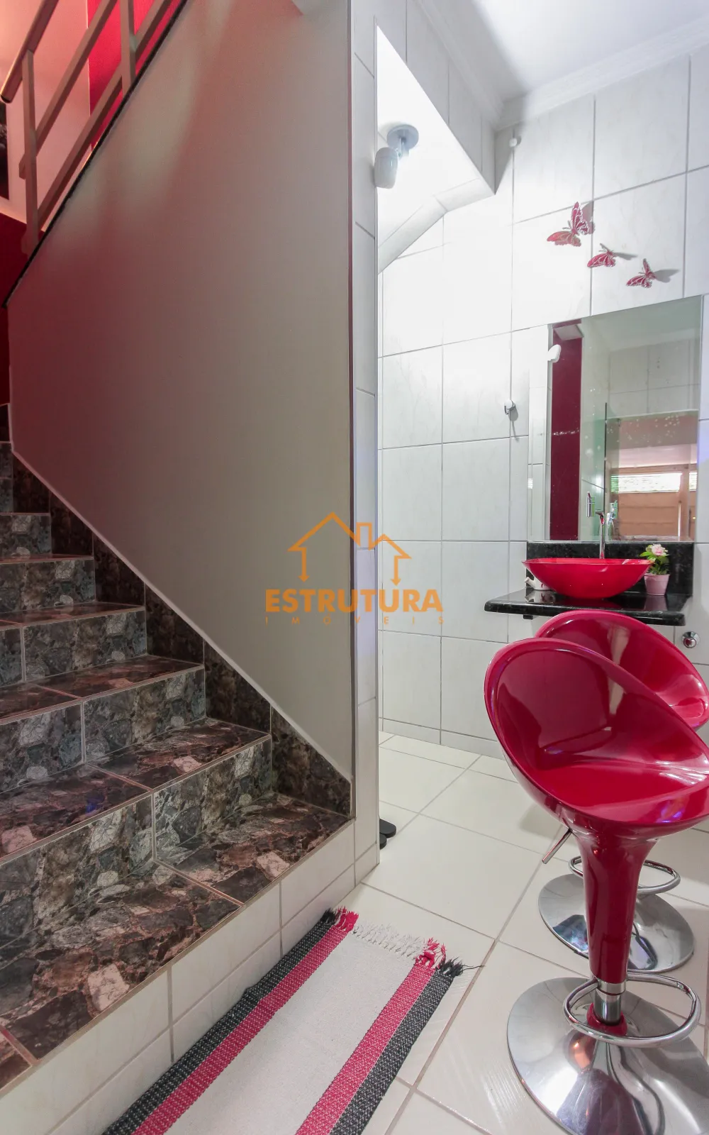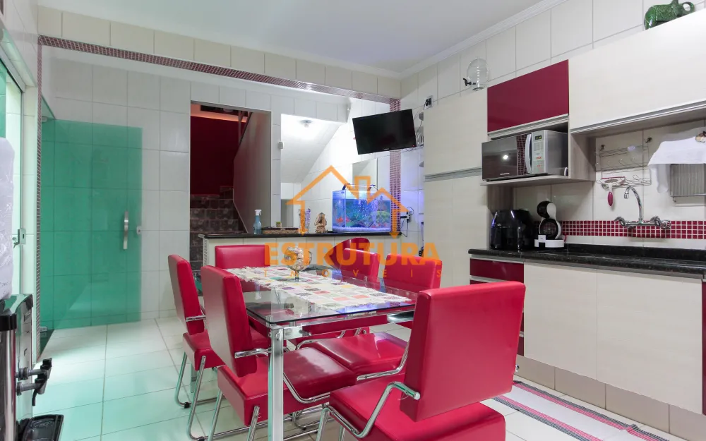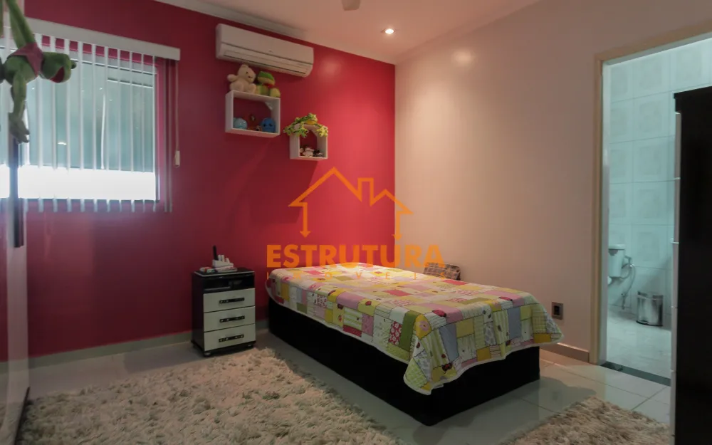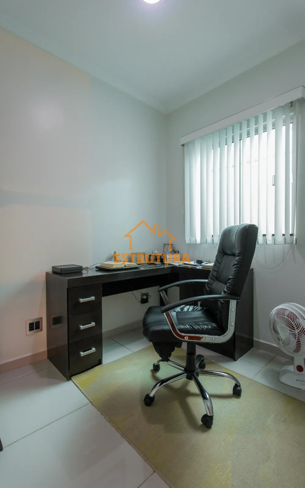 Casa contendo garagem coberta para 2 carros, area de luz, cozinha e sala de jantar integradas, sala de tv, escritório, 2 dormitórios sendo ambos suites, banheiro social, lavanderia, 3 quartos de despejo e entrada social.