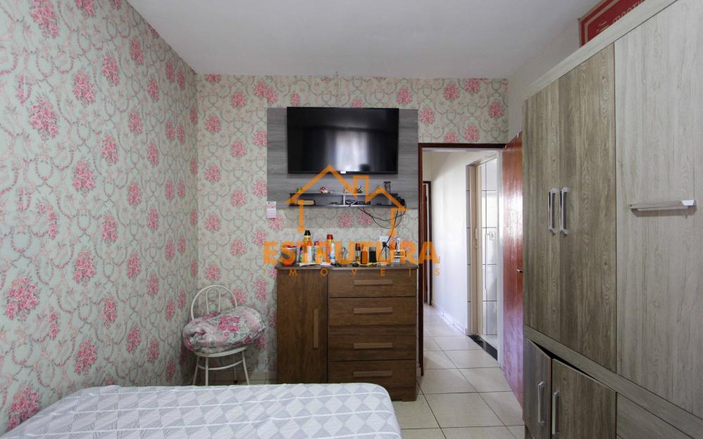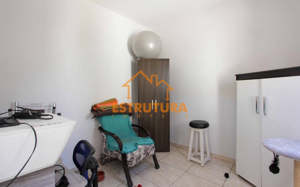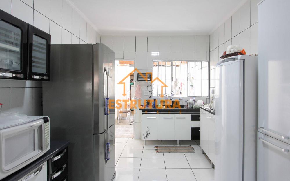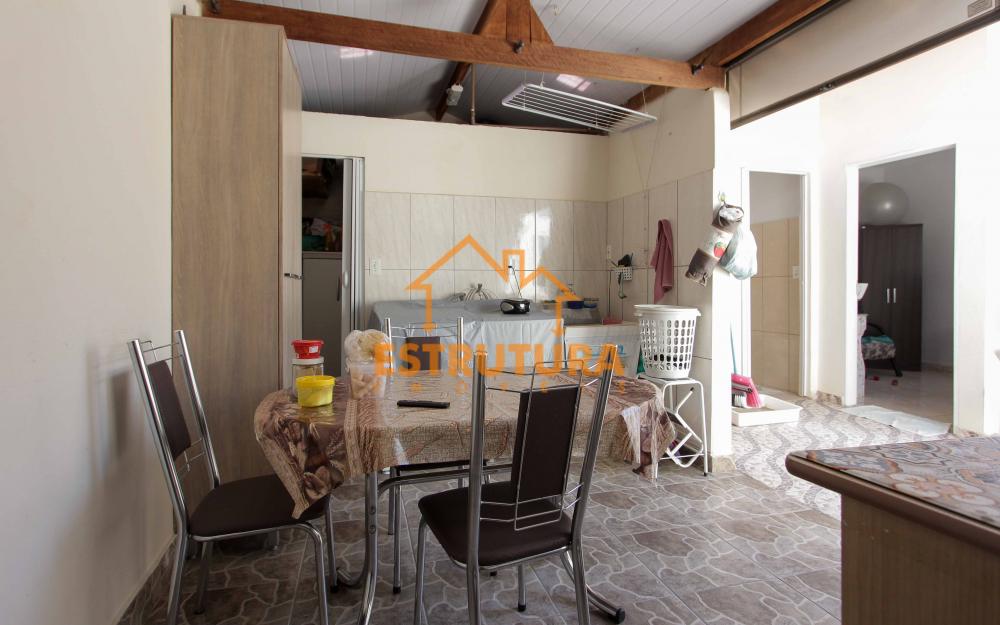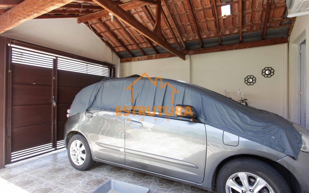 Garagem para 02 carros, sendo 01 coberto e 01 descoberto, sala de estar, 02 dormitórios, banheiro social, cozinha integrada com a sala, rancho com lavanderia, quarto despejo, banheiro externo e 01 quarto.