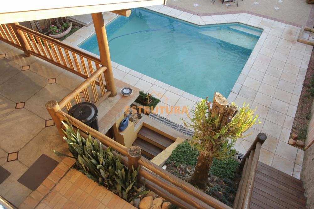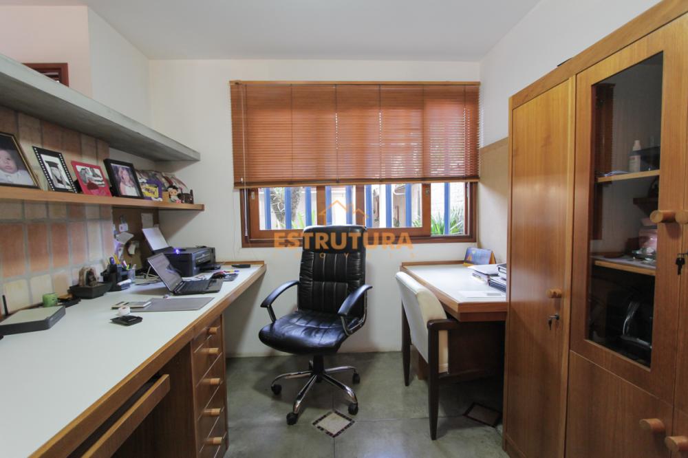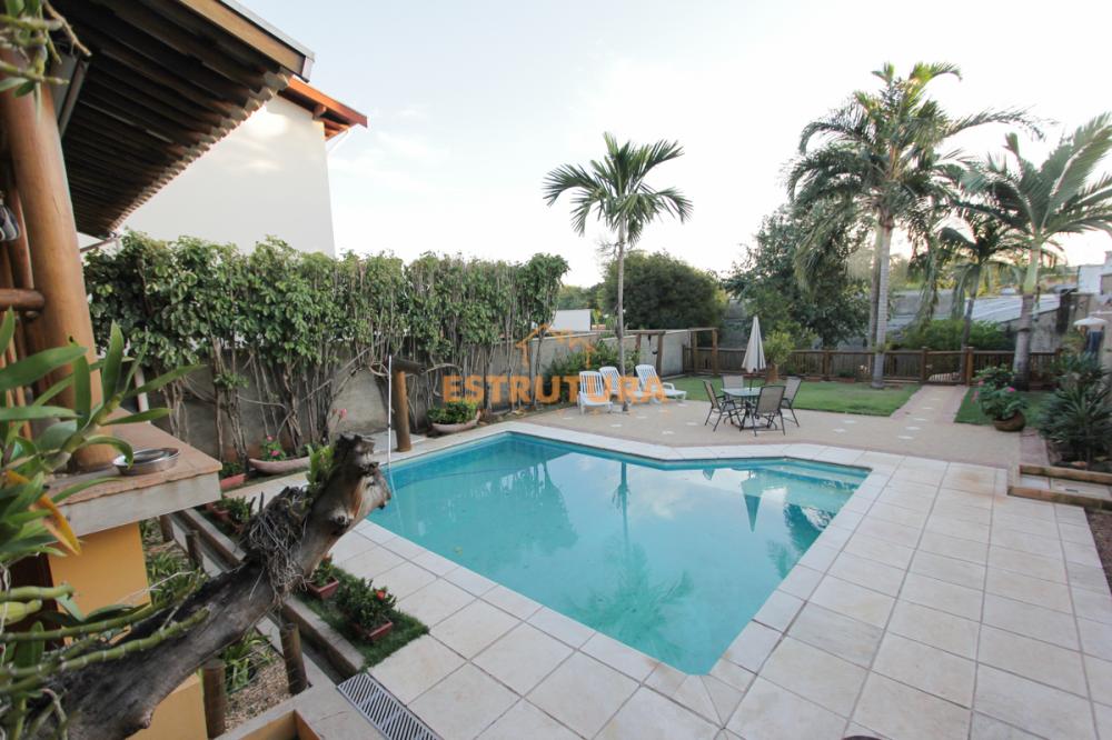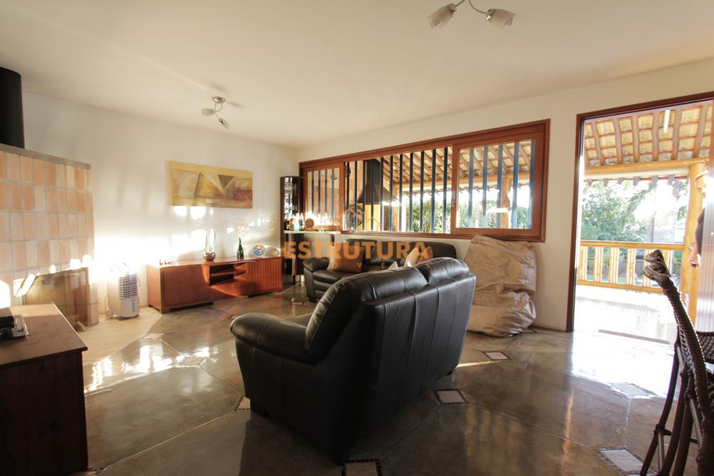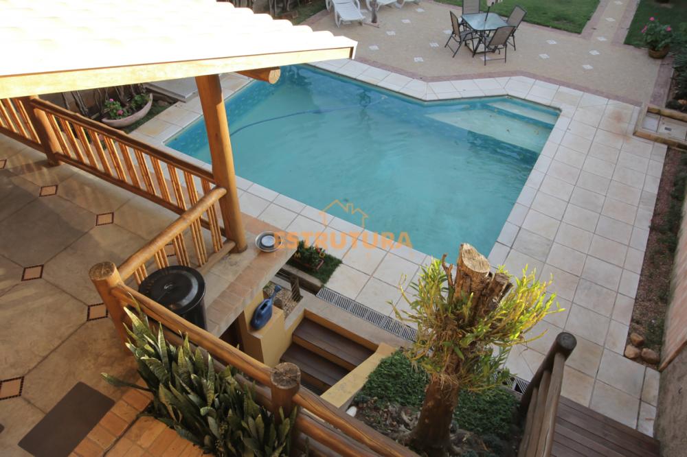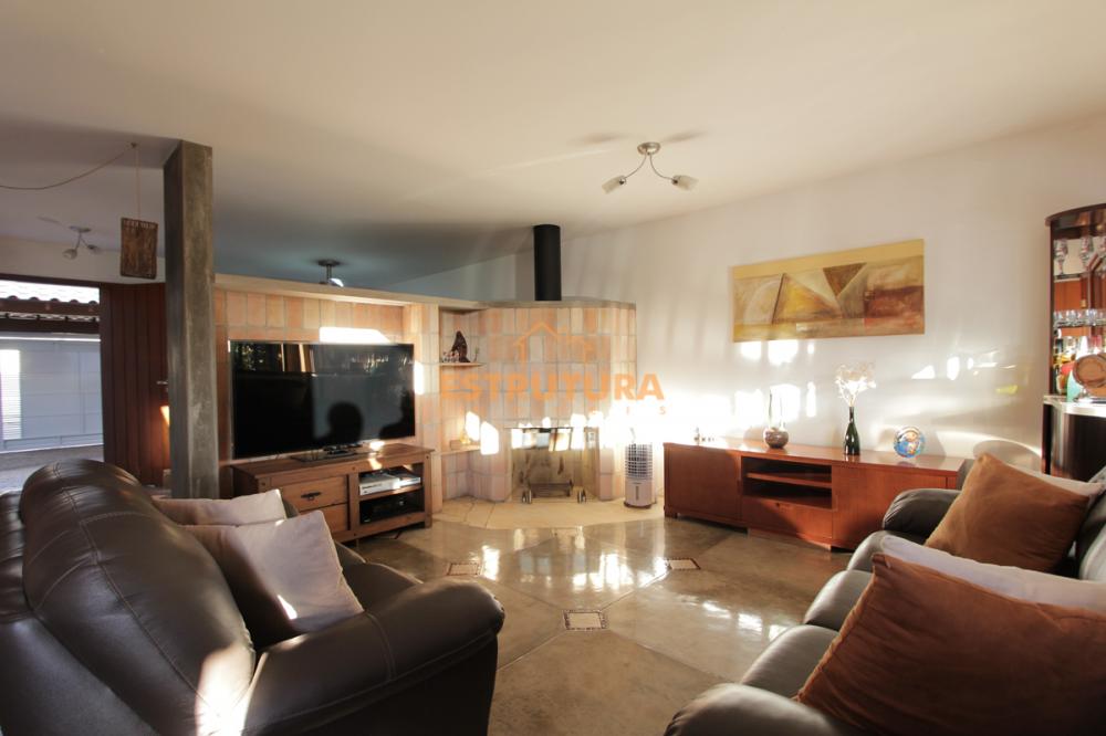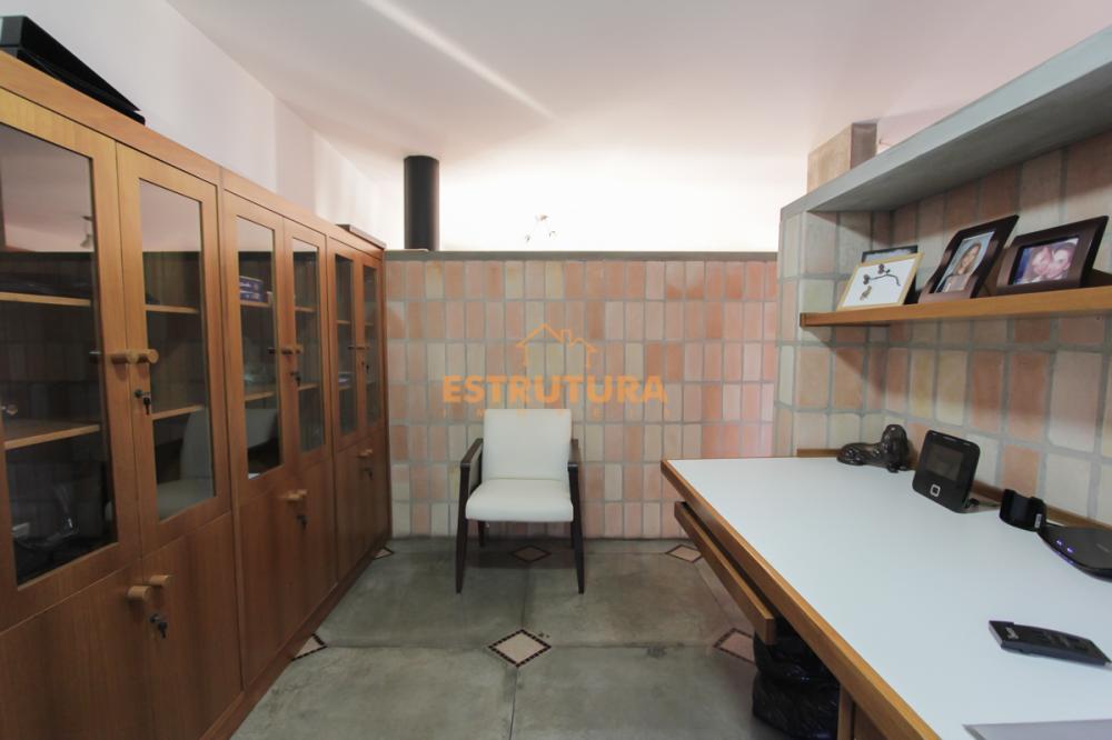 Piso térreo: Sala com lareira - Escritório - Cozinha integrada - Lavabo - Área de serviço - Banheiro lateral - Área gourmet - Garagem para 4 carros sendo 2 cobertas e 2 descobertas.