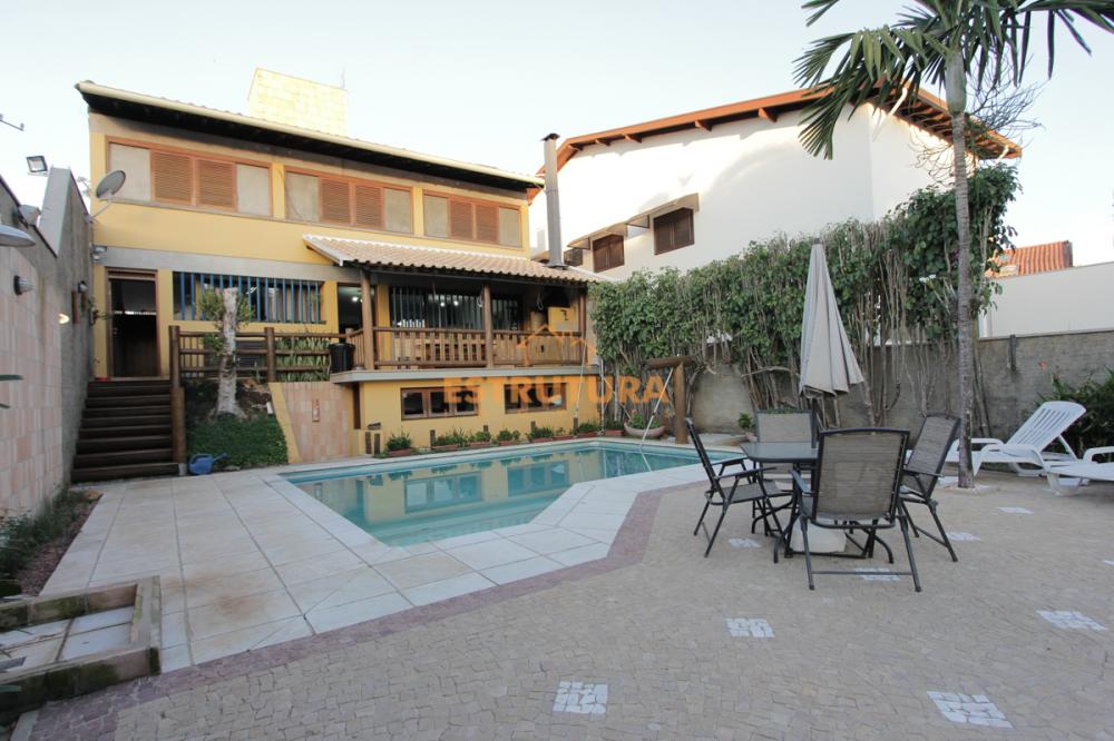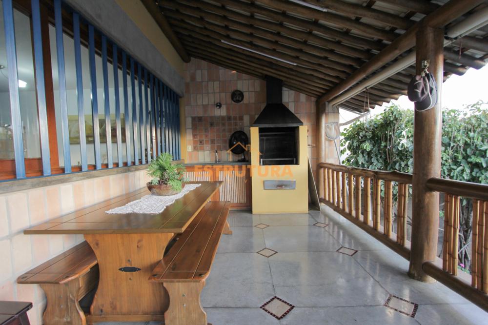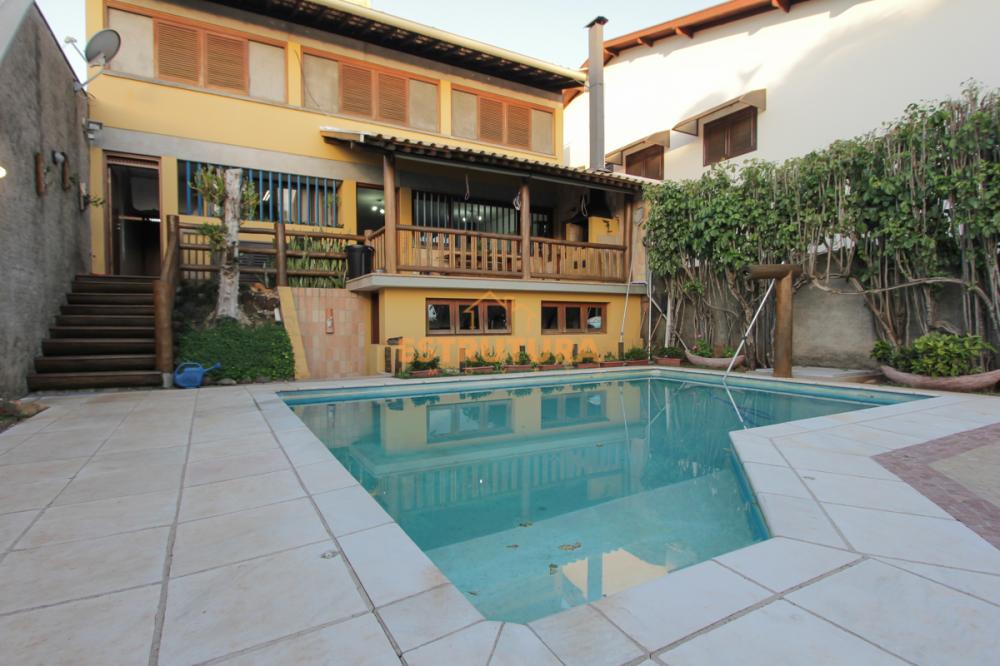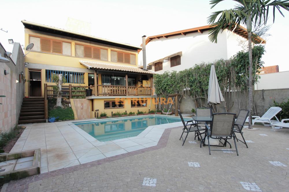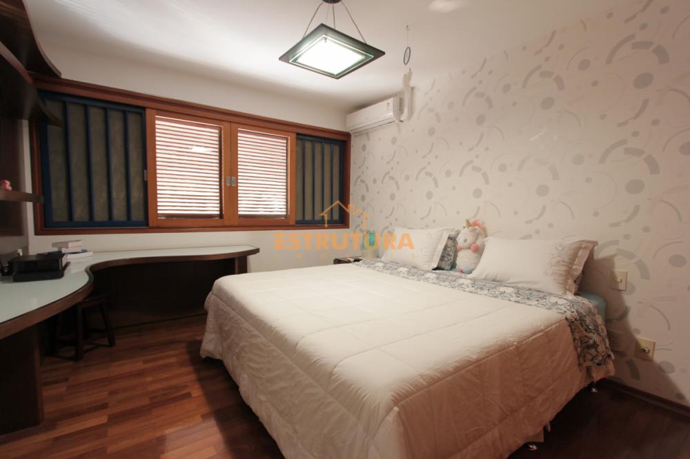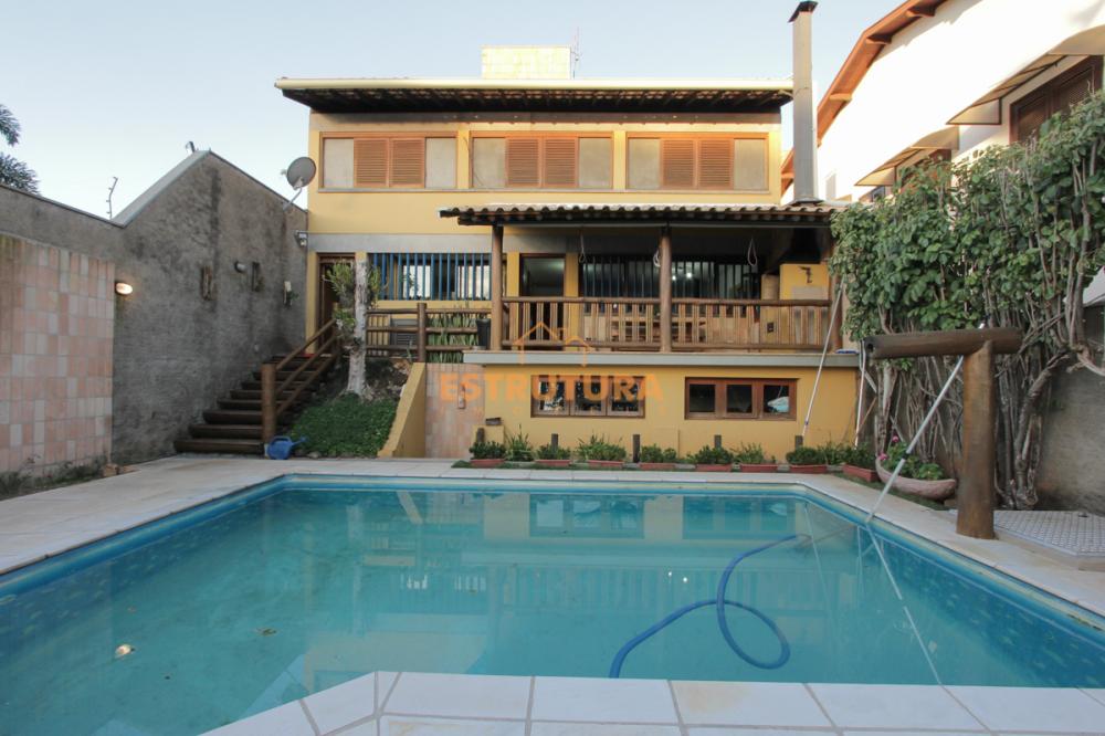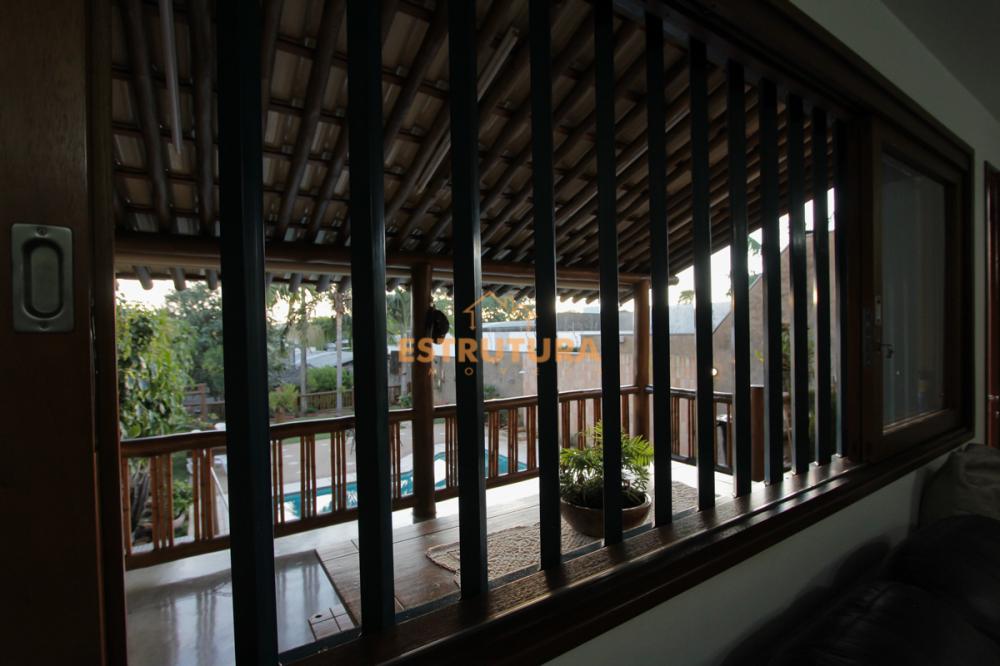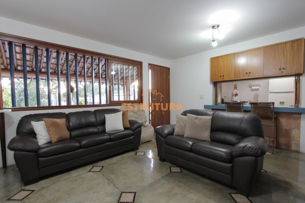 Piso térreo: Sala com lareira - Escritório - Cozinha integrada - Lavabo - Área de serviço - Banheiro lateral - Área gourmet - Garagem para 4 carros sendo 2 cobertas e 2 descobertas.