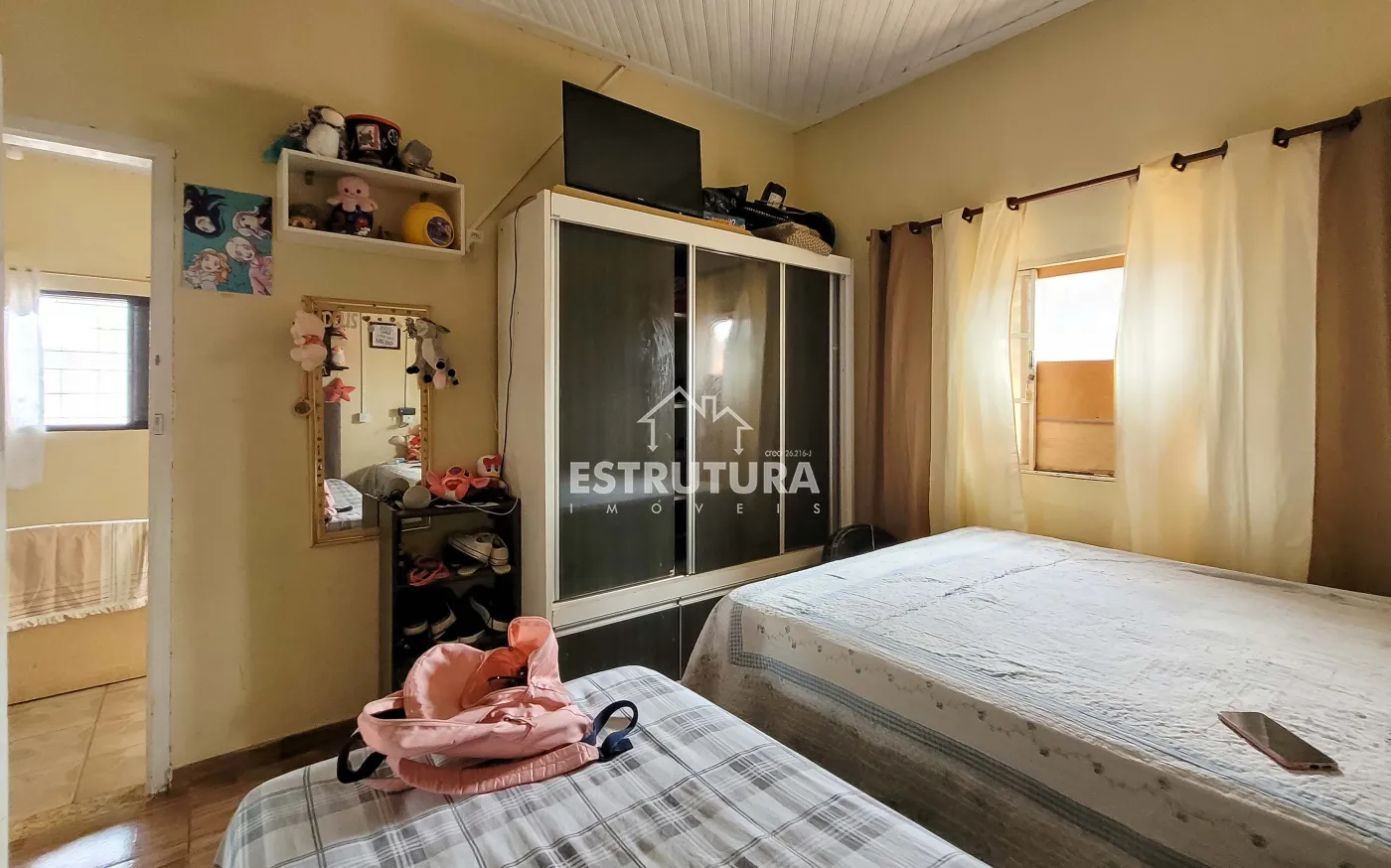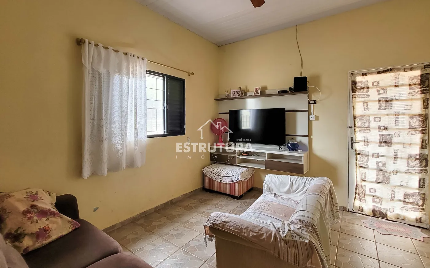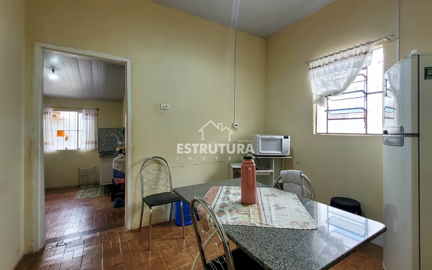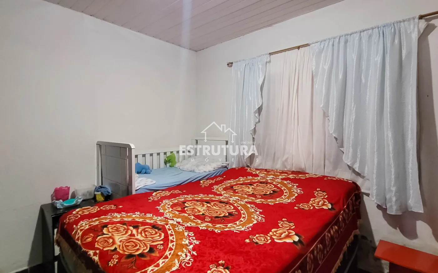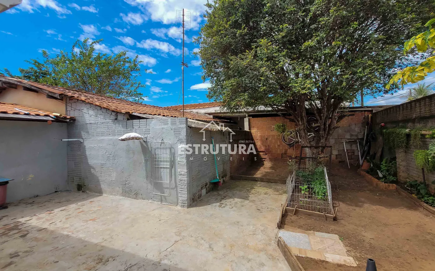 1º Casa: com uma construção de 46 metros² com 2 quartos, sala, cozinha, banhiero, bem simples com pequeno quintal.