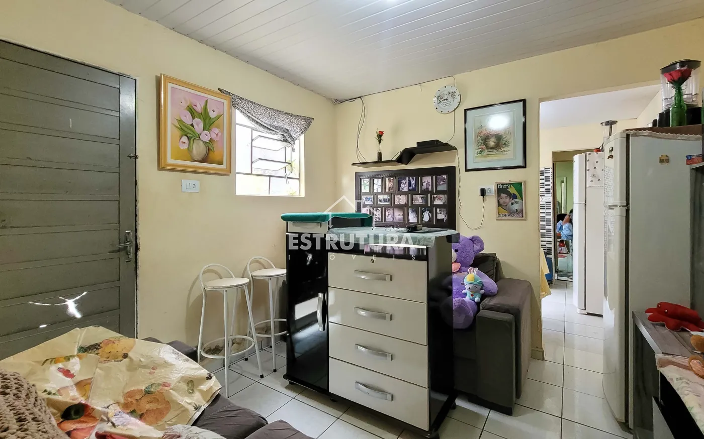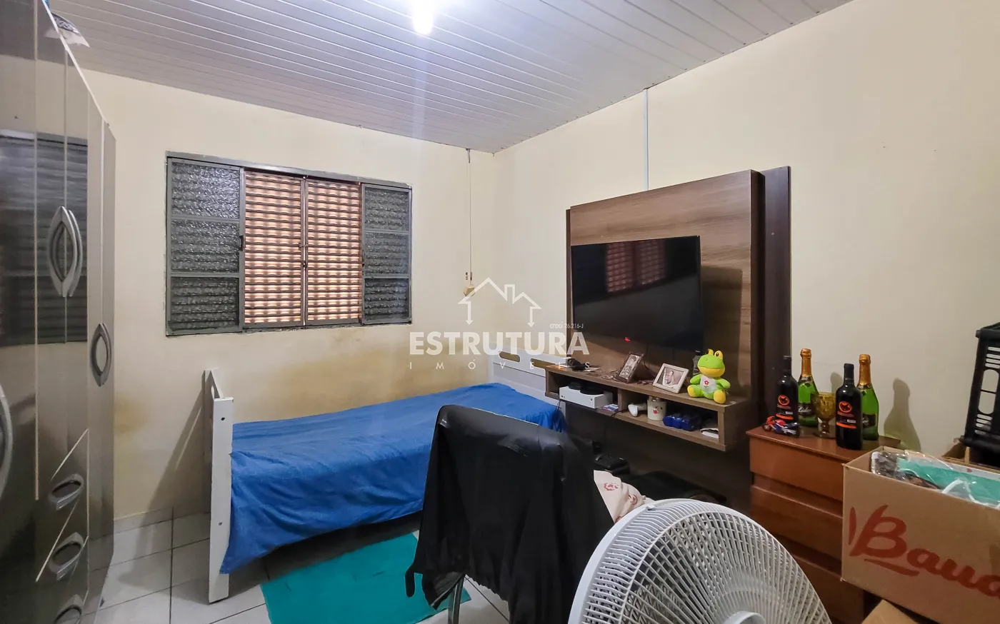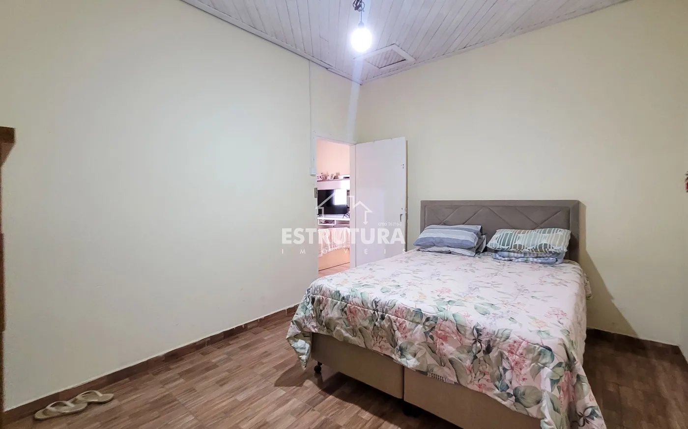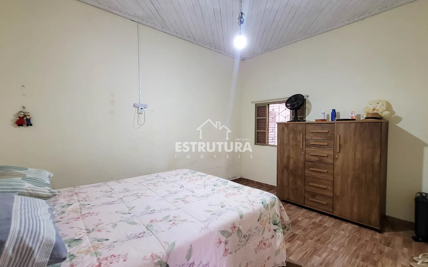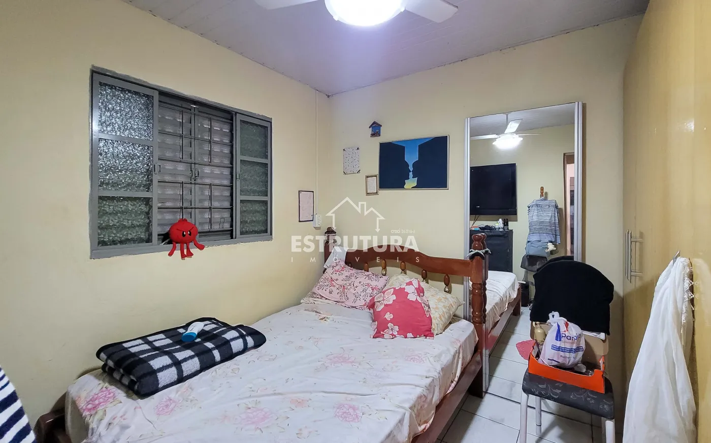 1º Casa: com uma construção de 46 metros² com 2 quartos, sala, cozinha, banhiero, bem simples com pequeno quintal.