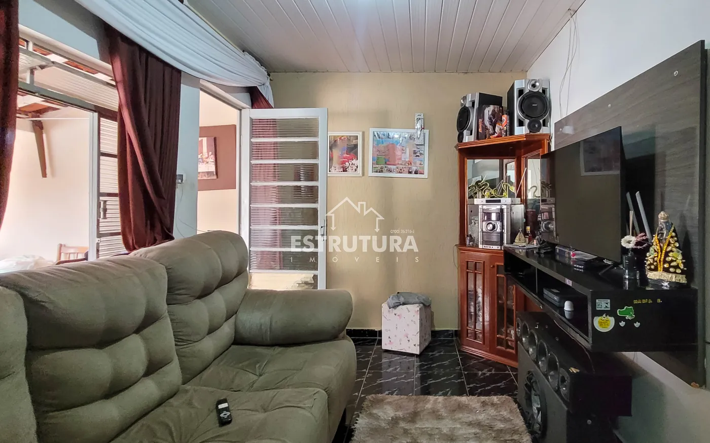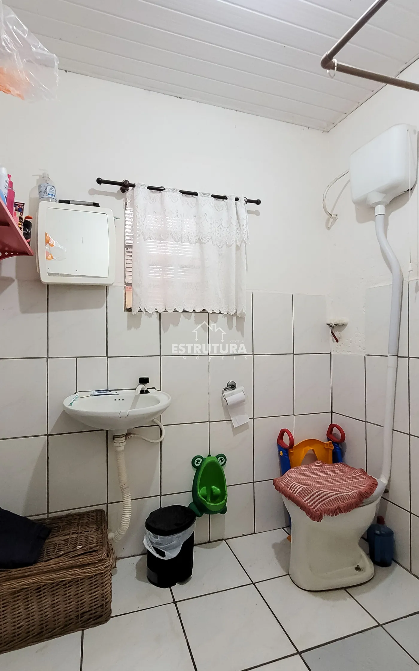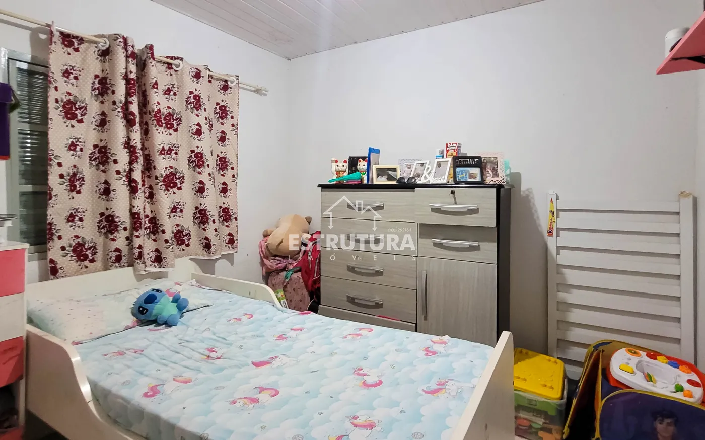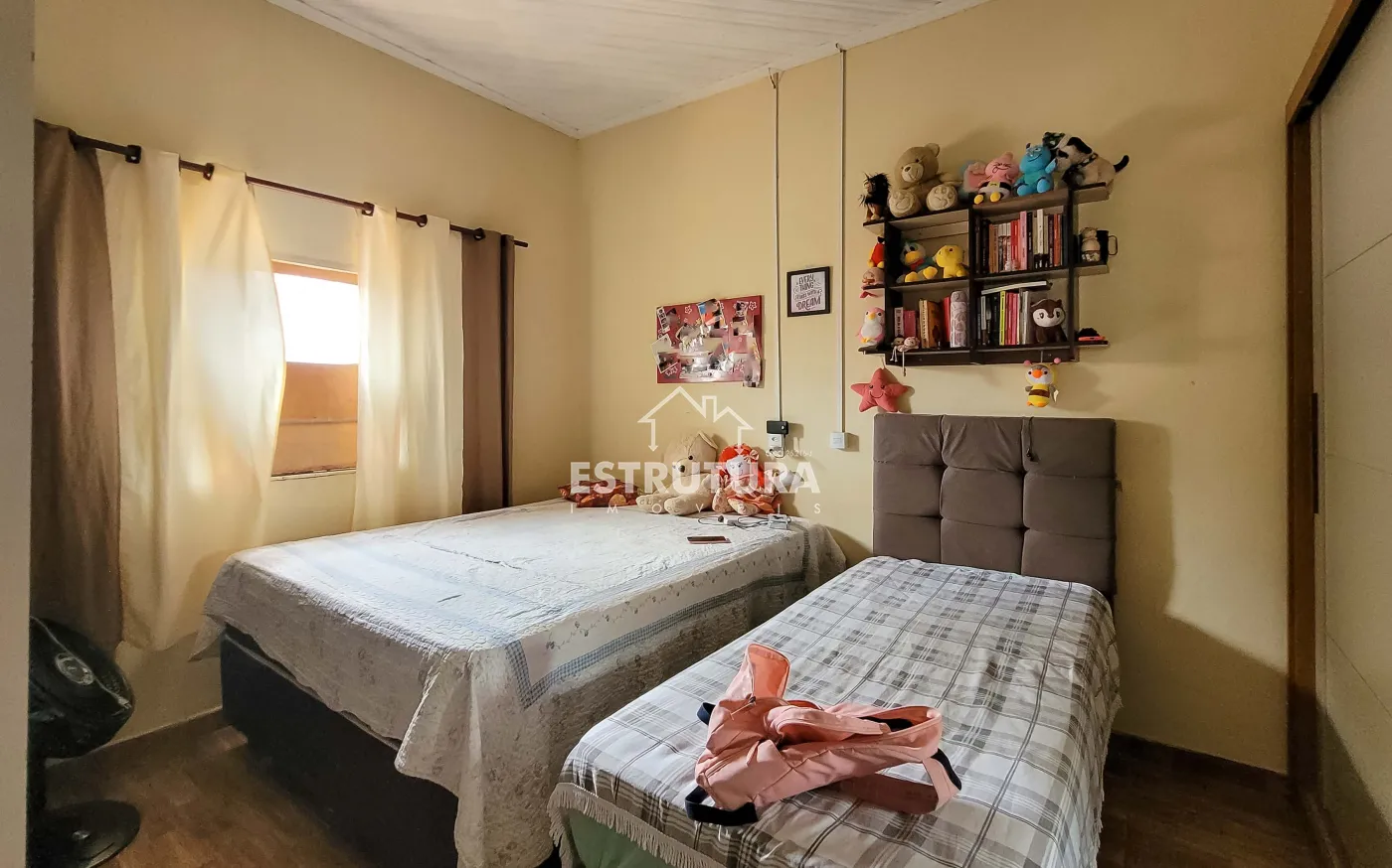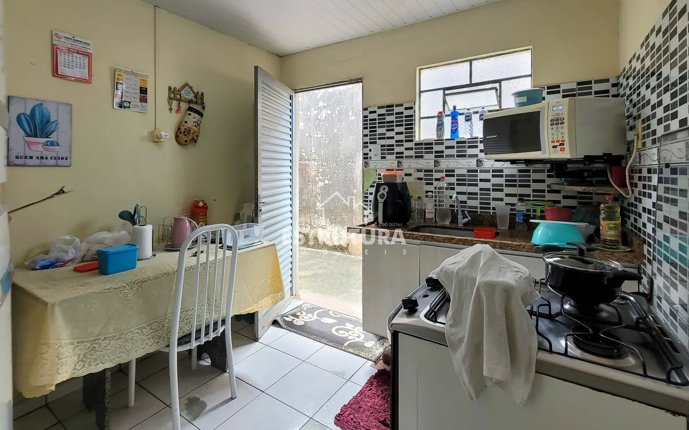 1º Casa: com uma construção de 46 metros² com 2 quartos, sala, cozinha, banhiero, bem simples com pequeno quintal.