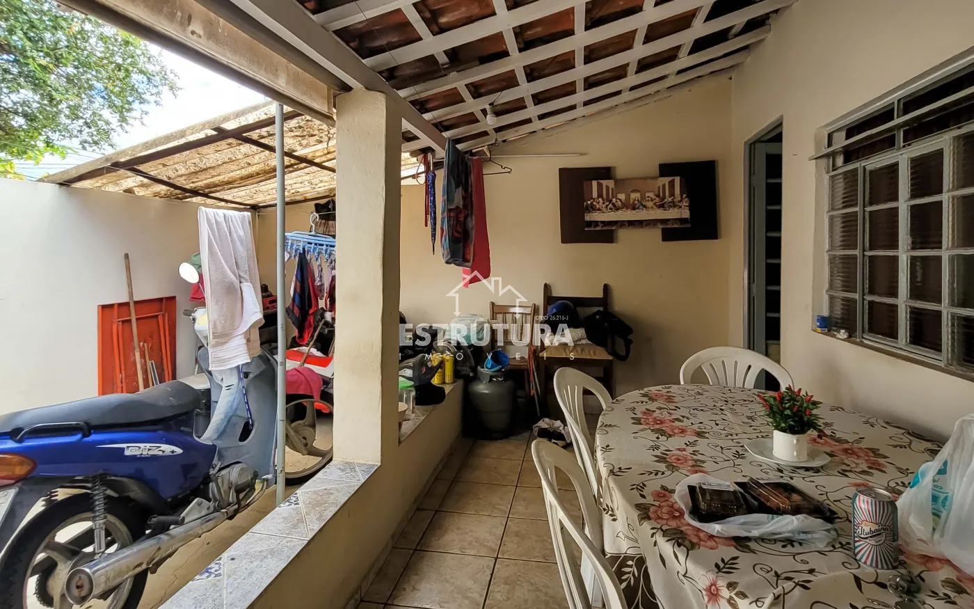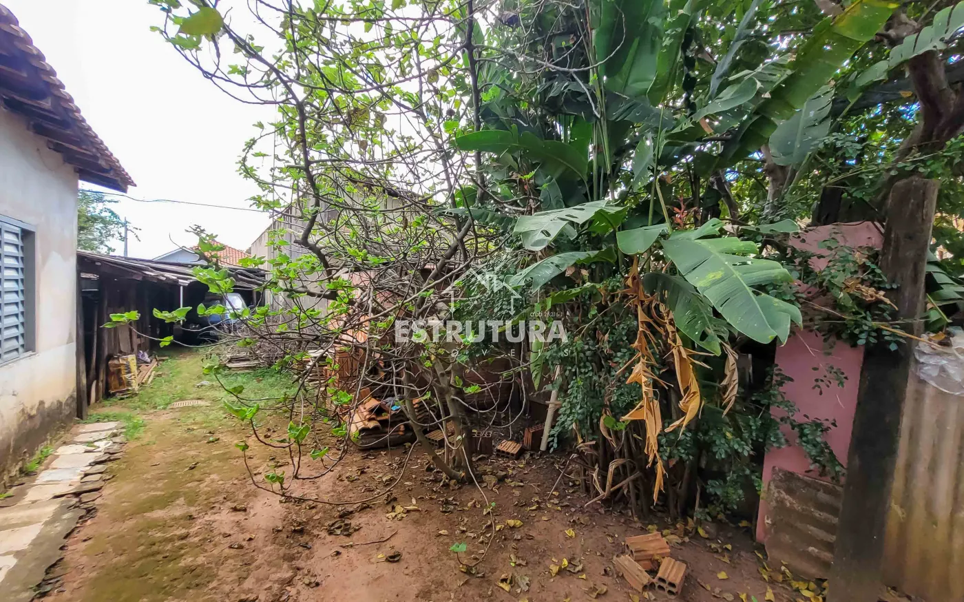 2º Casa: Casa de Frente com 2 quartos grandes, Sala, Cozinha, Banheiro Social, garagem para 2ou 3 carros e grande quintal com árvores.