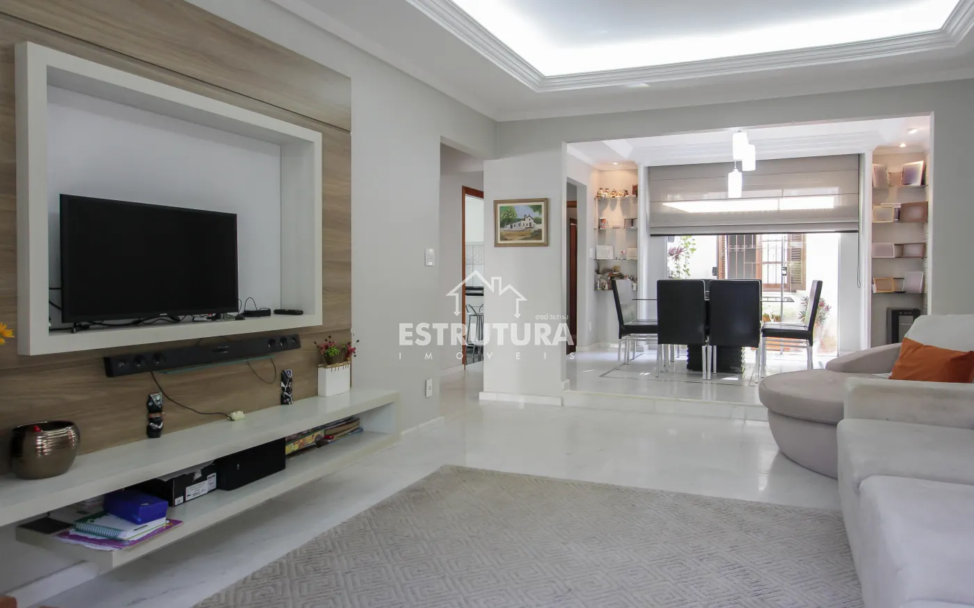 Encantadora residência em uma localização altamente desejável! Esta deslumbrante propriedade exibe um acabamento de alta qualidade, proporcionando um ambiente luxuoso e acolhedor. Com capacidade para abrigar até cinco veículos, esta residência oferece praticidade e conforto para sua família. Com quatro espaçosos dormitórios, incluindo uma suíte, todos equipados com armários embutidos. As duas salas generosas proporcionam espaços ideais para entretenimento e relaxamento, enquanto a sala de jantar, iluminada por uma área de luz natural, oferece um ambiente encantador. Além disso, a residência conta com um lavabo e um banheiro social. A cozinha é equipada com armários, e a área gourmet completa é perfeita para momentos de convívio. Além disso possui um dormitório e banheiro adicionais ao fundo. Amplo jardim e uma piscina espaçosa também estão inclusos.