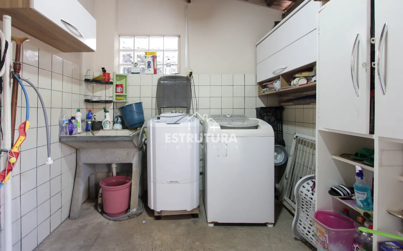 A casa principal apresenta uma acolhedora sala de TV, 2 quartos espaçosos, banheiro social, cozinha integrada à sala de jantar, área de serviço e um prático quarto de despejo.