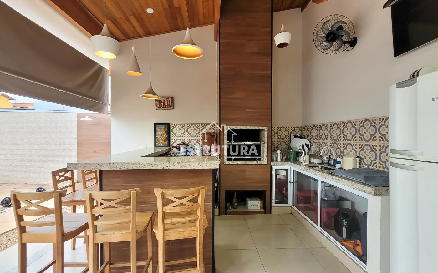 Na área externa, o imóvel oferece quintal amplo, canil e uma edícula completa, composta por 1 dormitório, lavanderia e um excelente espaço gourmet com banheiro, ideal para momentos de lazer e confraternização.