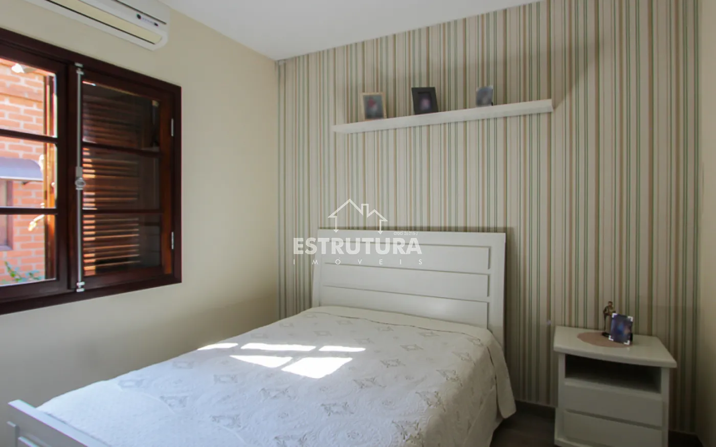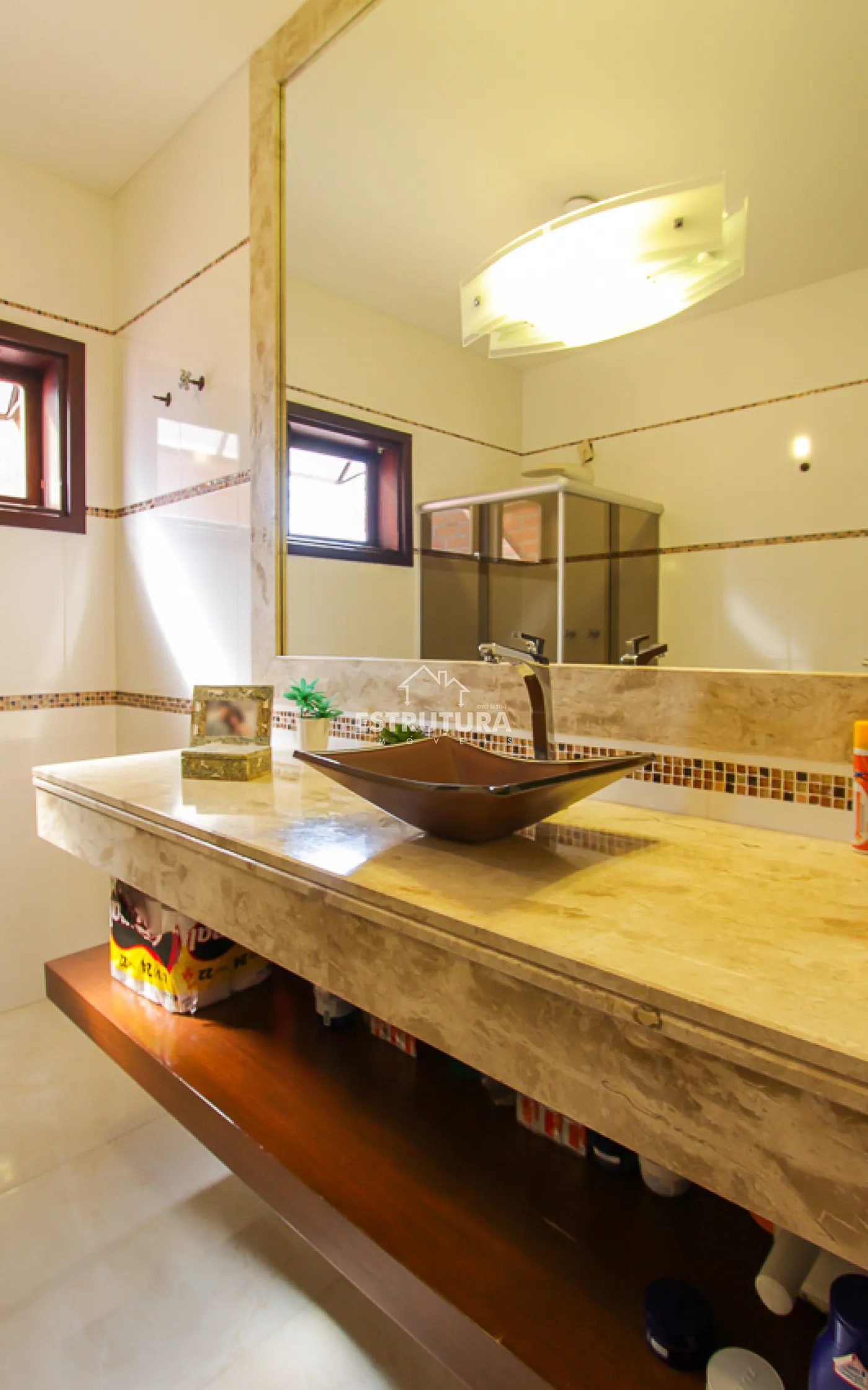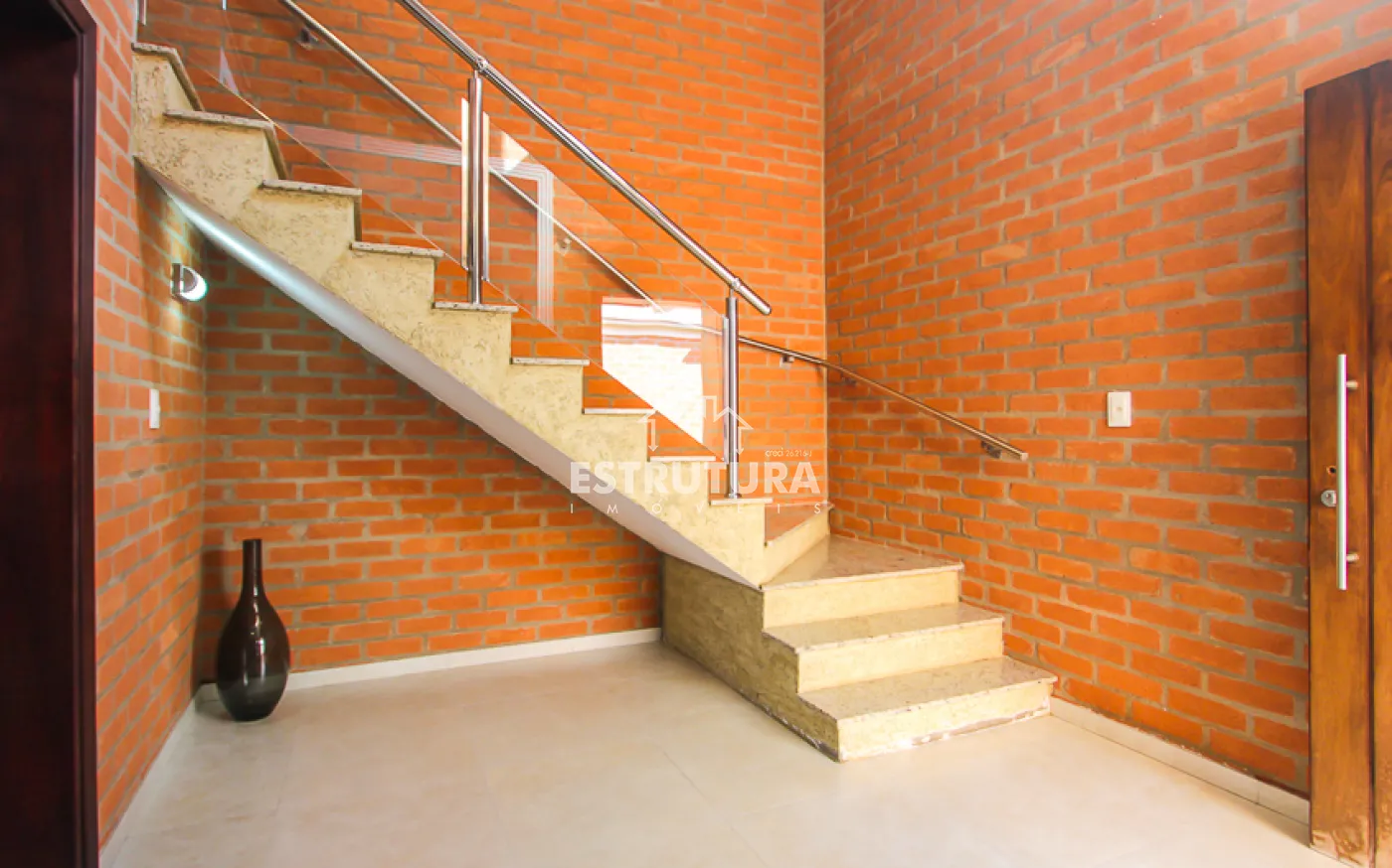 Casa assobradada com garagem Para dois carros, com sala de tv, cozinha planejada, Lavabo, área gourmet, piscina com hidro, deposito para guardar equipamentos, na área superior, contém uma sala de TV com espaço game, 3 dormitórios sendo 1 suíte, todos com ar condicionado e 1 banheiro social, quartos avarandados com vista para piscina