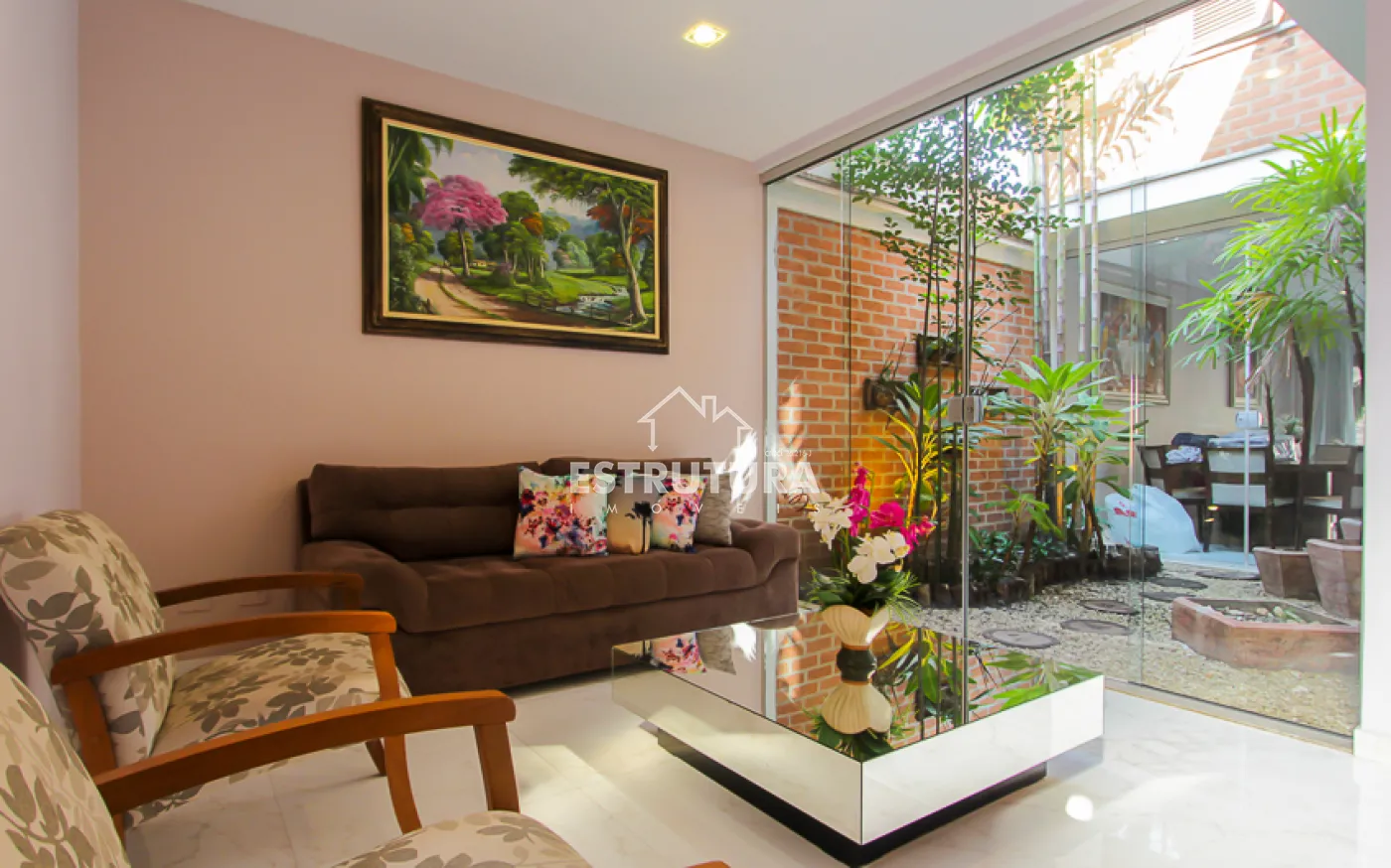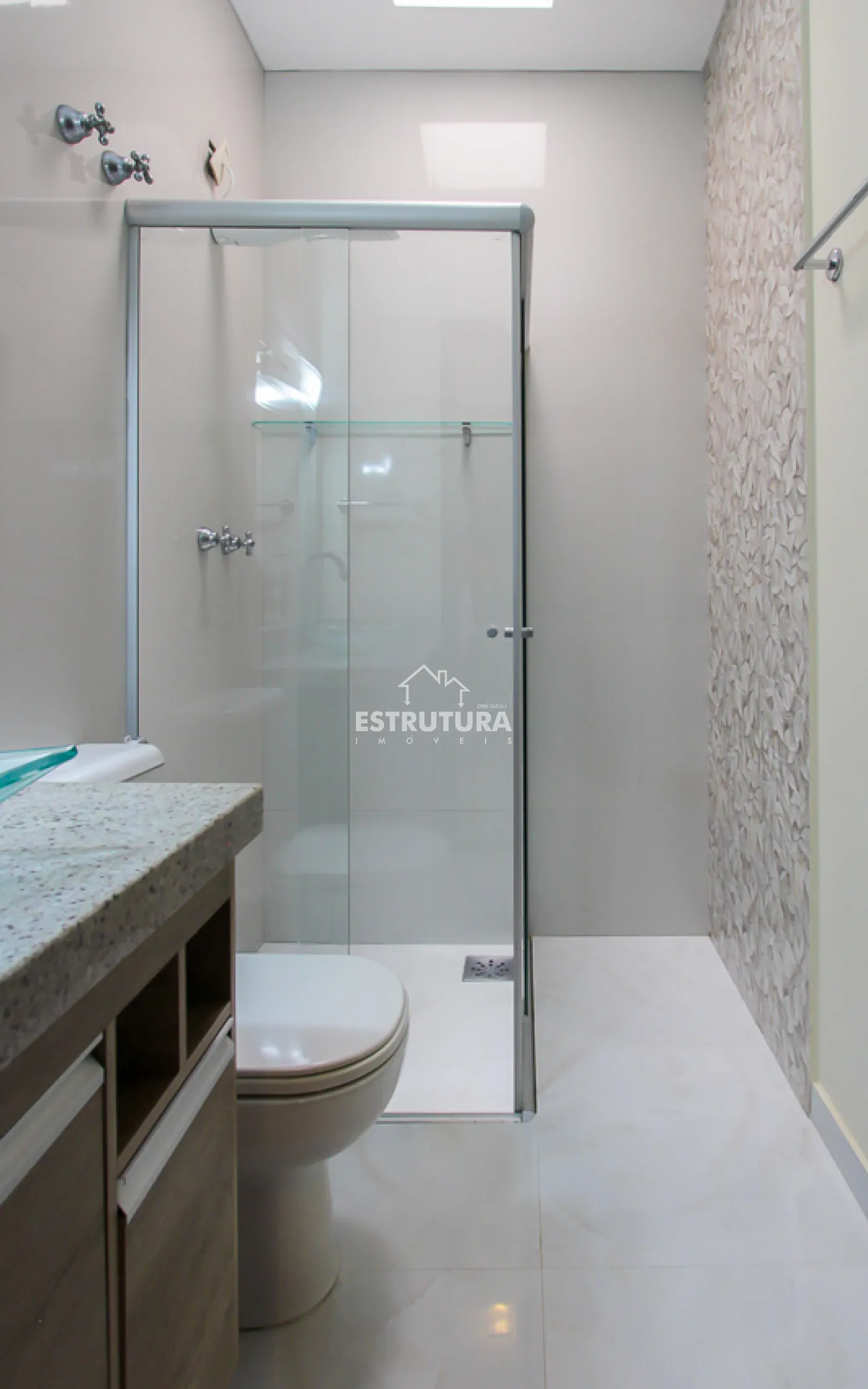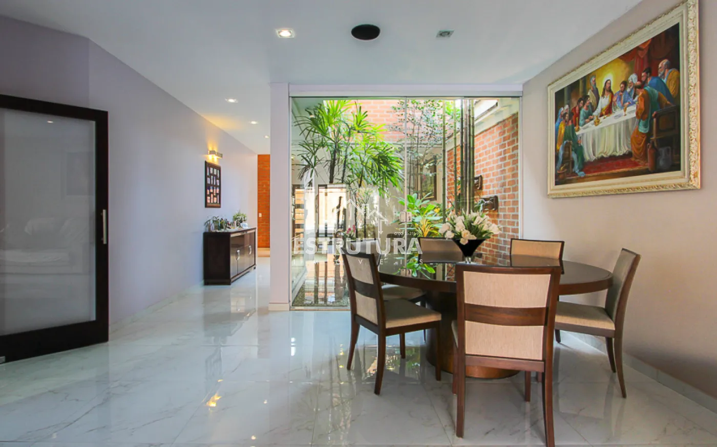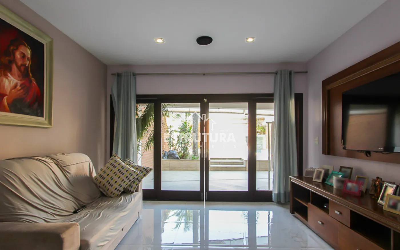 Casa assobradada com garagem Para dois carros, com sala de tv, cozinha planejada, Lavabo, área gourmet, piscina com hidro, deposito para guardar equipamentos, na área superior, contém uma sala de TV com espaço game, 3 dormitórios sendo 1 suíte, todos com ar condicionado e 1 banheiro social, quartos avarandados com vista para piscina