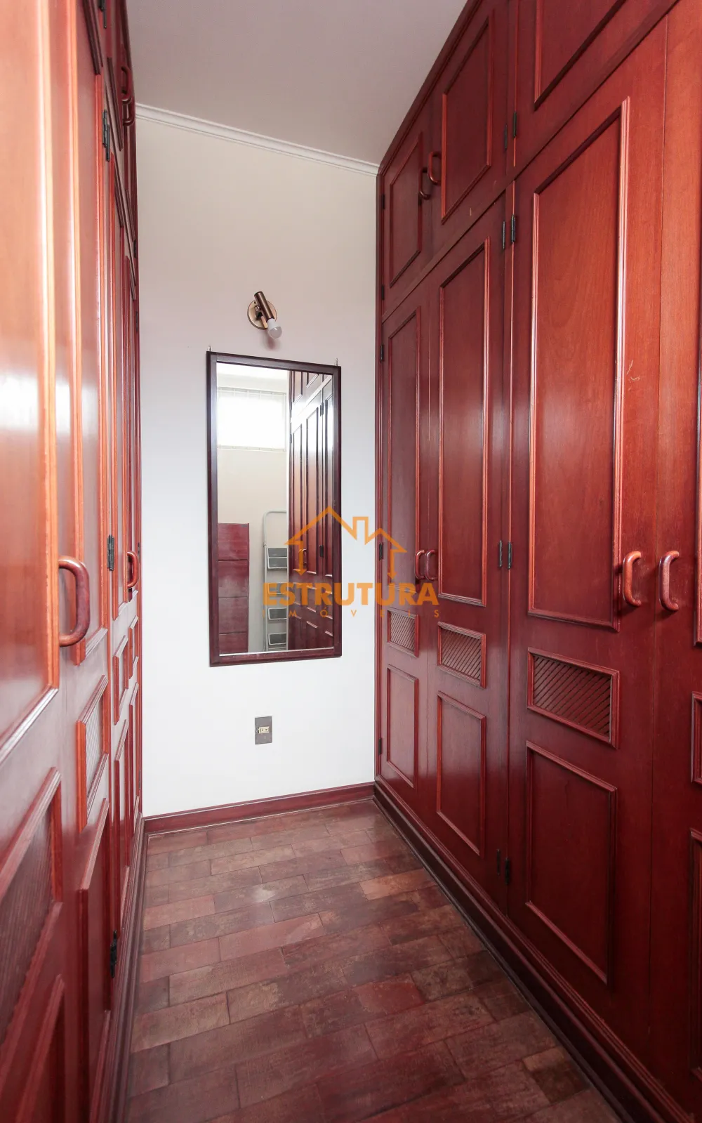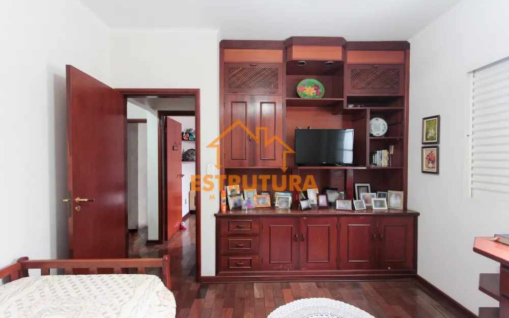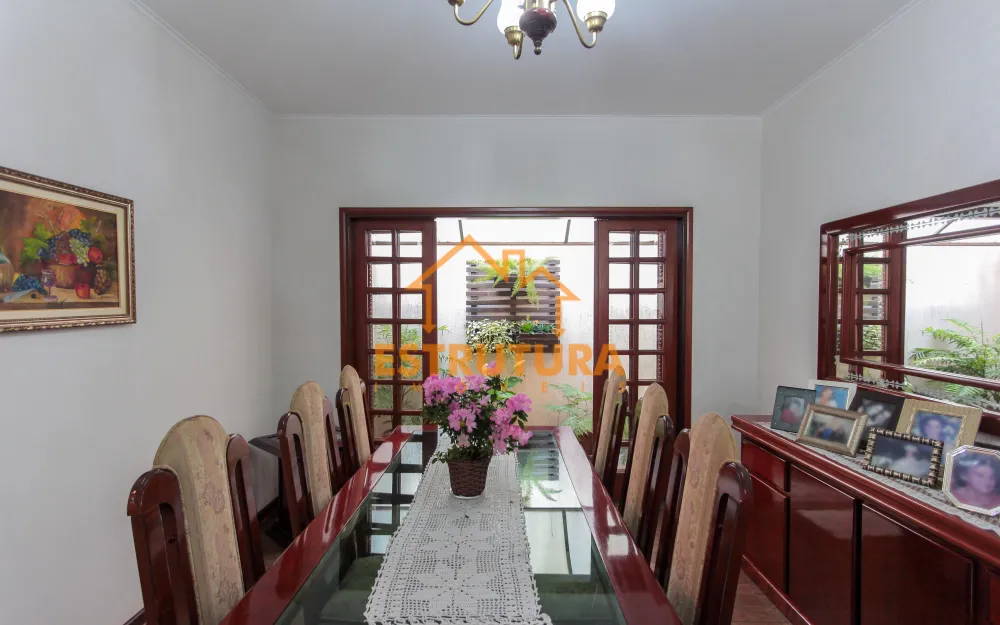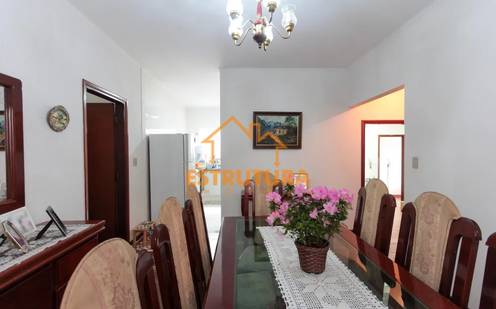 A disposição dos cômodos: uma sala de visita e sala de TV separadas da sala de jantar, oferecendo diferentes espaços para receber visitas ou para momentos de relaxamento. Os 03 dormitórios planejados em madeira, sendo um suíte com closet.