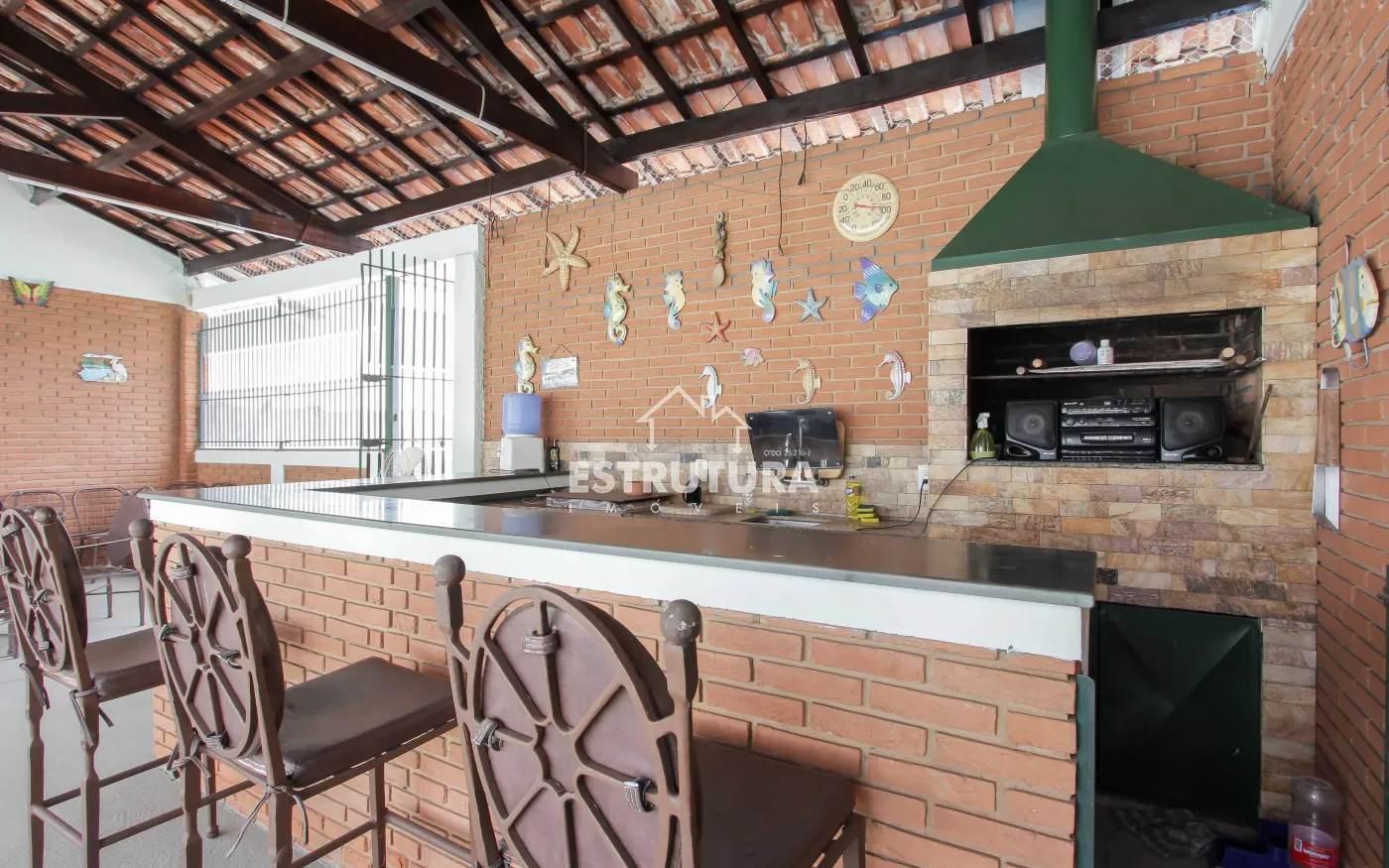 Excelente casa construída com tijolinhos, possui garagem para vários carros, sendo 2 vagas cobertas. A sala tem piso de taco de madeira e conta com um escritório reservado. Há uma sala de jantar com saída externa, um dormitório revertido em escritório, sala de banho, 2 dormitórios com armários de madeira e uma suíte master também com armários de madeira. A cozinha está equipada com móveis planejados, pia com triturador, lava-louças, micro-ondas com função de forno e exaustor, todos embutidos.
