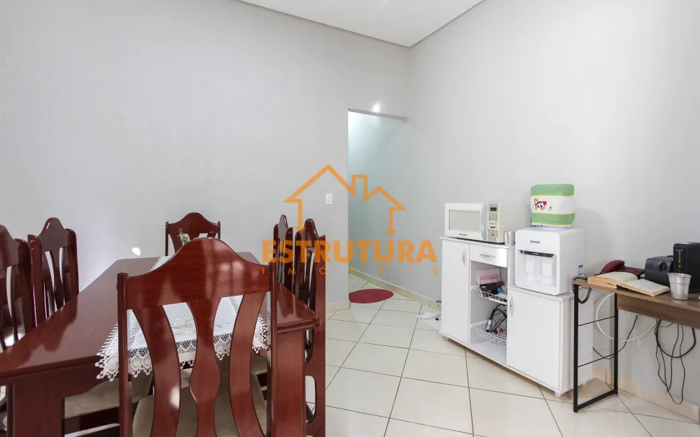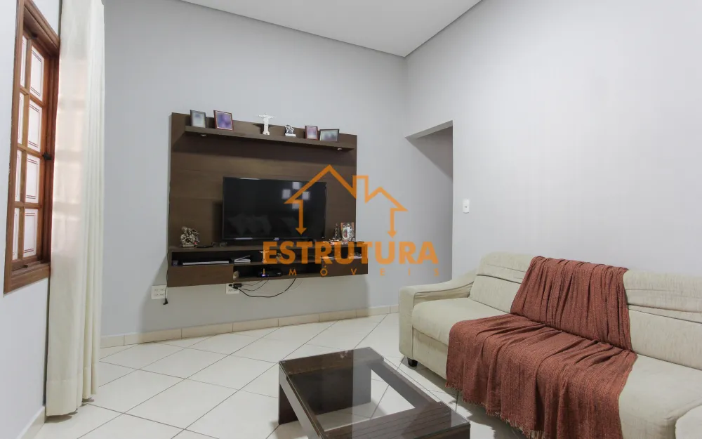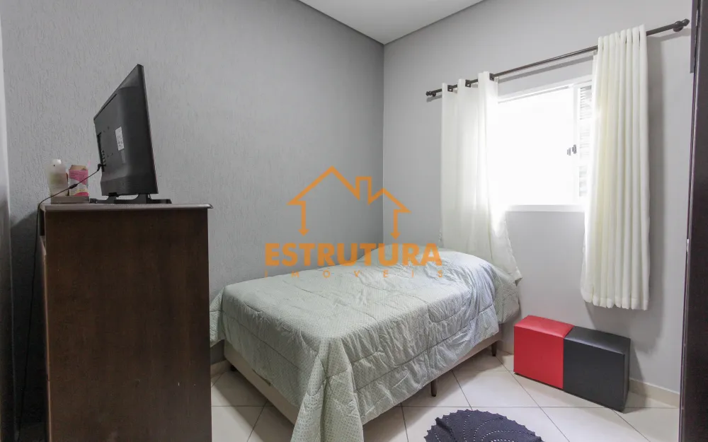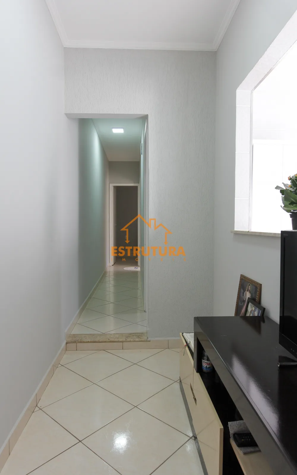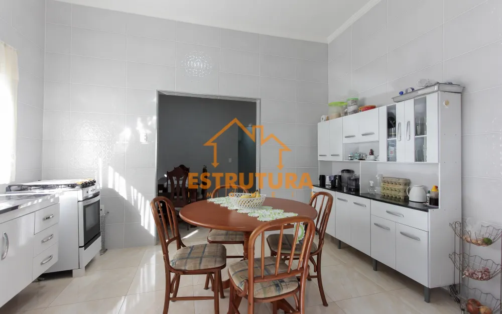 Garagem coberta para 2 carros, portão eletrônico, 3 dormitórios, sala com teto rebaixado em gesso, copa, cozinha, lavanderia, banheiro social, amplo quintal com rancho nos fundos e pia.