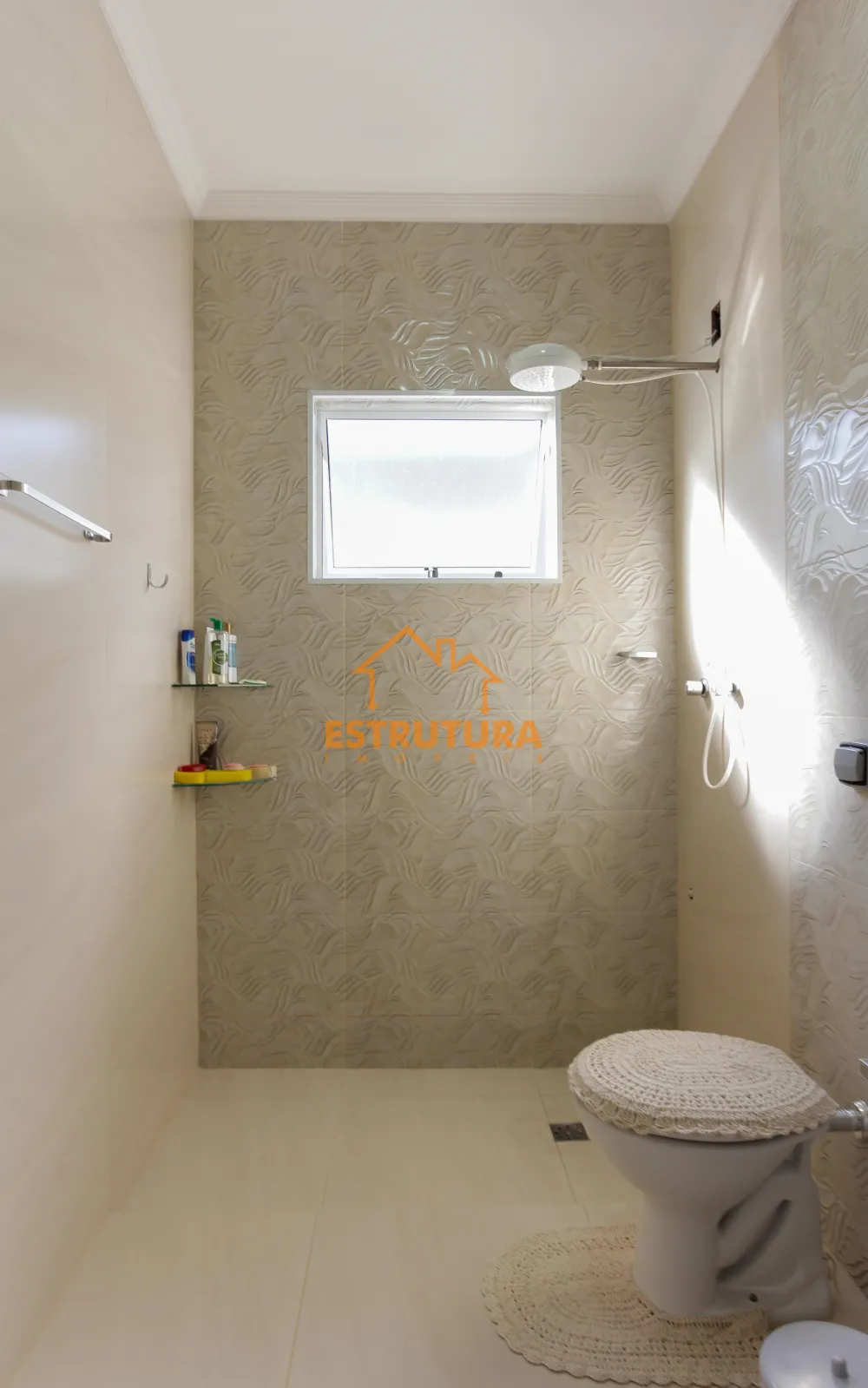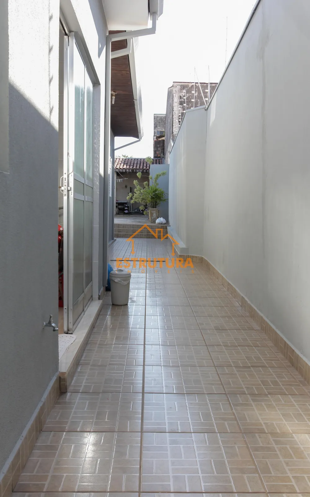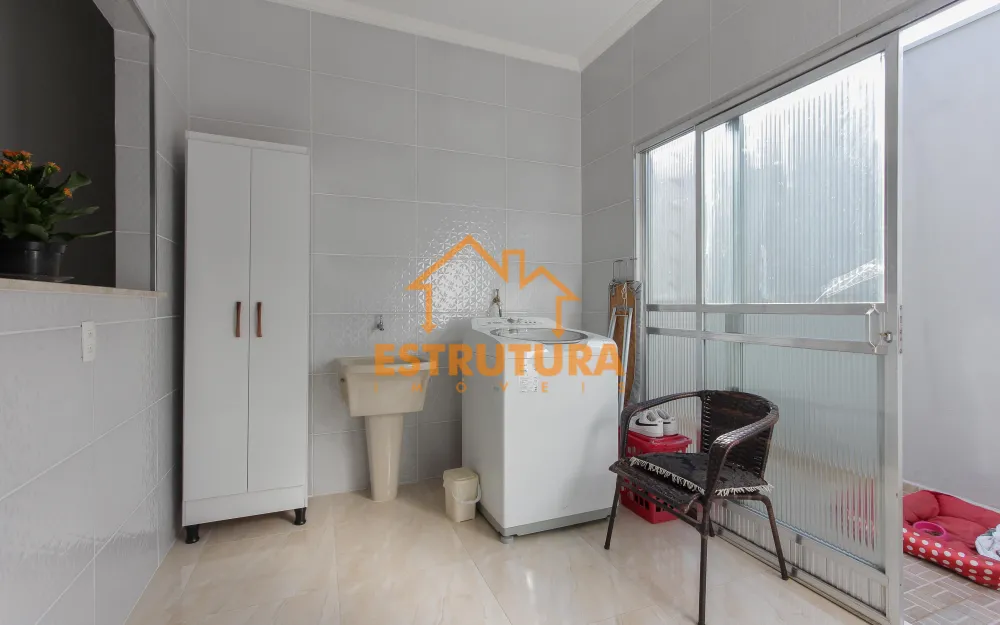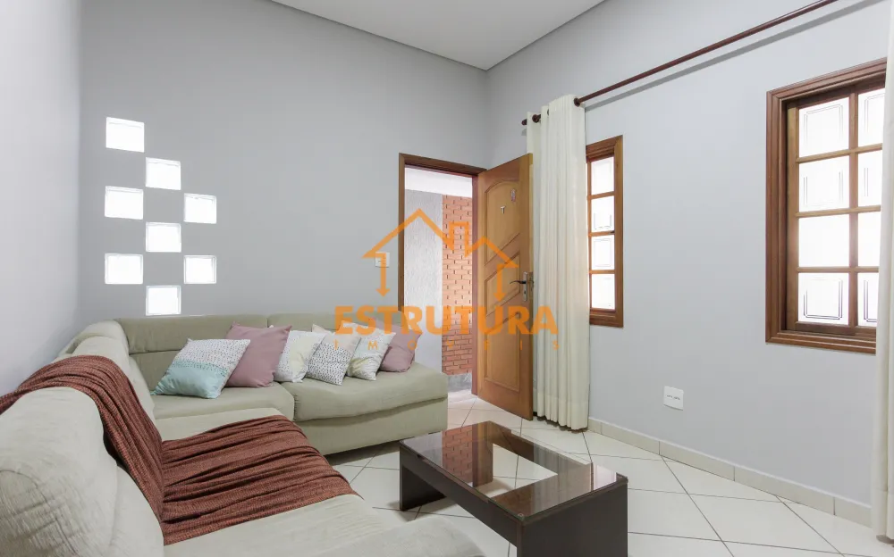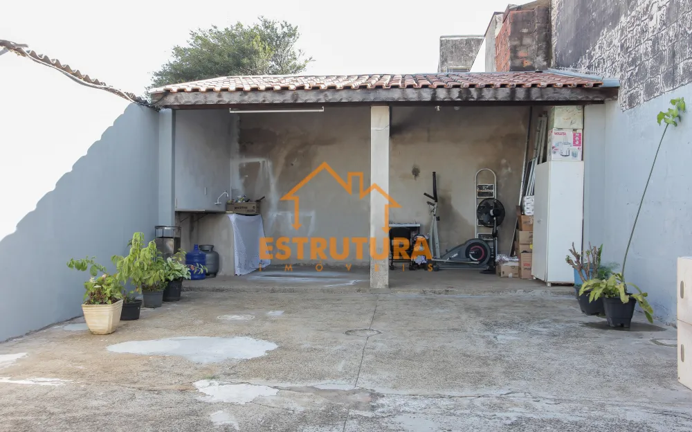 Garagem coberta para 2 carros, portão eletrônico, 3 dormitórios, sala com teto rebaixado em gesso, copa, cozinha, lavanderia, banheiro social, amplo quintal com rancho nos fundos e pia.