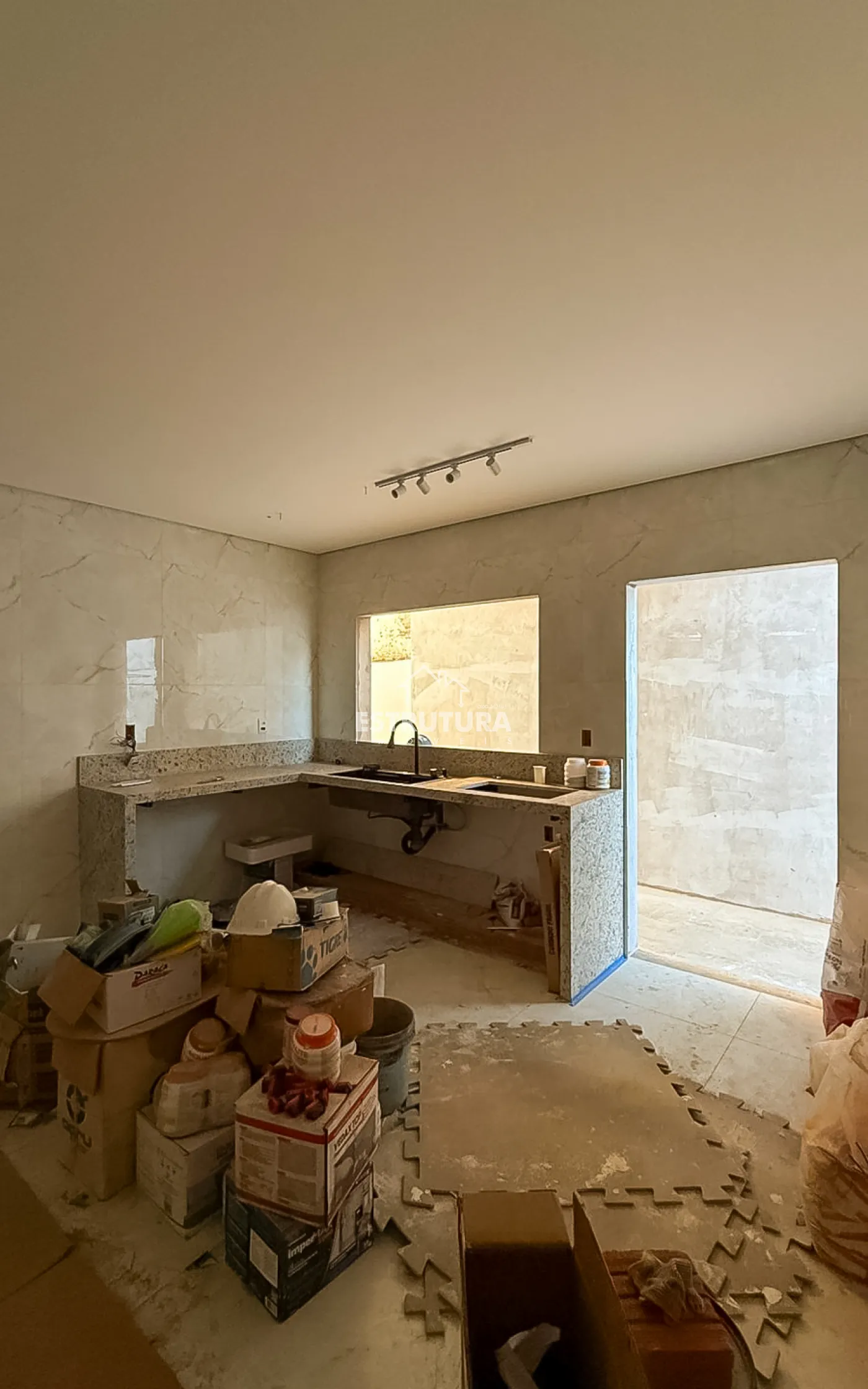 A casa possui: 3 dormitórios, sendo 1 suíte, sala de estar, cozinha, banheiro social, garagem para 1 carro.