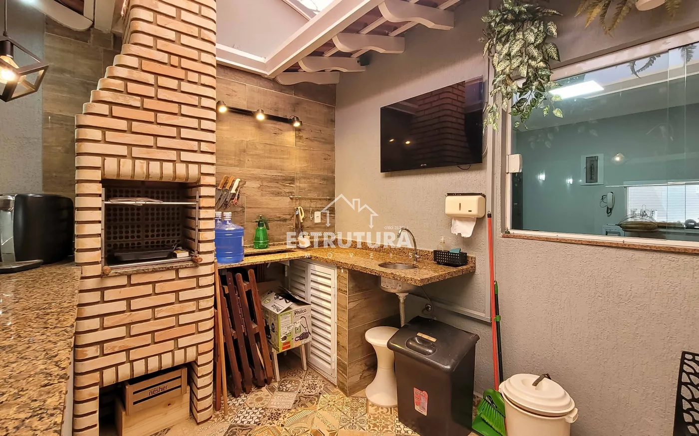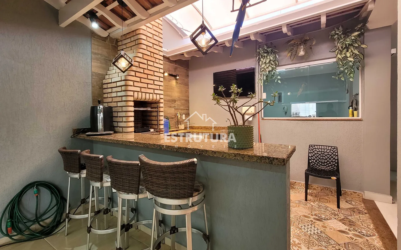- Espaço gourmet: com churrasqueira equipada com sistema Grill, espetos de inox novos, coifa com motor nova, bancadas em granito e instalações hidráulicas para lavanderia.