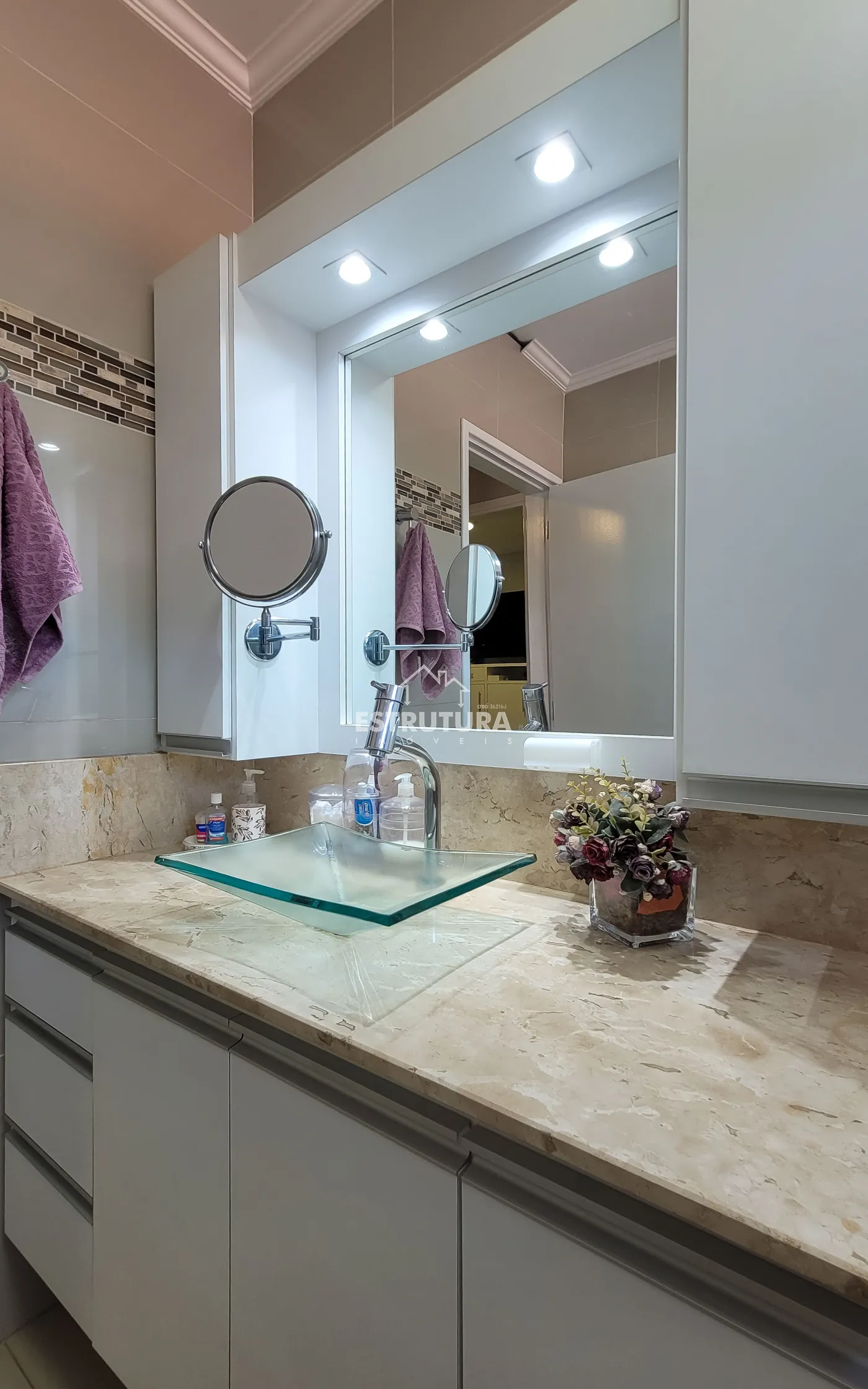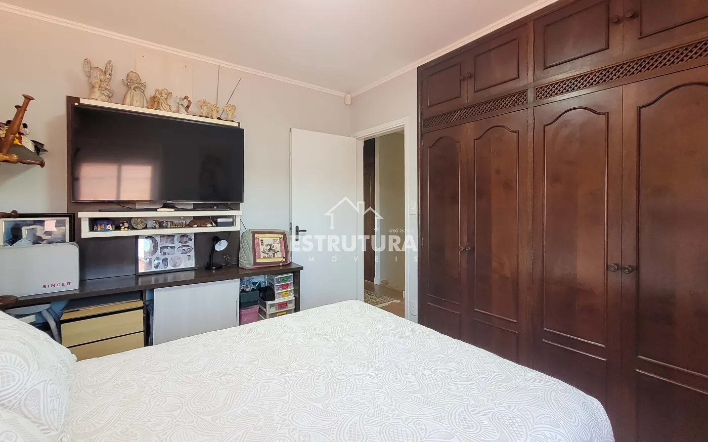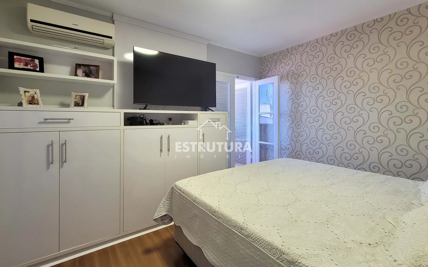 - 3 dormitórios: sendo 2 suítes (uma master com hidromassagem) e 1 quarto com armário embutido em madeira maciça. Todos os quartos possuem papel de parede, ventiladores de teto e estrutura para ar-condicionado.