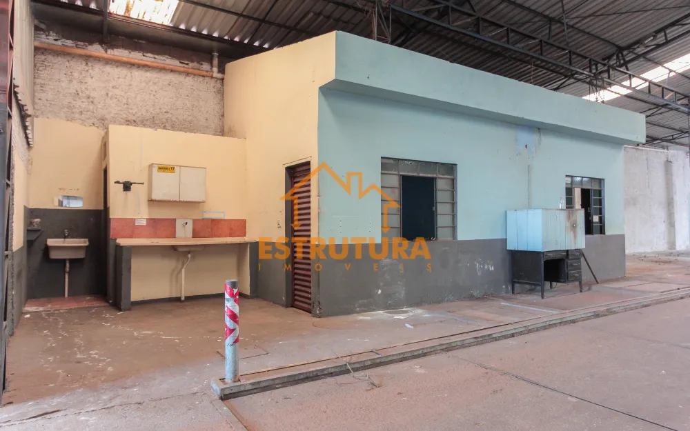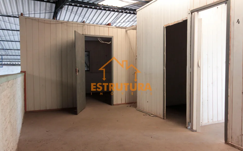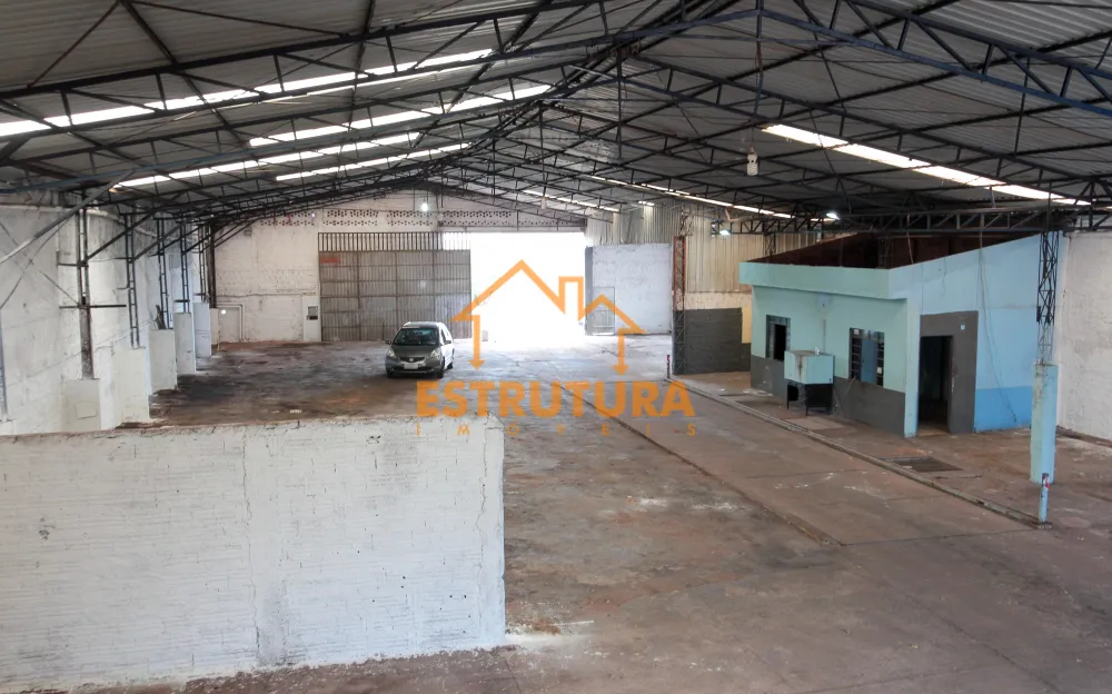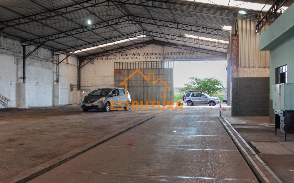 Sendo 1.000 m² de construção e com pé direito alto de 4 metros, este imóvel conta com uma balança já instalada no chão, um mezanino, uma sala, uma cozinha, um banheiro, um quarto, um escritório com duas salas e um banheiro. São duas entradas, sendo uma delas com portão eletrônico e outra manual.