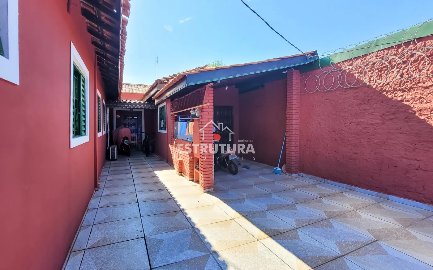 Na parte frontal da residência, há um salão comercial que amplia as possibilidades de uso do imóvel, seja para fins comerciais ou até mesmo como fonte de renda. Esse espaço conta com três vagas de garagem, oferecendo comodidade para clientes ou moradores, além de dispor de dois banheiros, garantindo praticidade e funcionalidade para o dia a dia do ambiente.
