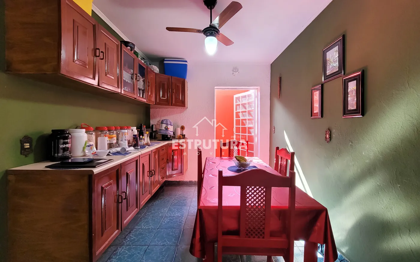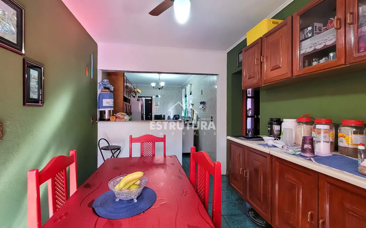 A casa possui um ambiente bem distribuído e funcional, contando com duas vagas de garagem que oferecem praticidade e segurança para os moradores. Ao entrar, encontram-se duas salas que proporcionam conforto e versatilidade, podendo ser utilizadas tanto para momentos de convivência quanto para receber visitas. O imóvel dispõe de três dormitórios, ideais para acomodar a família com conforto, além de um banheiro que atende às necessidades do dia a dia. A cozinha é bem posicionada, facilitando a rotina doméstica, e se integra de forma harmoniosa à sala de jantar, criando um espaço agradável para as refeições e momentos em família.