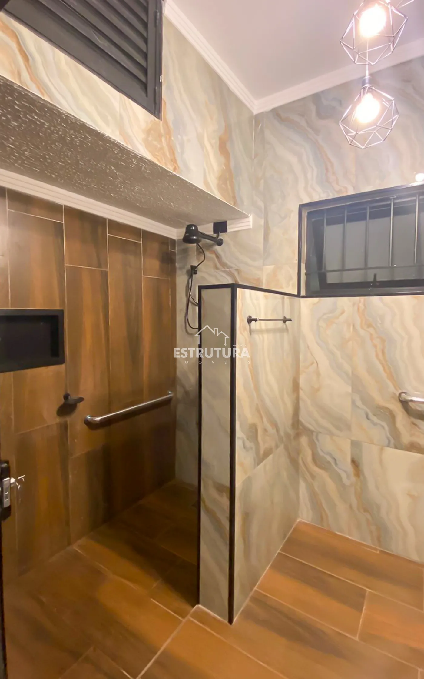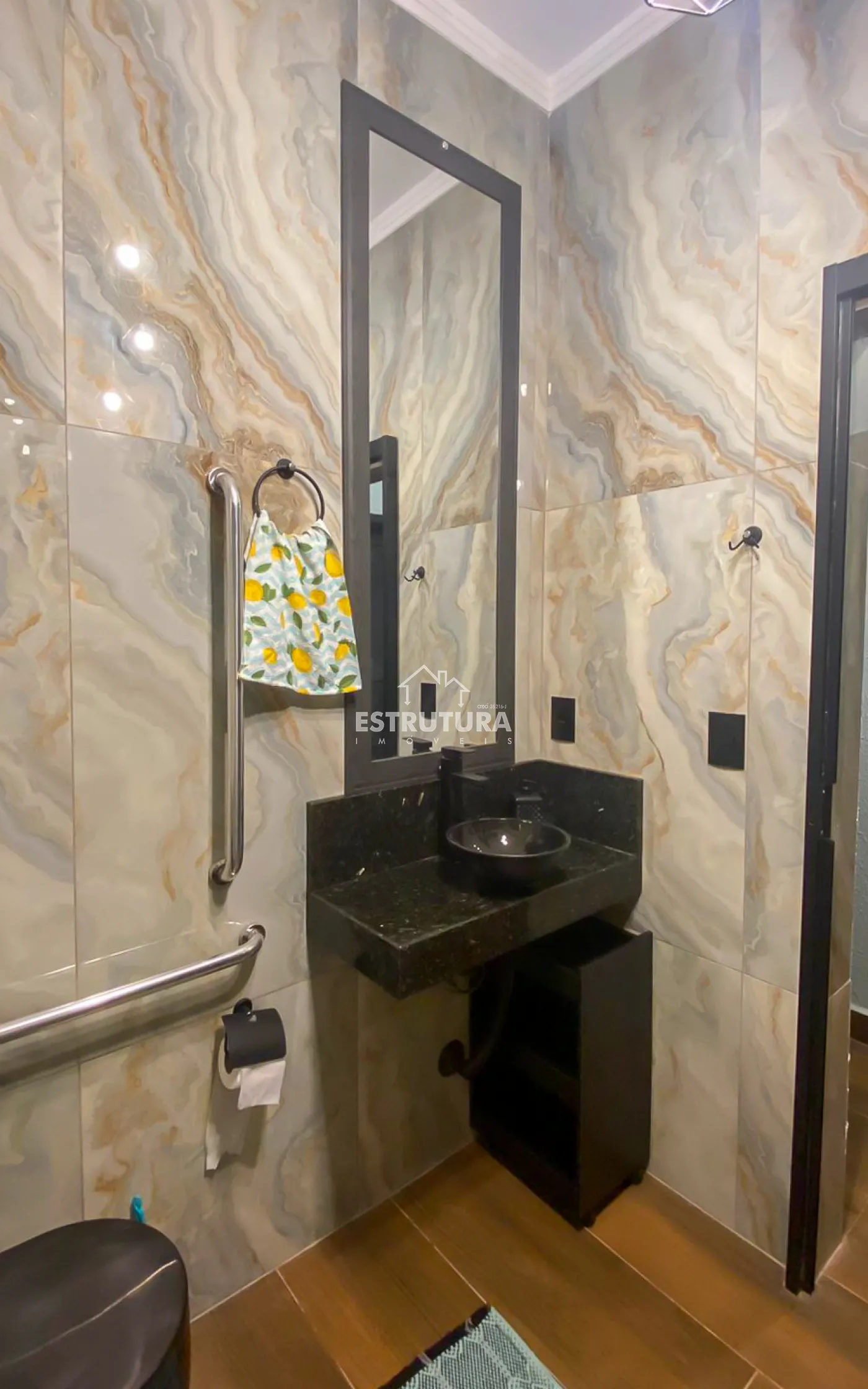 3 banheiros lindos, sendo 1 na suíte, 1 na área de serviço/gourmet e 1 social PNE, todo adaptado.